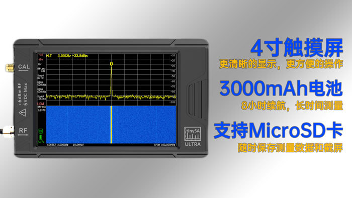 Ручной портативный анализатор радиочастотного спектра tinySA ULTRA 4inch с экраном 100–5,3 ГГц