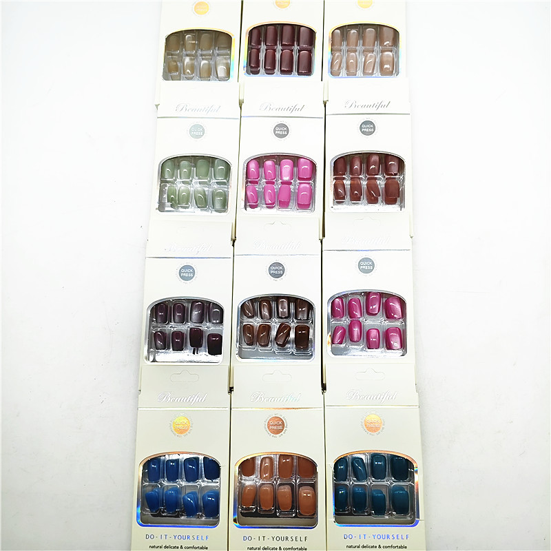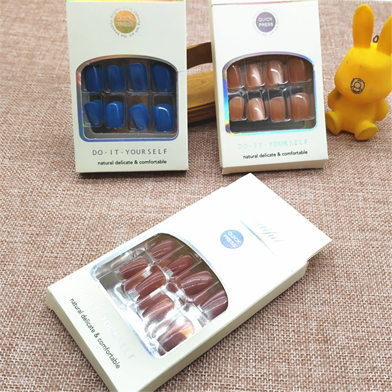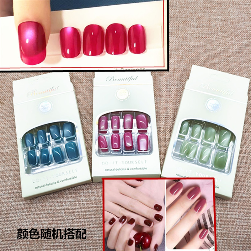 D020 Сплошной цвет Интернет-знаменитости Популярные носимые наклейки для дизайна ногтей для студентов и девочек Новые носимые ногти «кошачий глаз» Xiaohongshu Beauty
