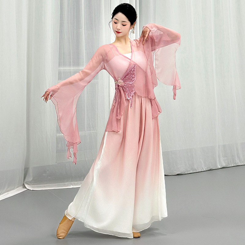 Одежда для занятий классическим танцем для женщин, элегантная сказочная марлевая одежда в виде бабочки, одежда для китайских танцев, тренировочная танцевальная одежда для художественного экзамена.