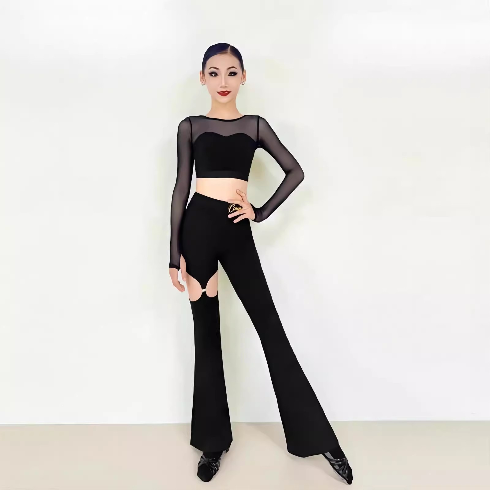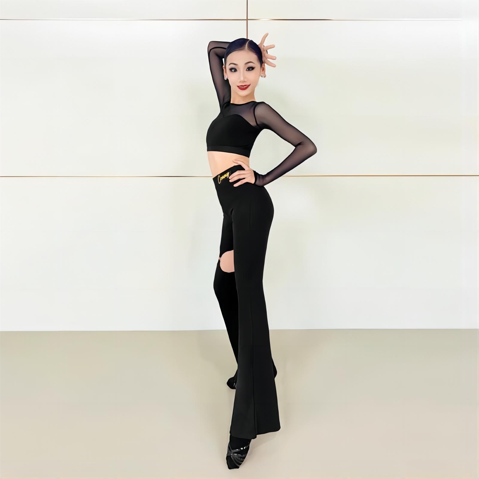 Новый осенне-зимний комплект брюк для латинских танцев для девочек и детей, профессиональные современные брюки с высокой талией, тренировочная одежда для мужчин.