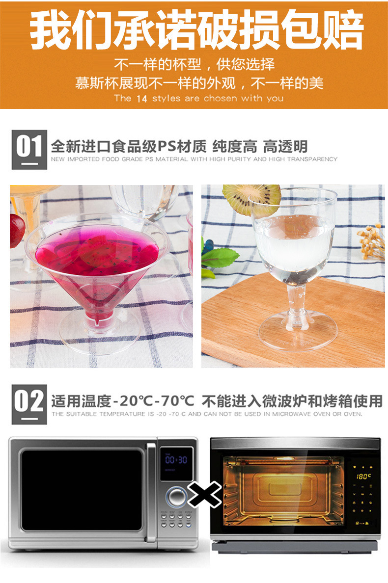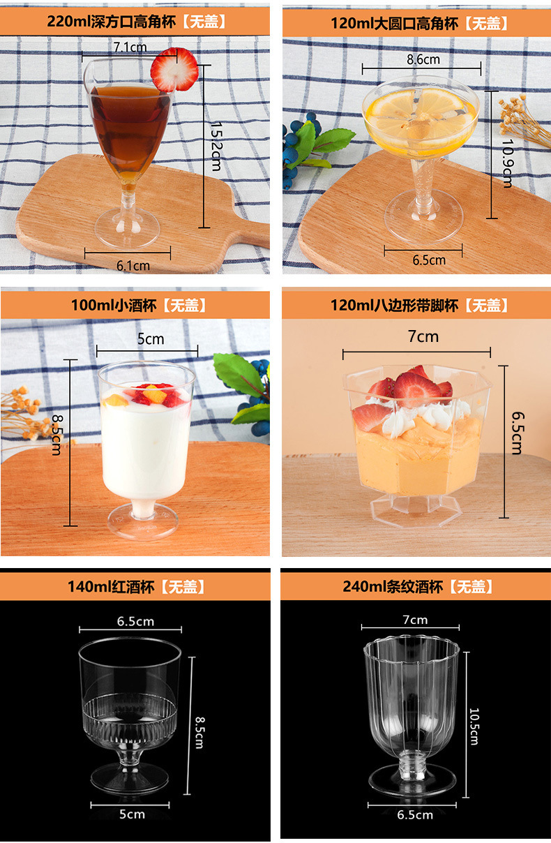 Десертный стол, одноразовый бокал, чашка для пудинга, чашка для молочного коктейля, мусса, мороженого, красное вино, чашка для шампанского, пластиковая прозрачная чашка