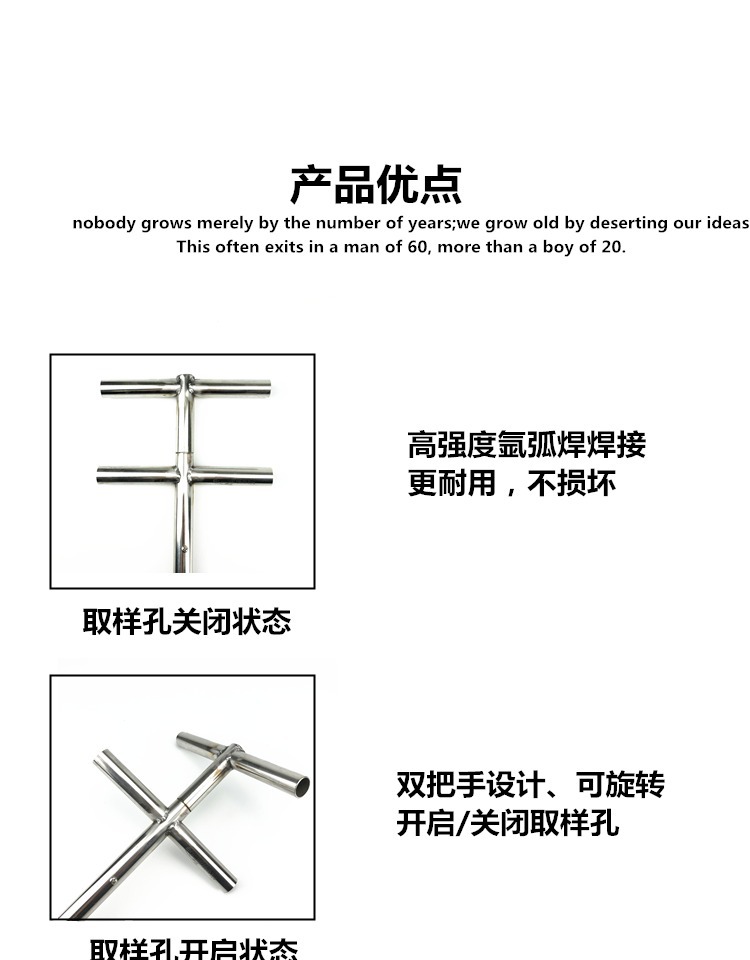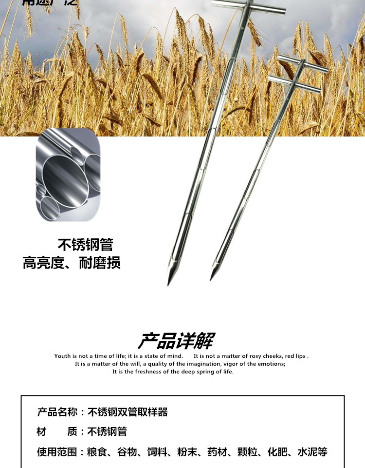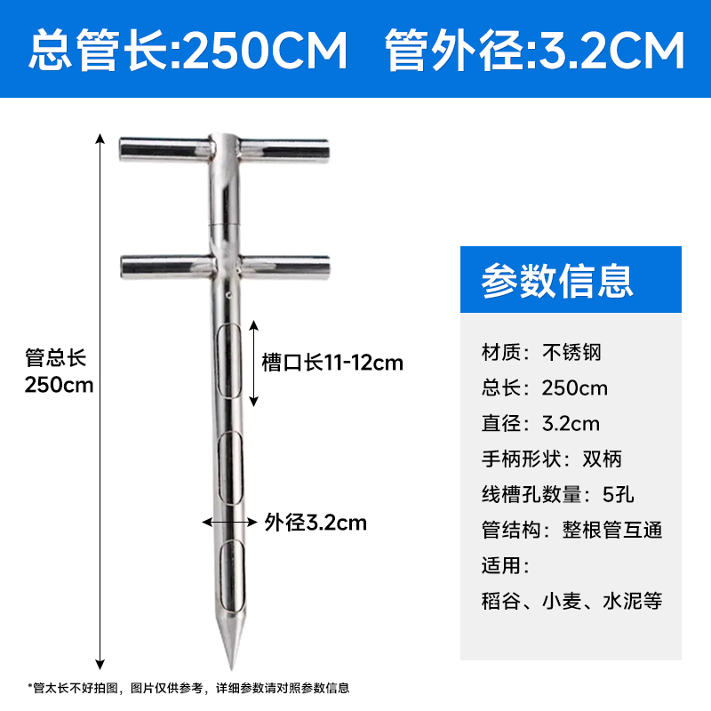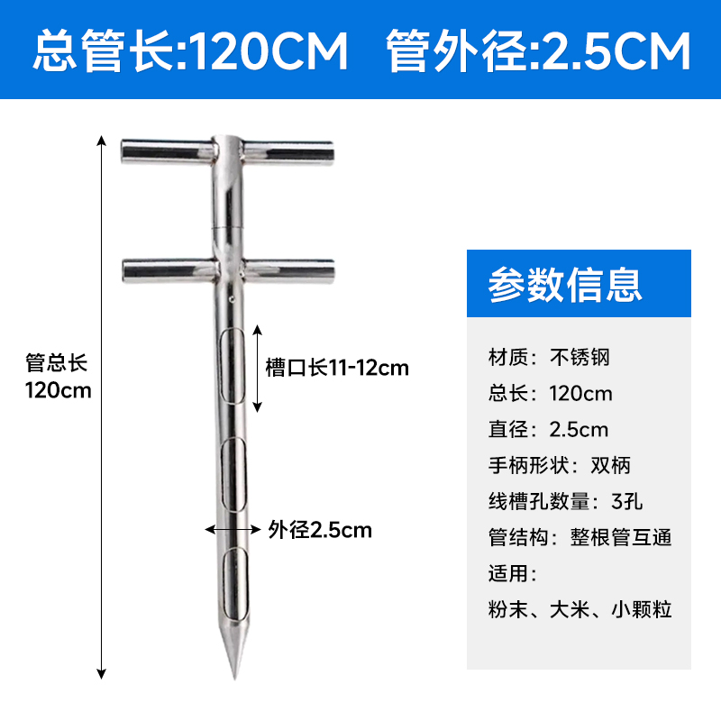 Пробоотборник из нержавеющей стали для порошковых, гранулированных удобрений, кормов, зерна, цемента