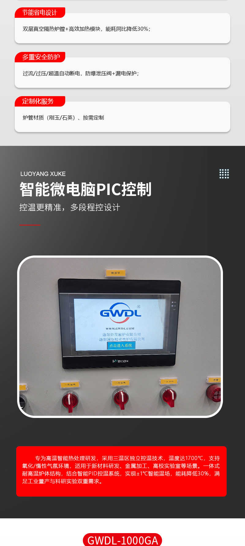 Трехзонная градиентная трубчатая печь с контролем температуры, равномерность температурного поля ≤ ± 3 ℃ Промышленный стандарт Промышленная муфельная печь
