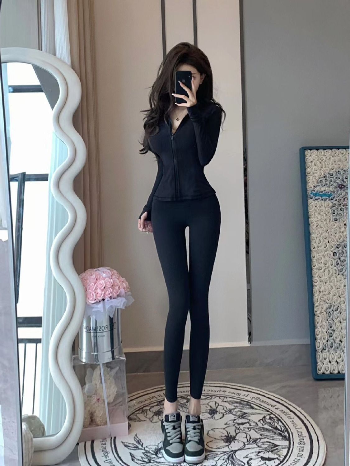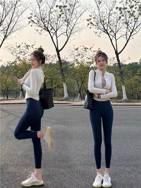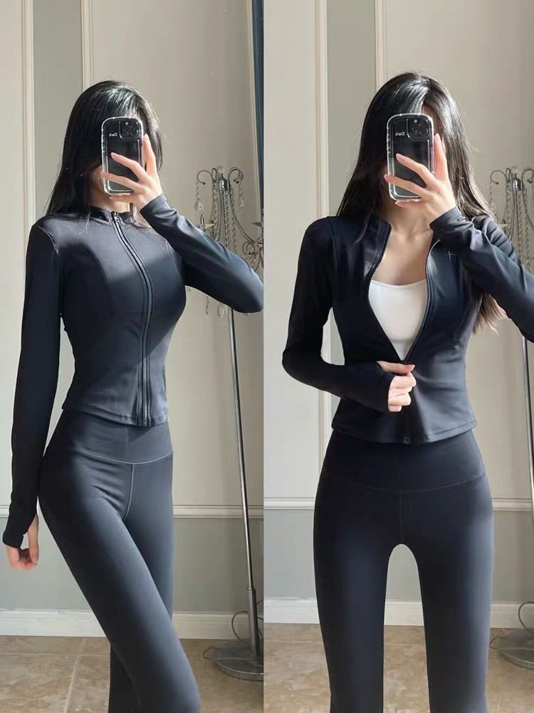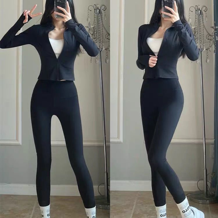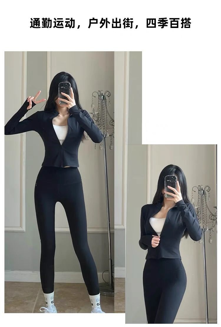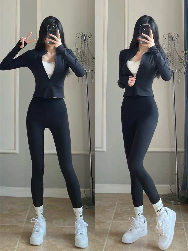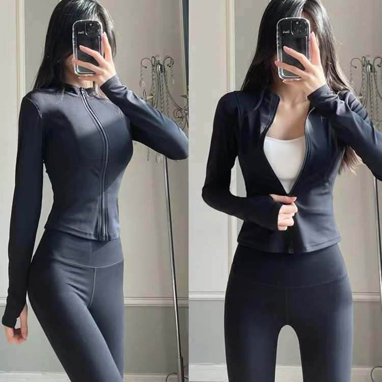 Цельная черная куртка с воротником-стойкой и длинными рукавами; Одинарная белая куртка с воротником-стойкой и длинными рукавами; Черная куртка с длинными рукавами с воротником-стойкой + черные штаны для йоги; Белая куртка с длинными рукавами с воротником-стойкой + черные штаны для йоги.; Цельные черные штаны для йоги