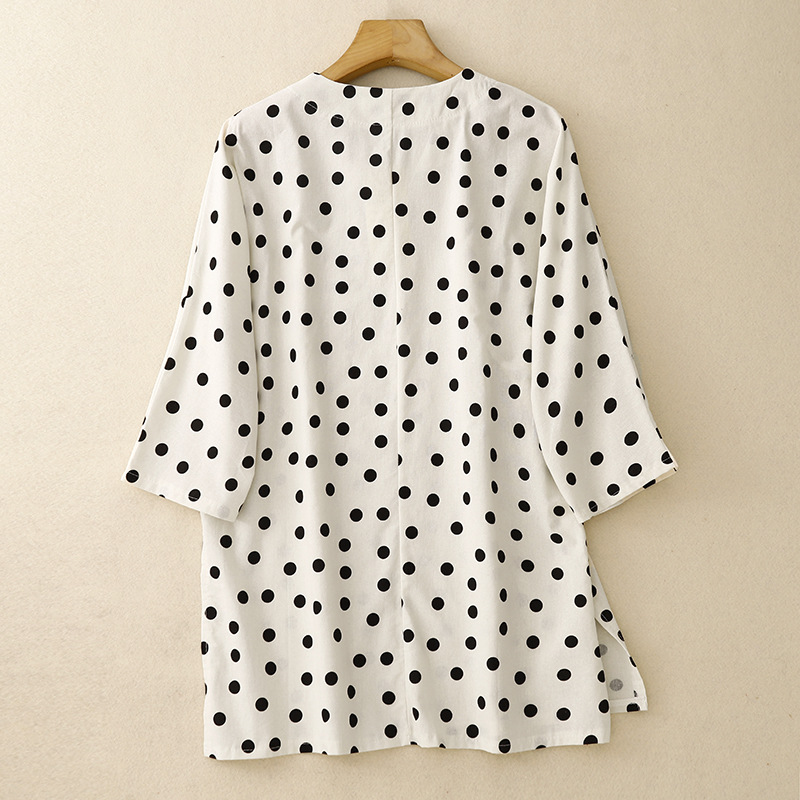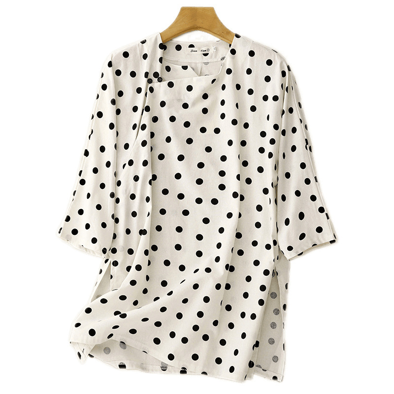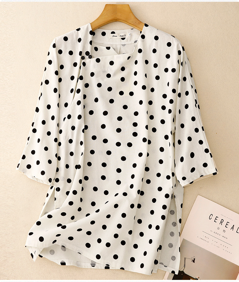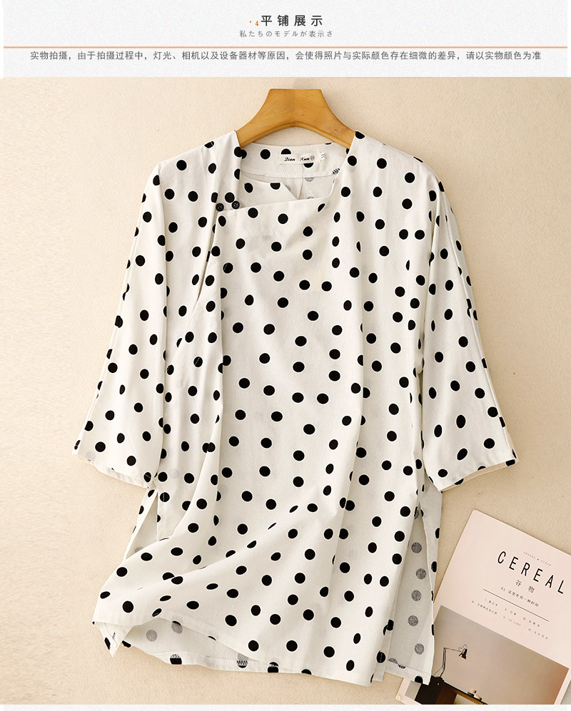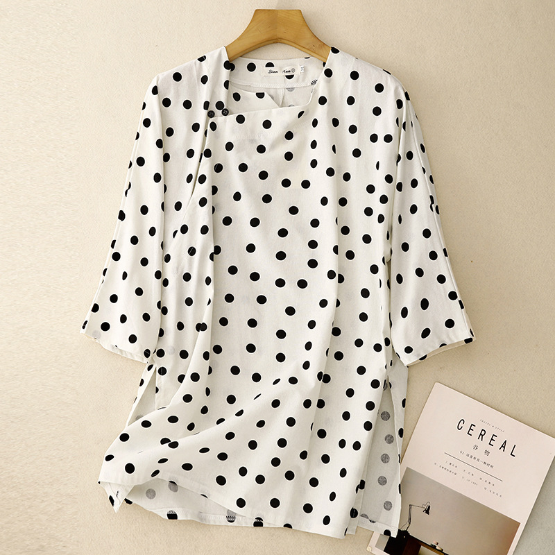 Летняя новинка 2025 года: улучшенная рубашка в этническом ретро-стиле с горошком, свободного кроя, тонкая, в китайском стиле, для женщин.