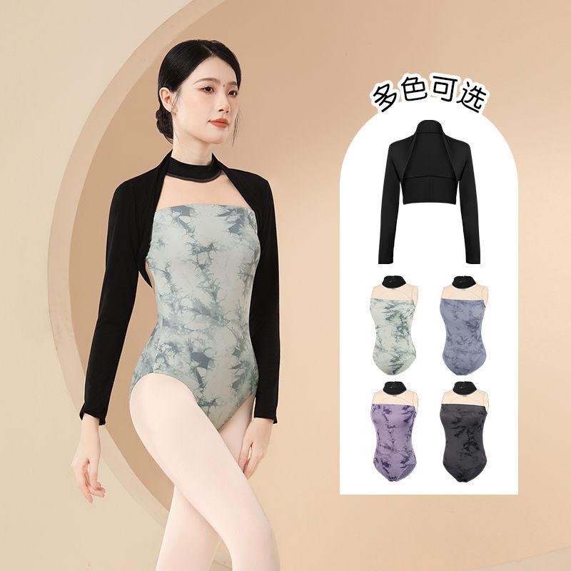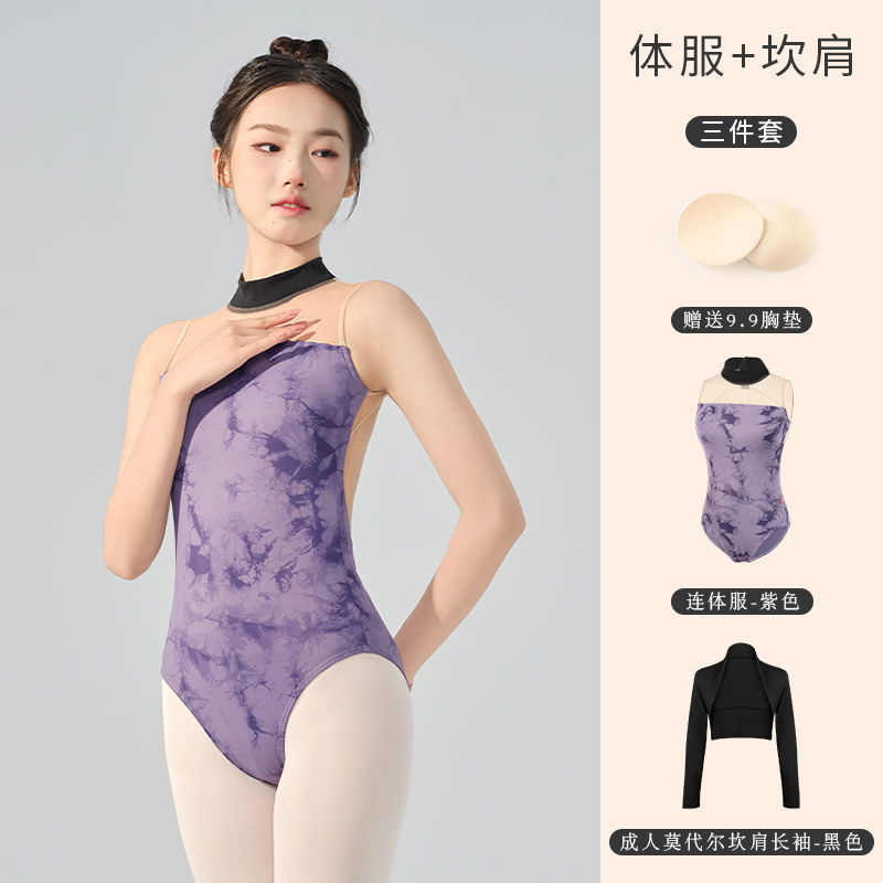 Одежда для танцев с короткими рукавами Rainbow Season, костюм для женщин, европейская и корейская балетная верхняя одежда с лямкой на бретельках, танцевальная фиолетовая, черная, разноцветная