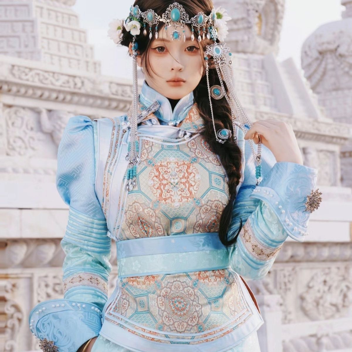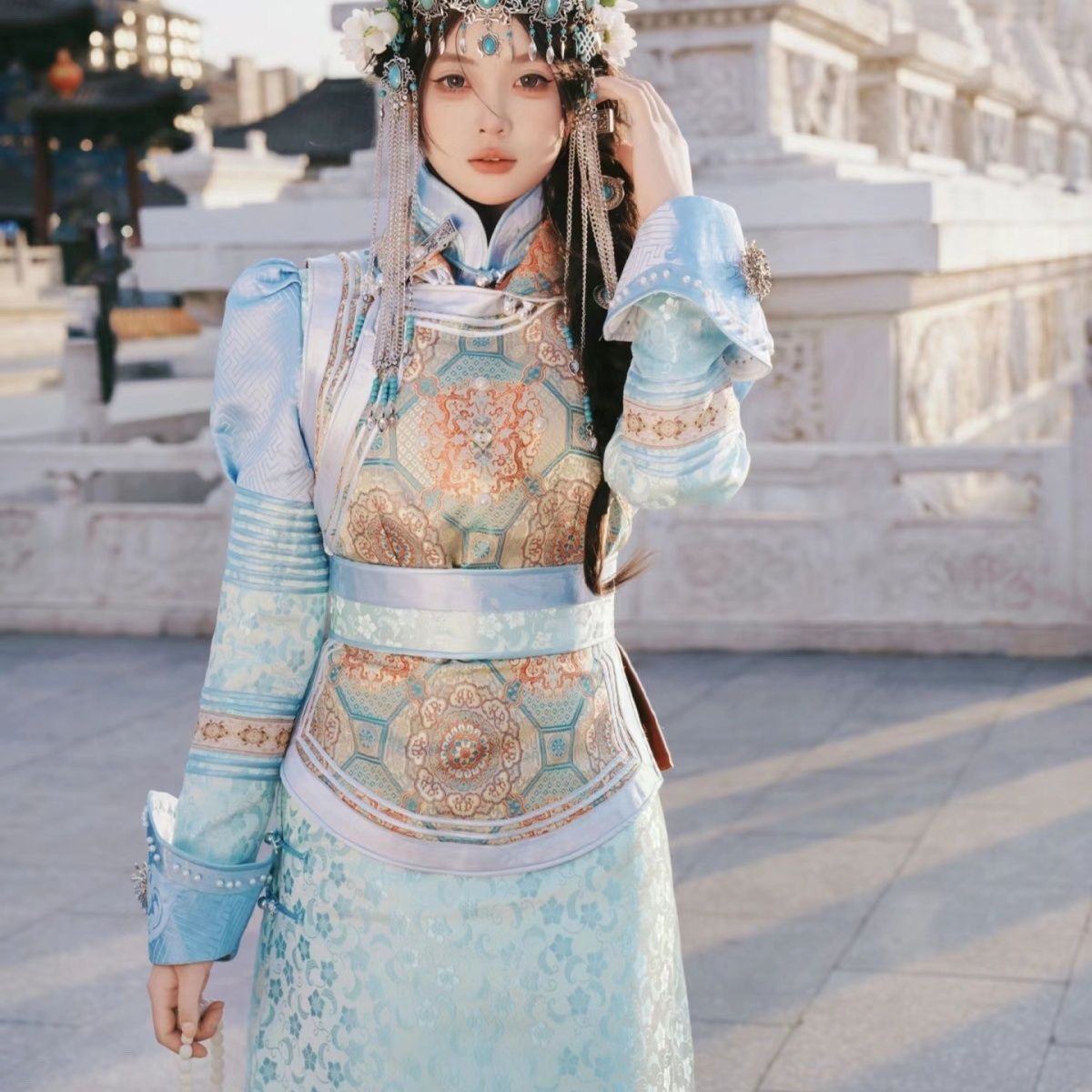 Новинка 2024 года, синий монгольский халат, Юньнань, Синьцзян, этнический стиль, свежая девушка, Дали, Тибет, путешествия, фотография