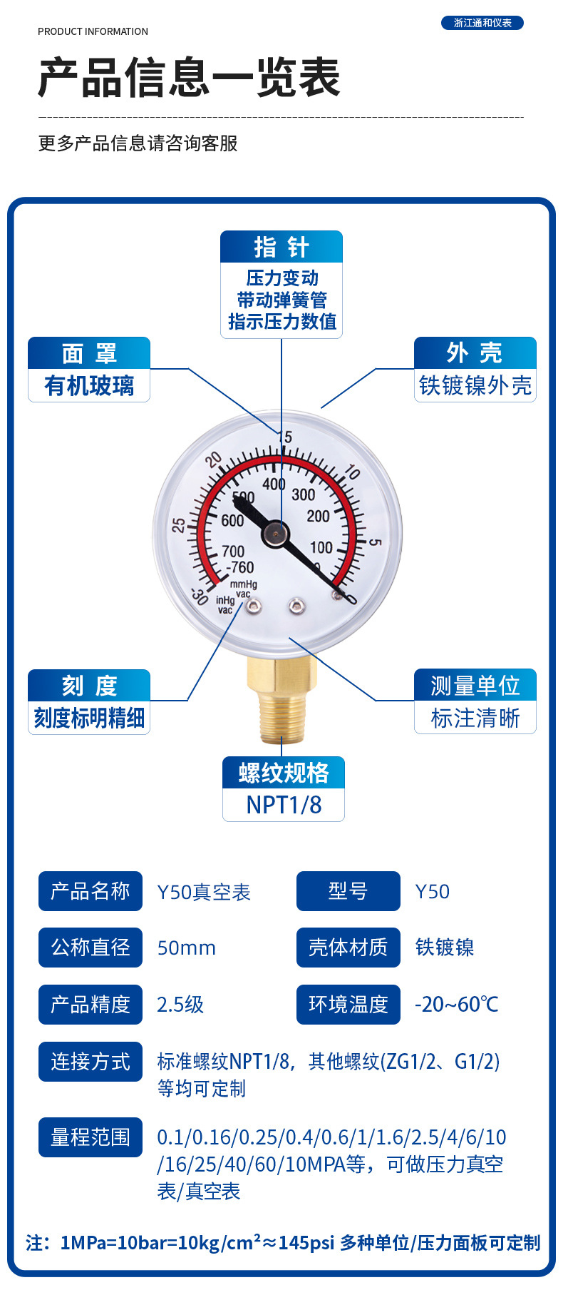 Радиальный вакуумметр Y50 (алюминиевый разъем)
