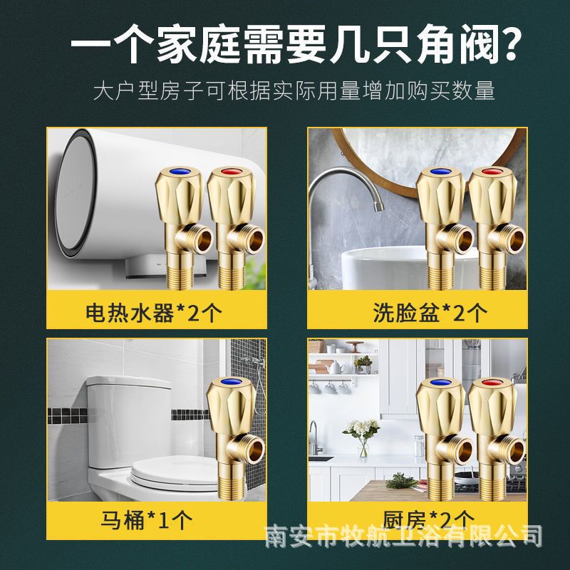 Полностью медный треугольный клапан, запорный клапан для горячей и холодной воды один в два, бытовой водонагреватель из нержавеющей стали, производитель переключателей для унитаза