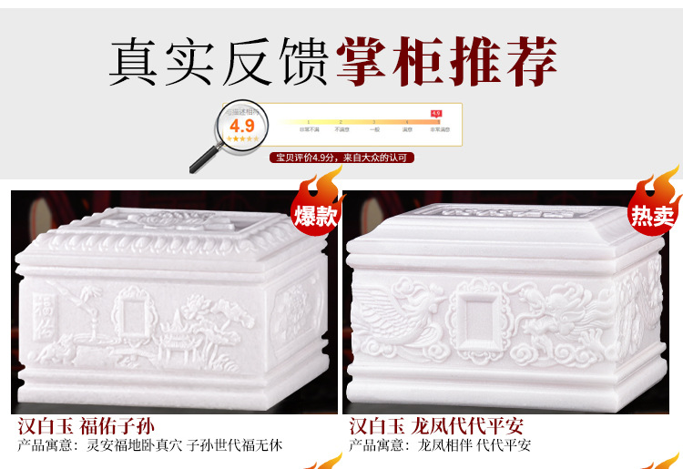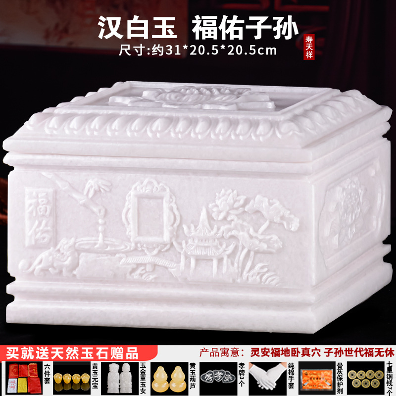 SF, бесплатная доставка, белая мраморная урна, нефритовый кристалл, мужская и женская мраморная влагостойкая коробка Fulu Gourd