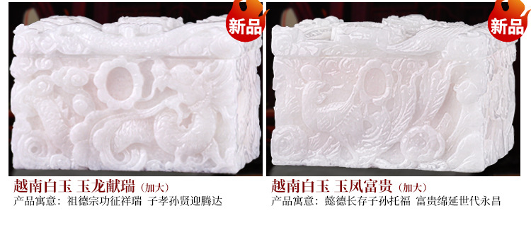 Благослови своих потомков; Благословение потомков с костяной сумкой-коробкой; Белый мрамор удачи и долголетия; Дворец Сянлун из белого мрамора; Дворец Сянфэн из белого мрамора; Белый мрамор, дракон и феникс приносят благословение; Белый мрамор первого сорта святого лотоса; Белый мрамор приносит мир из поколения в поколение; Белый мраморный дракон и феникс олицетворяют благоприятность.; Модели Дракона и Феникса скучают по своим родственникам; Лотосовый сад Чистая земля; Модель «Страна чудес» изображает золото и скучает по родственникам; Дракон и Феникс будут существовать вечно; Богатство от поколения к поколению Сычуаньский белый нефрит; 30 длинный и чистый белый мрамор; 35 длинный и чистый белый мрамор; 40 длинный и чистый белый мрамор; 45 длинный и чистый белый мрамор; Дракон и Феникс приносят мир поколениям Белого Нефрита; Резной дракон и феникс, процветающий возраст, белый мрамор; Мелко резной дракон и феникс в процветающий период, белый мрамор; Увеличенный нефритовый дракон Сяньруи из белого мрамора; Увеличьте богатство Нефритового Феникса Белого Нефрита; Белый мрамор длиной 28 см, сливка, орхидея, бамбук и хризантема доступны в Нанкине, Шанхае и Уси.; Белый мрамор путешествие на запад на кране; Белый мрамор, зеленый лотос первого сорта.; 30 длинных двойных кранов для долговечности, белый мрамор; 35 длинных двойных кранов для долговечности, белый мрамор; Дом сокровищ Дракона и Феникса из белого мрамора; Дракон и Феникс, Мир от поколения к поколению, Белый мрамор; Увеличенный белый нефрит 35 Драконий дворец Чансян; Увеличенный белый нефрит 35 дворец Чансян Фэн; Увеличьте золотое отслеживание мира и процветания из поколения в поколение. Сычуаньский белый нефрит.; Двойной кран-предохранитель Bandai, вьетнамский белый нефрит; Фу Лу Шоу белый мрамор; Дракон и Феникс Чэнсян Белый Мрамор; Фаншаньский дракон из белого мрамора с головой тигра; Фаншань белый мрамор голова тигра феникс; Белый мрамор, слива, орхидея, бамбук и хризантема.; Синий и белый фарфор 33; Синий и белый фарфор 35; Фу Лу Шоу 31; Фу Лу Шоу 35