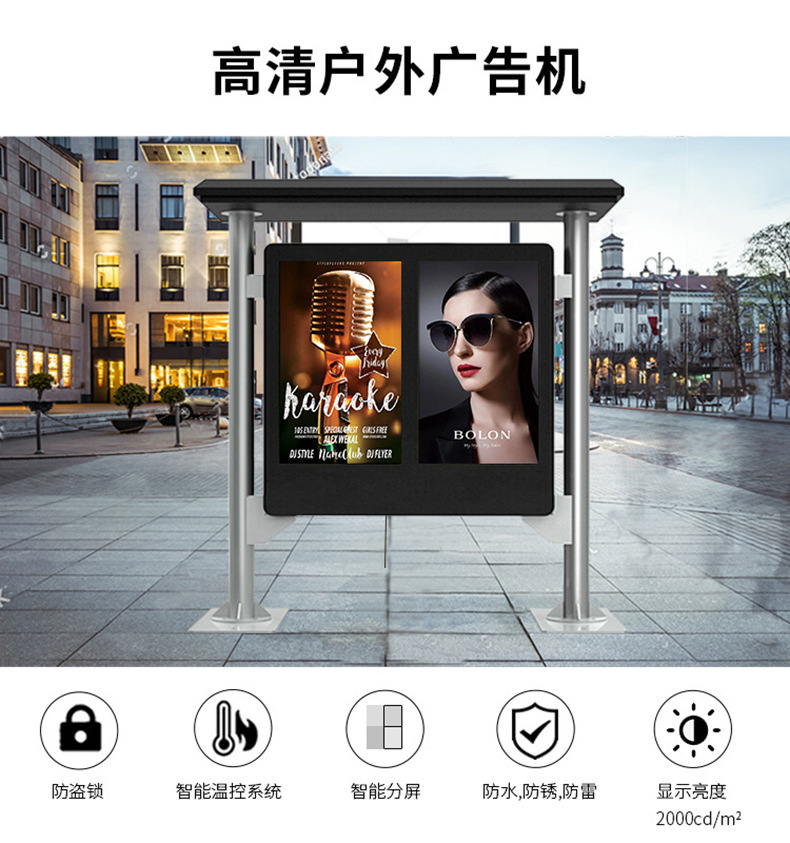 Уличная рекламная машина, вертикальная настенная 55/65, водонепроницаемая и защищенная от дождя с навесом, уличная цифровая рекламная доска высокой четкости для живописных мест