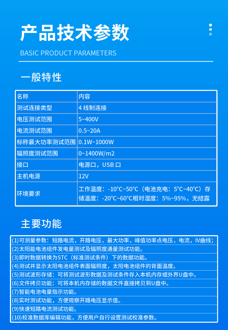 Удобное и быстрое тестирование рабочих характеристик массивов/модулей/ячеек солнечных батарей при естественном освещении.