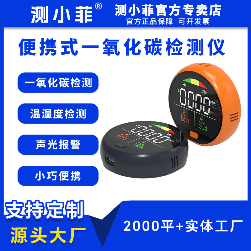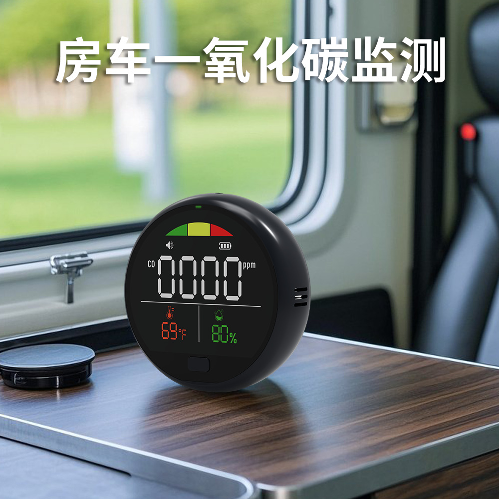 Портативный многофункциональный детектор угарного газа, компактный и круглый, звуковая и световая сигнализация, необходимая для кемпинга в помещении и на открытом воздухе.