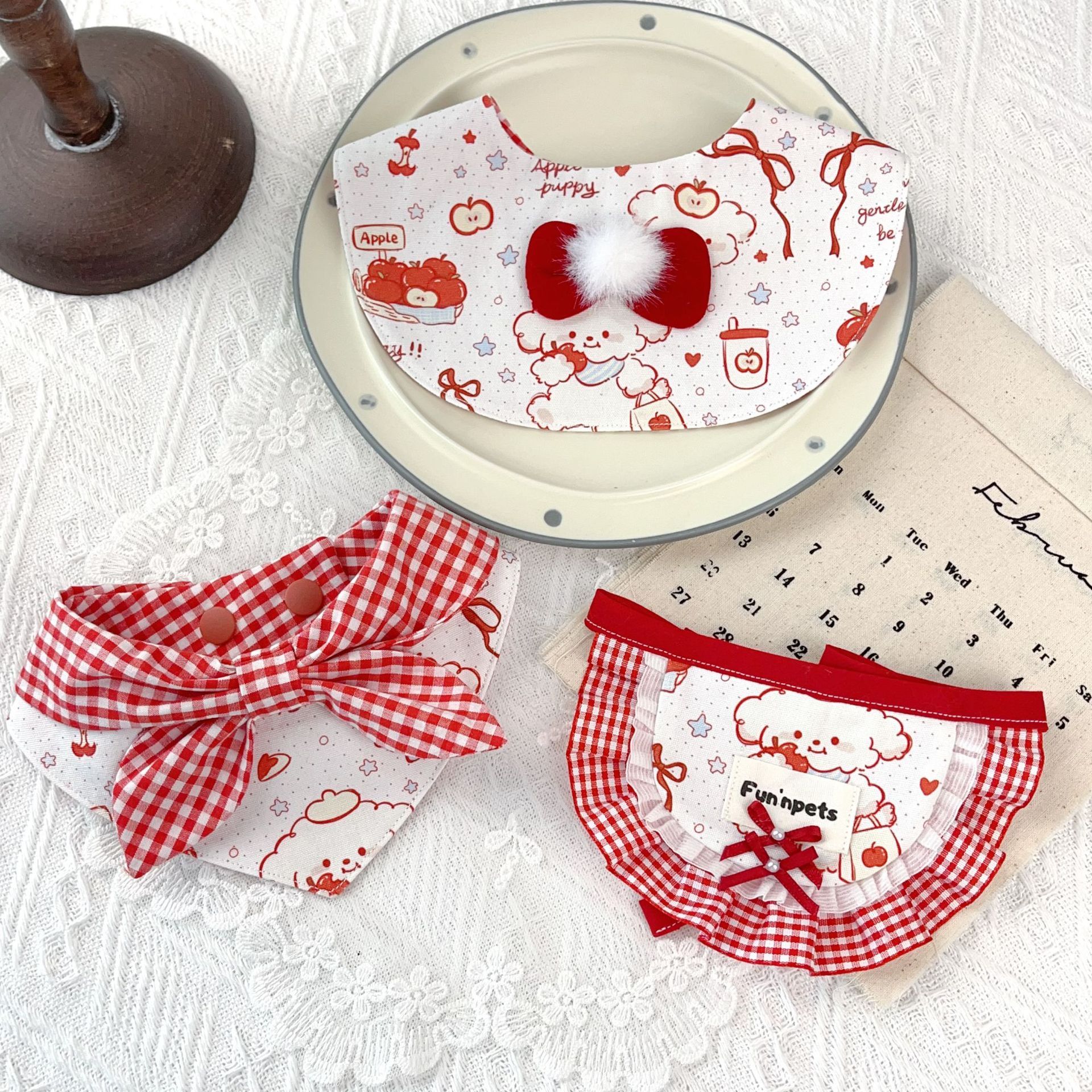 Серия Happy Puppy Полотенце для слюны для домашних животных из чистого хлопка Карман для еды для домашних животных Полотенце для слюны для кошек и собак Маленький, средний и большой нагрудник для собак
