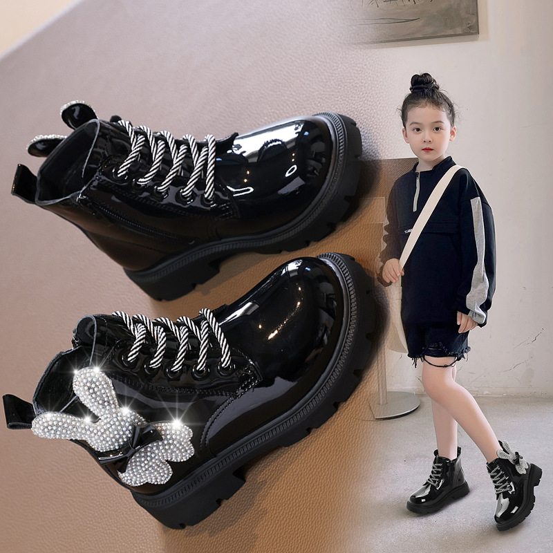 Заводская оптовая продажа бархатных сапог в британском стиле для девочек, осень-зима 2025, новые модели, средние и большие размеры, детские модные ботинки, короткие сапоги
