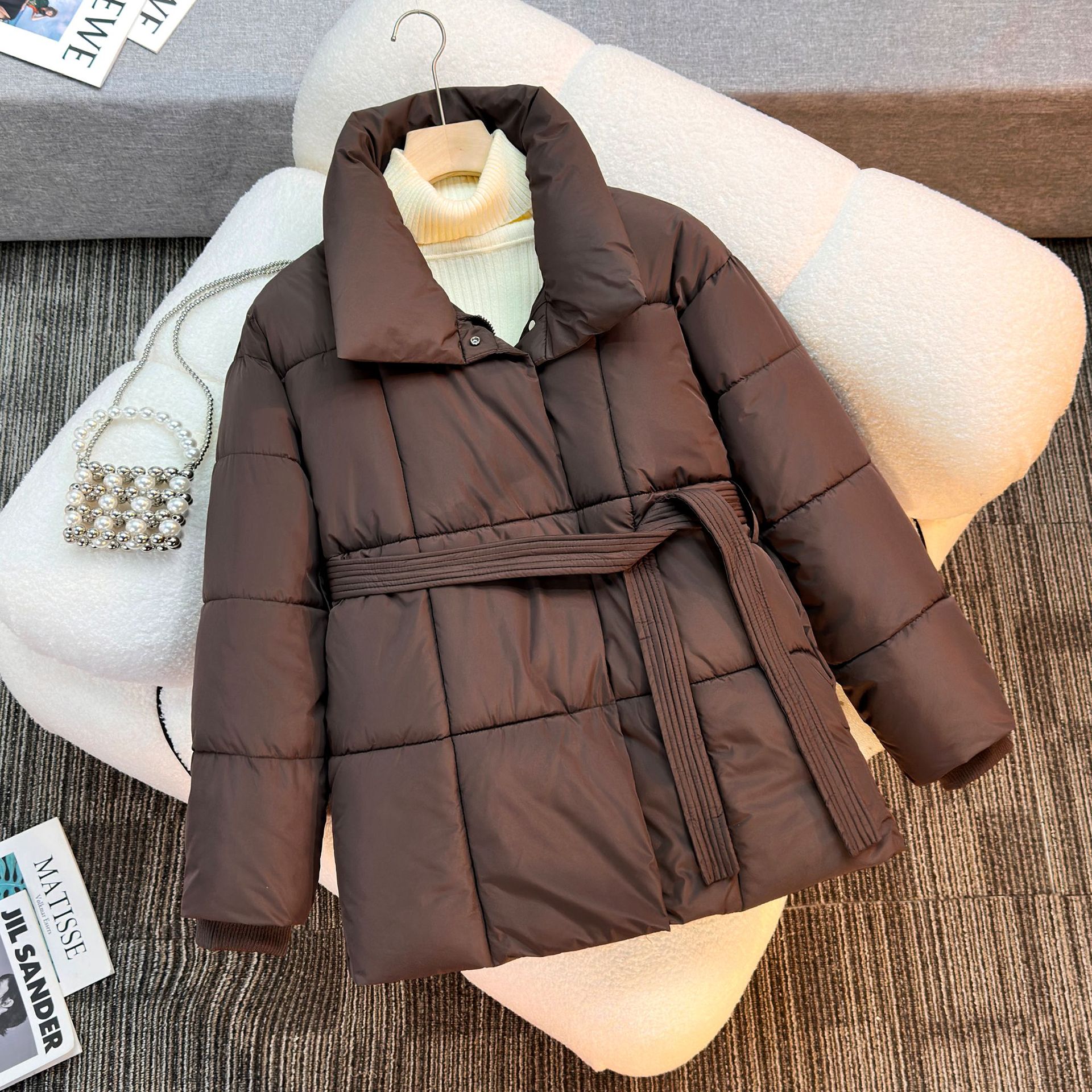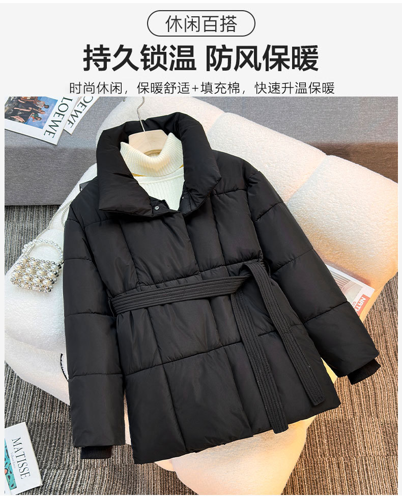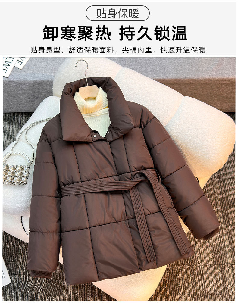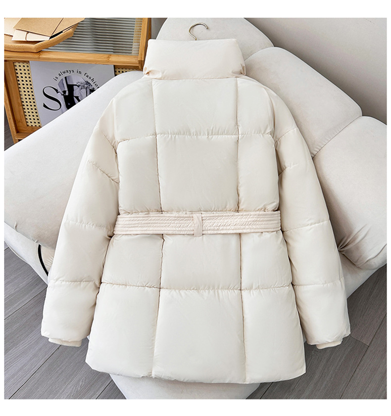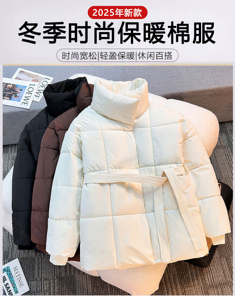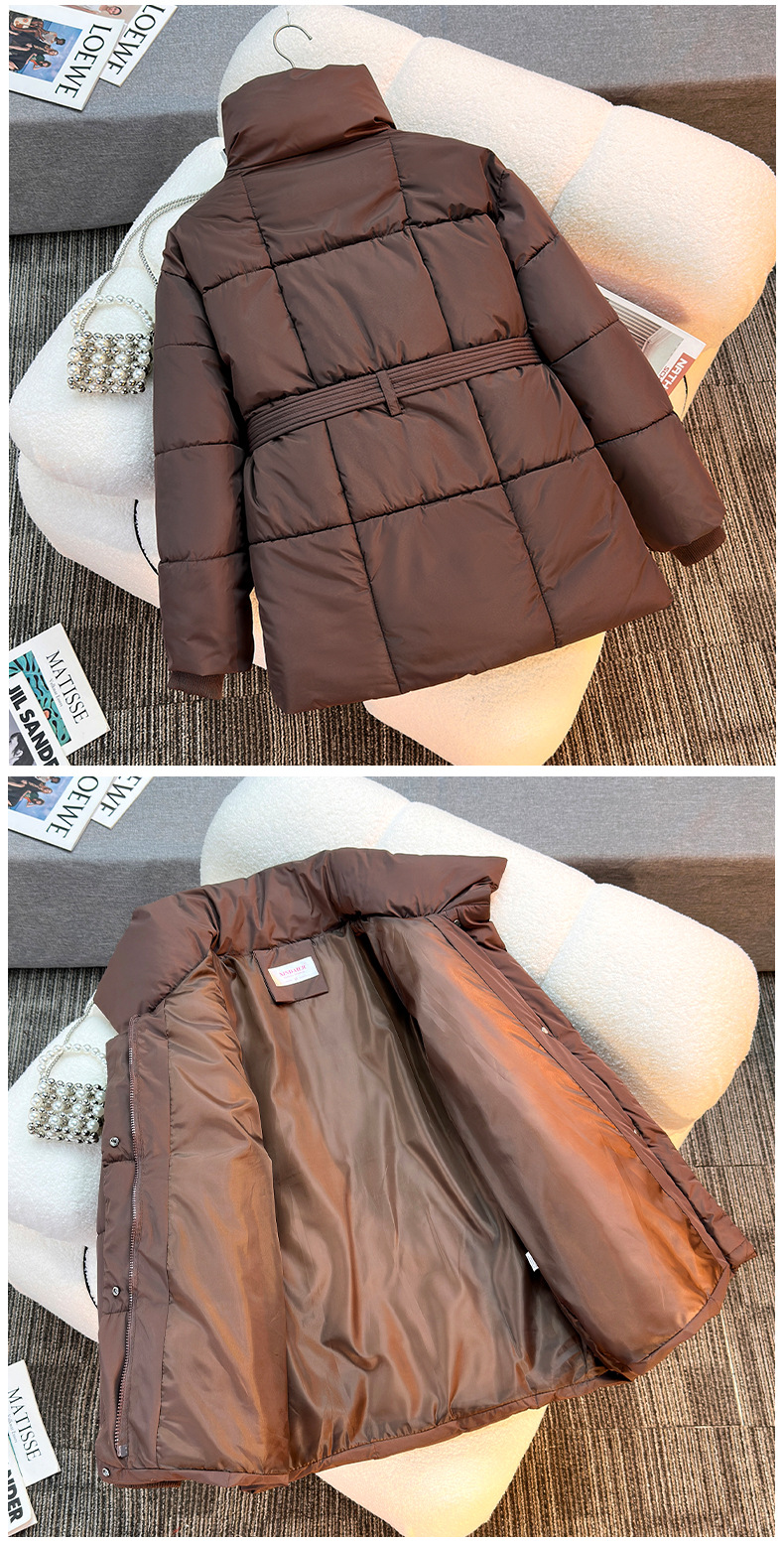 2025 новая зимняя хлопковая верхняя одежда с воротником-стойкой и поясом для похудения, женская свободная универсальная хлопковая куртка, модная хлопковая куртка в корейском стиле, женская куртка