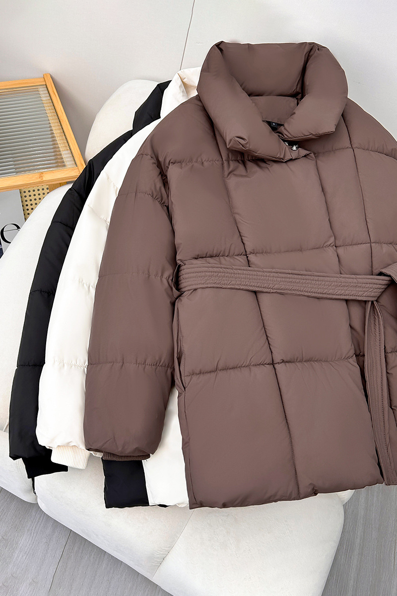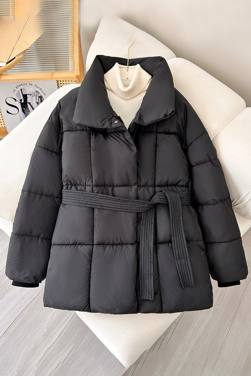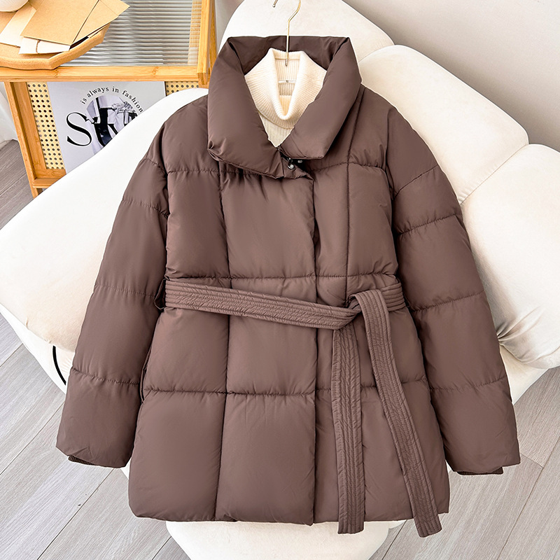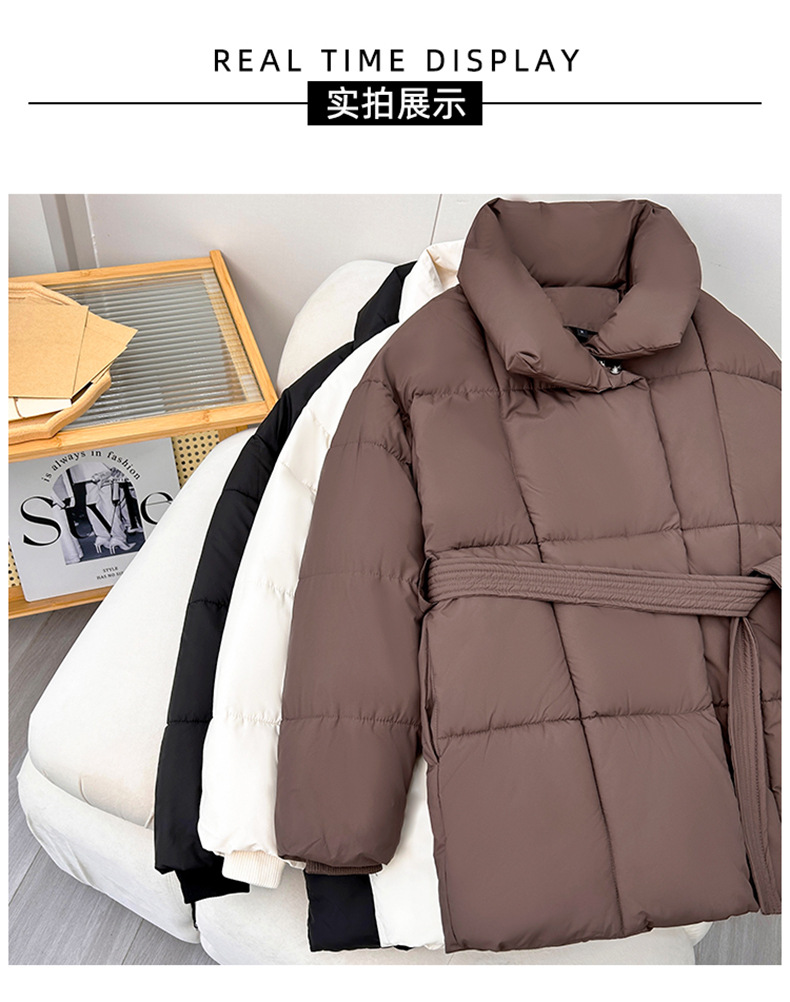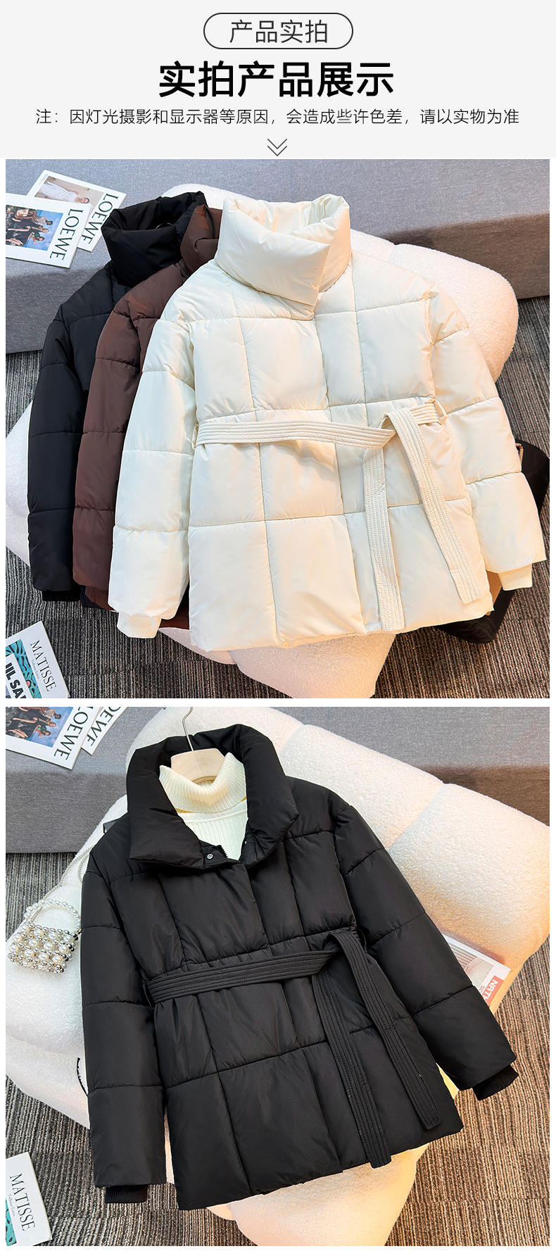 2025 новая зимняя хлопковая верхняя одежда с воротником-стойкой и поясом для похудения, женская свободная универсальная хлопковая куртка, модная хлопковая куртка в корейском стиле, женская куртка