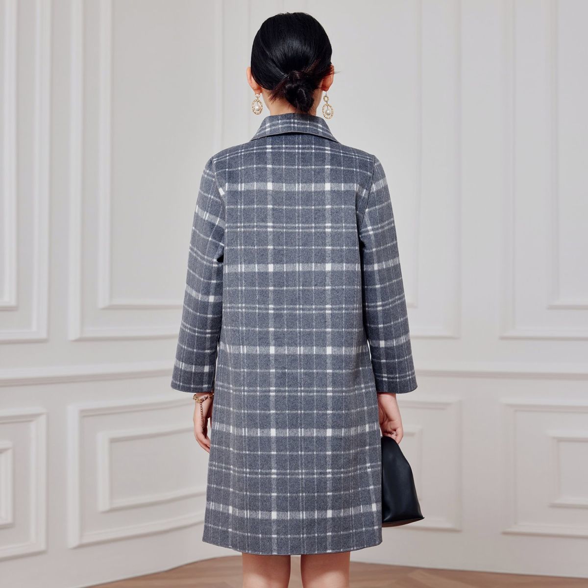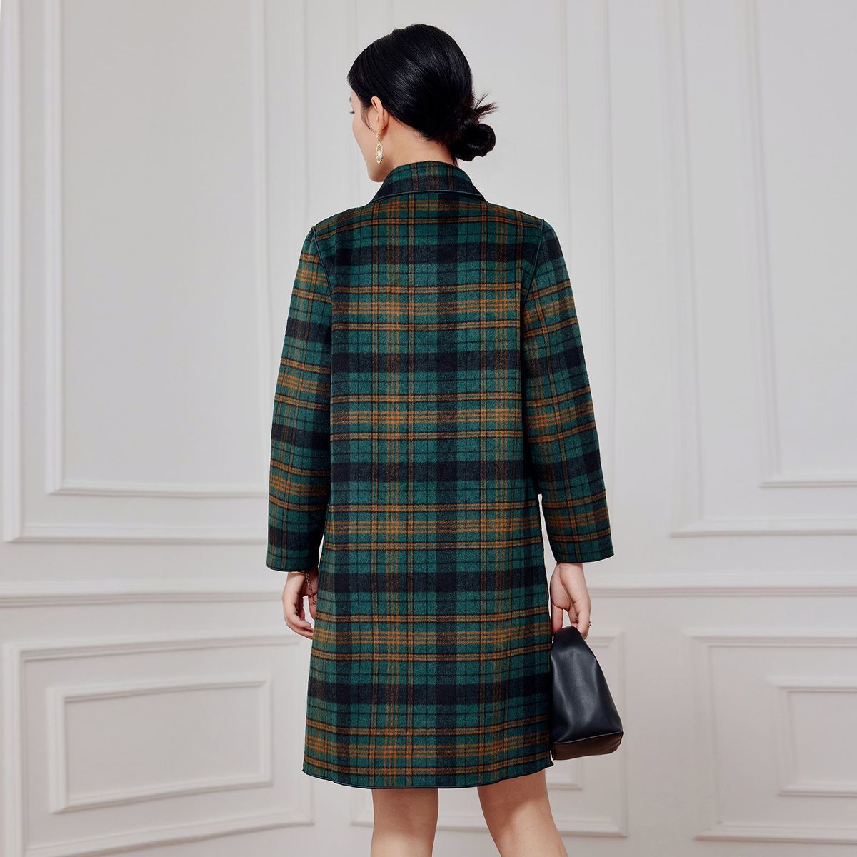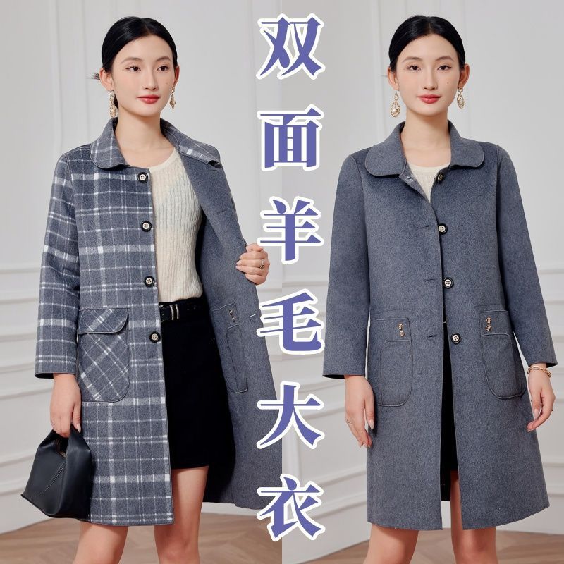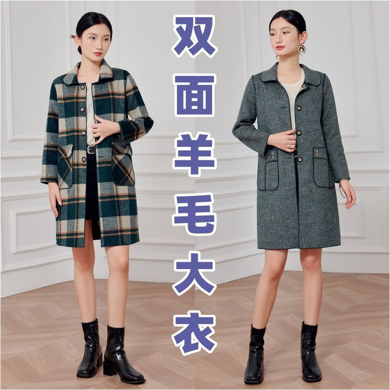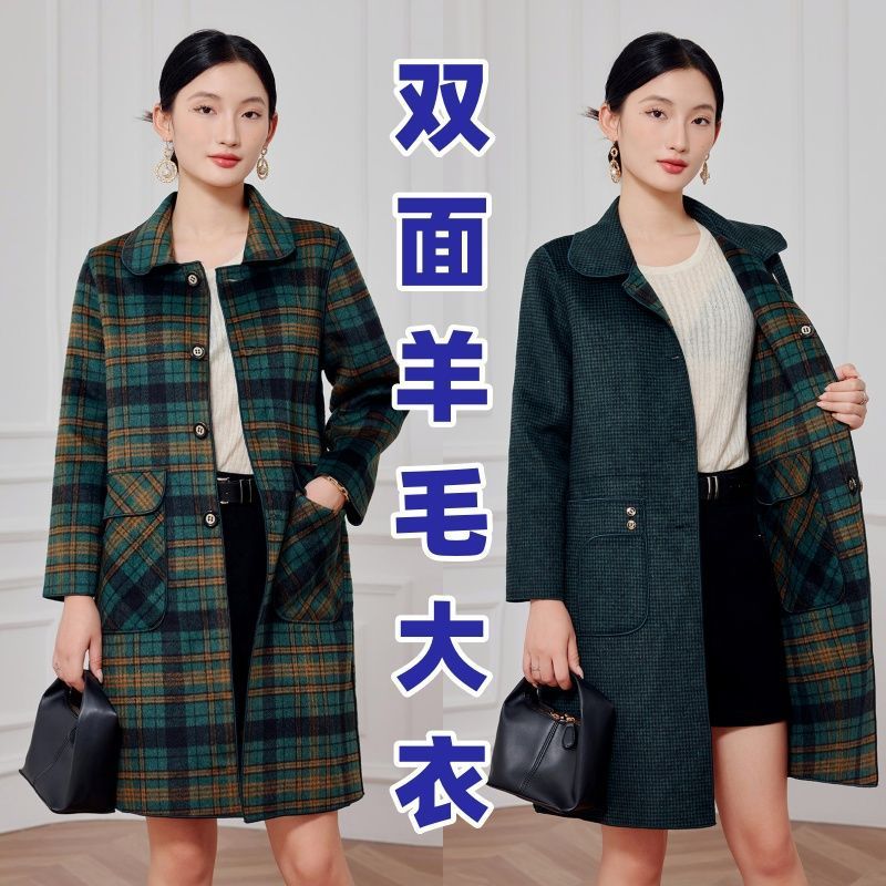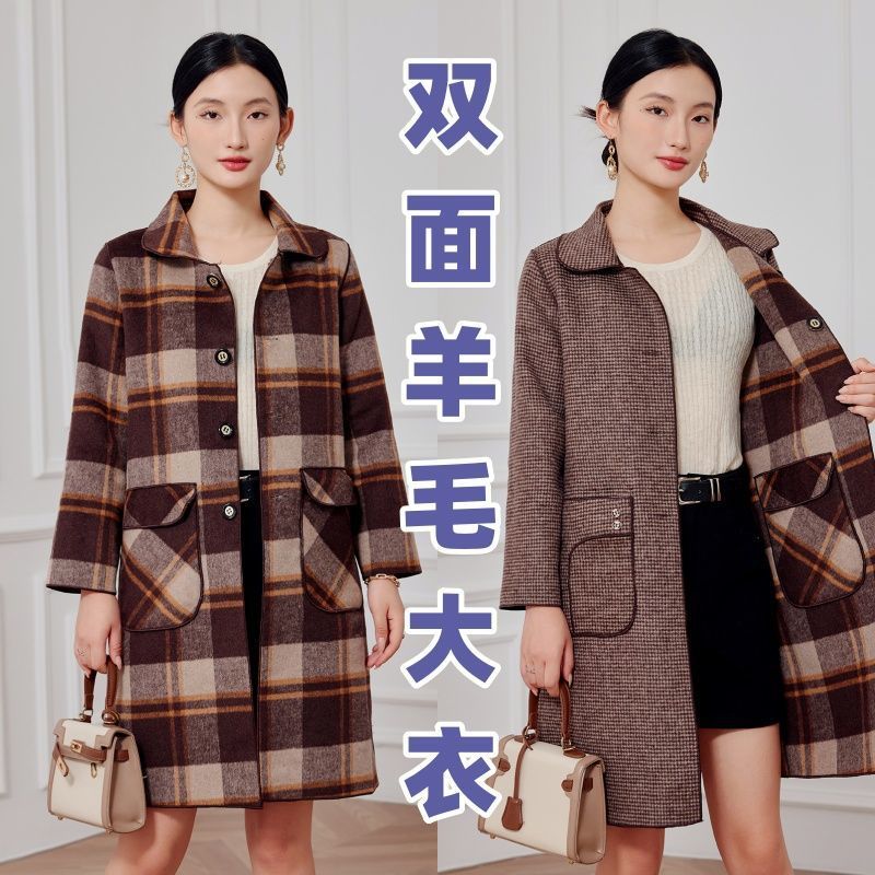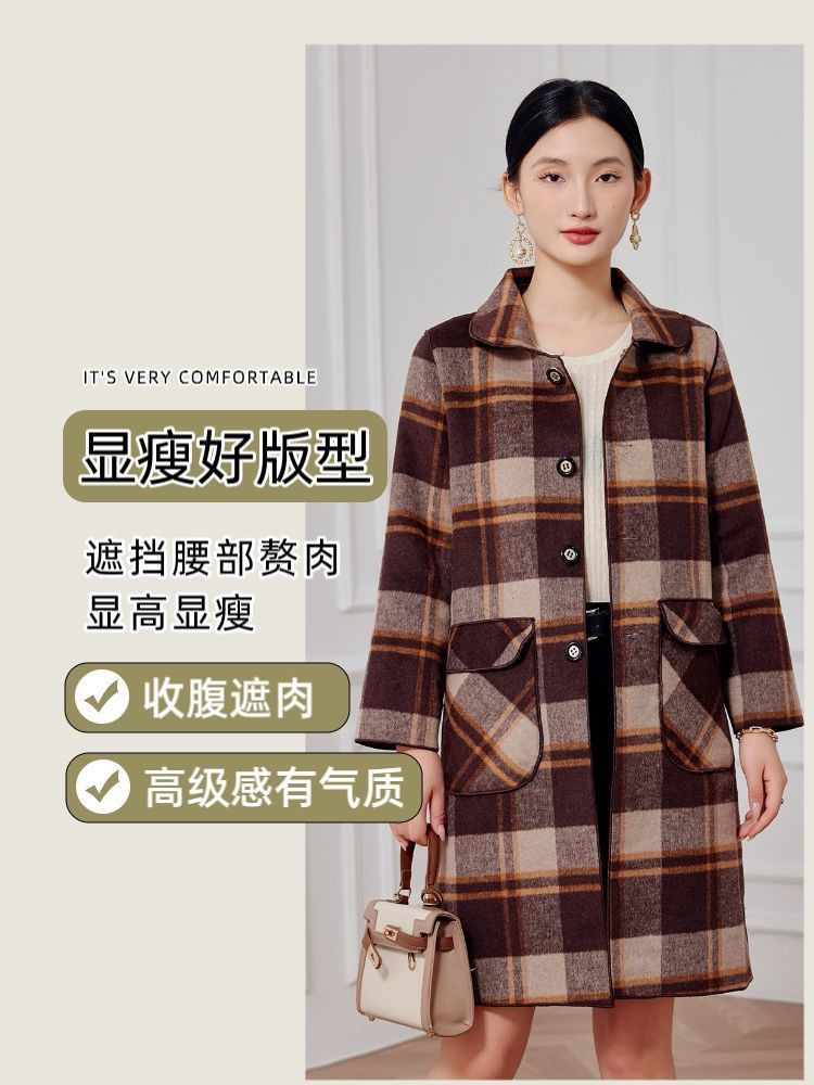 2023 клетчатое пальто, новое кашемировое пальто средней длины на осень и зиму, двустороннее шерстяное свободное пальто для мам, модное пальто в западном стиле