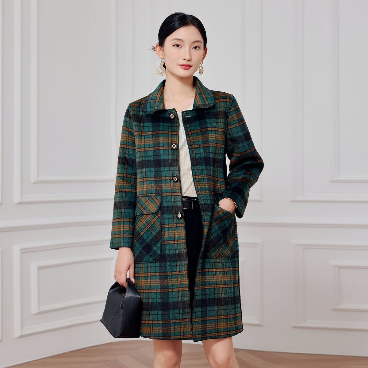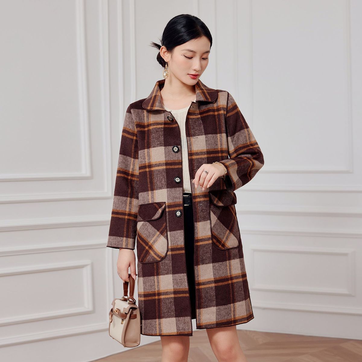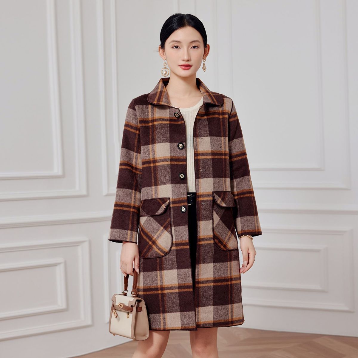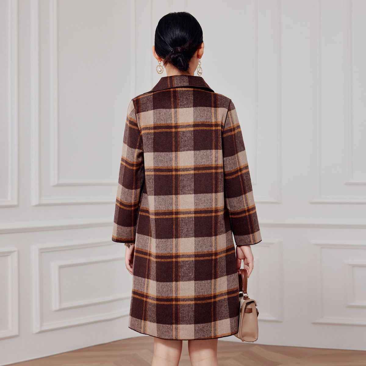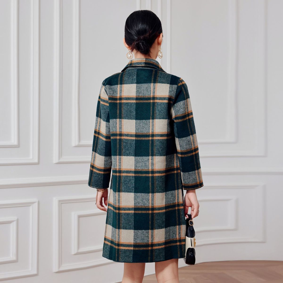 2023 клетчатое пальто, новое кашемировое пальто средней длины на осень и зиму, двустороннее шерстяное свободное пальто для мам, модное пальто в западном стиле