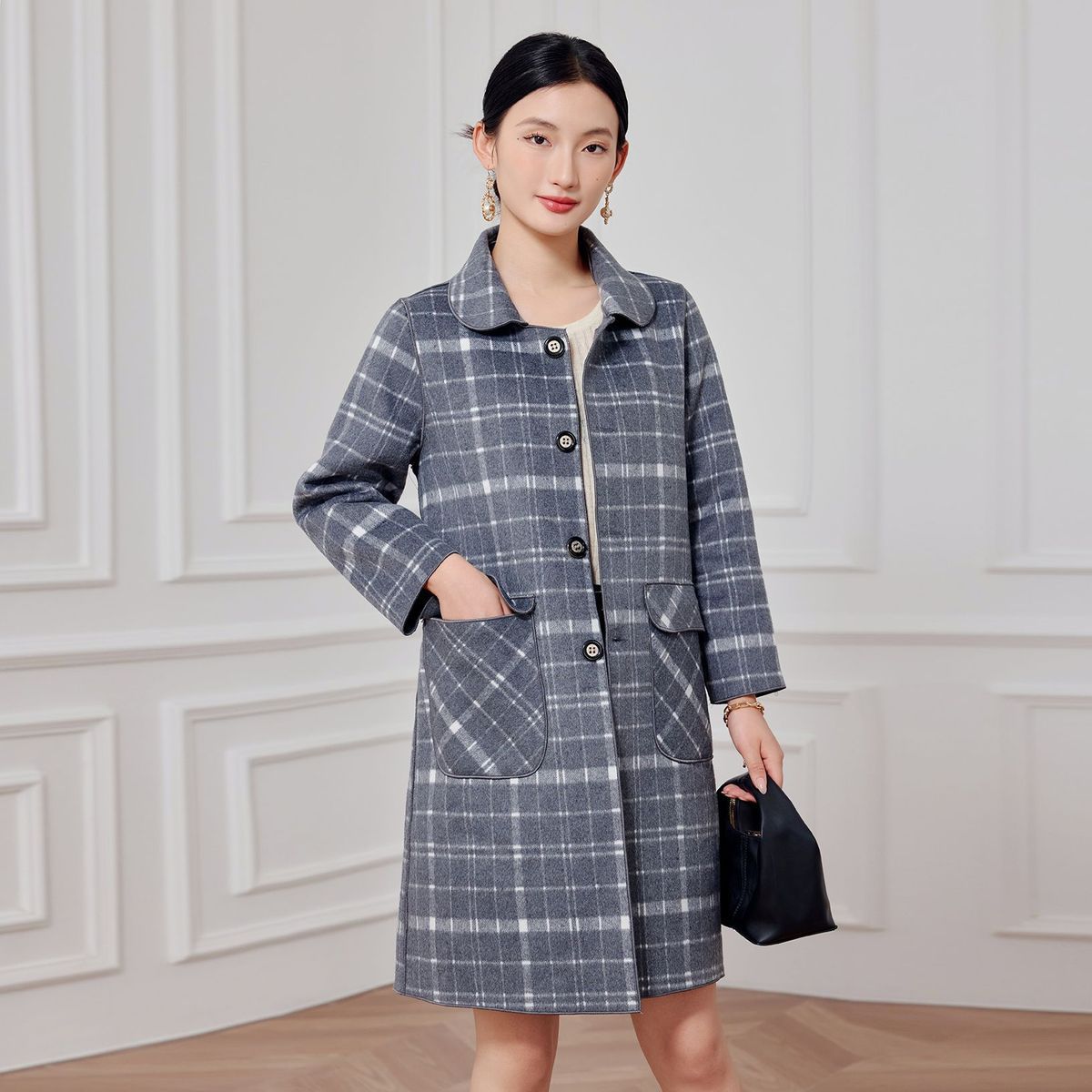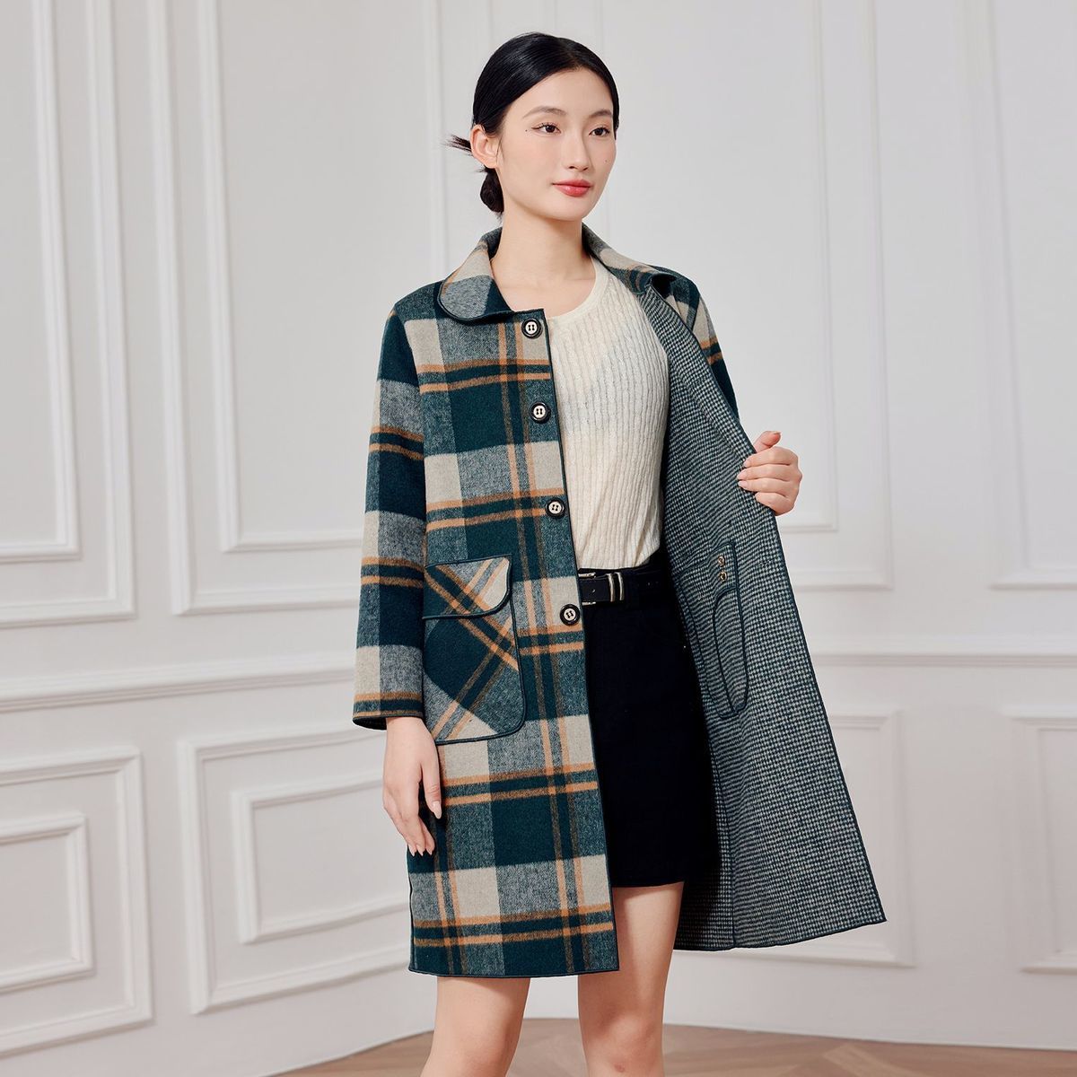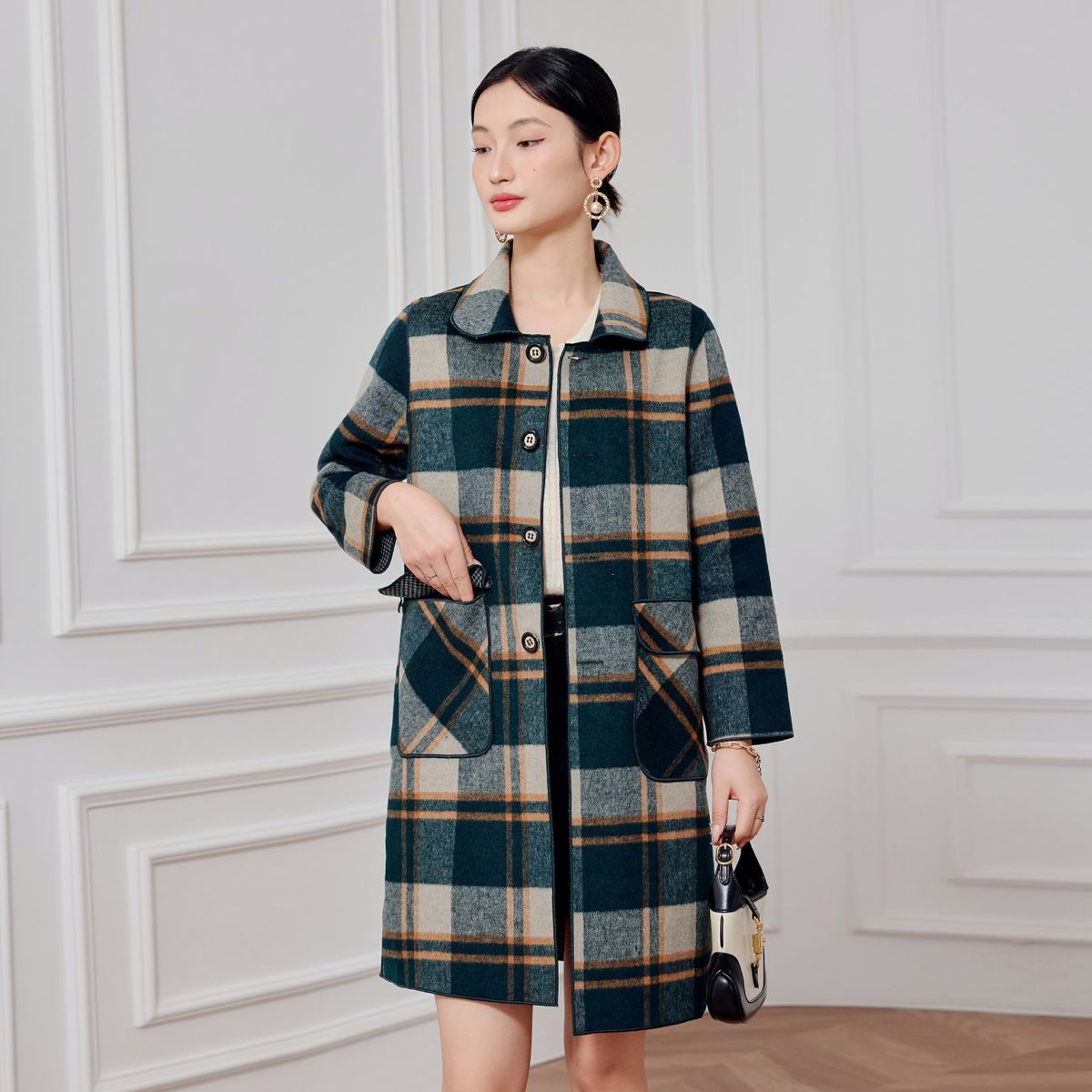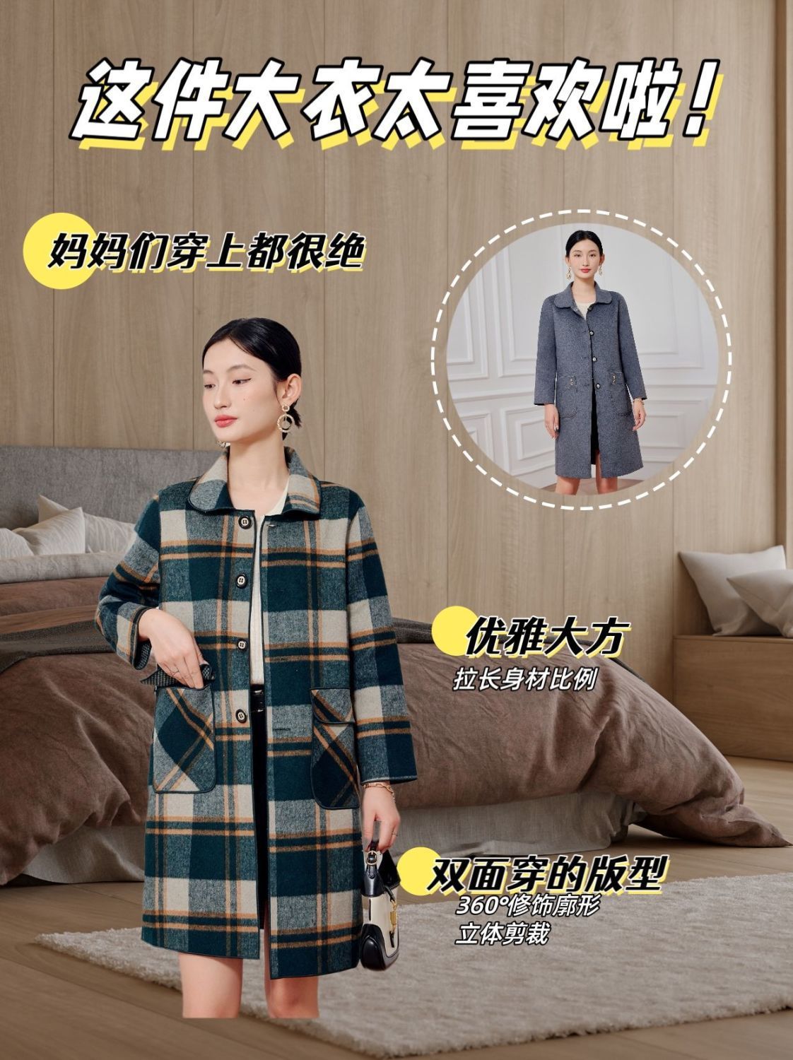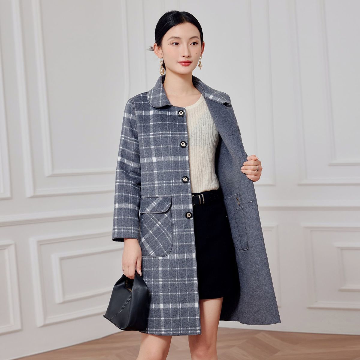 2023 клетчатое пальто, новое кашемировое пальто средней длины на осень и зиму, двустороннее шерстяное свободное пальто для мам, модное пальто в западном стиле