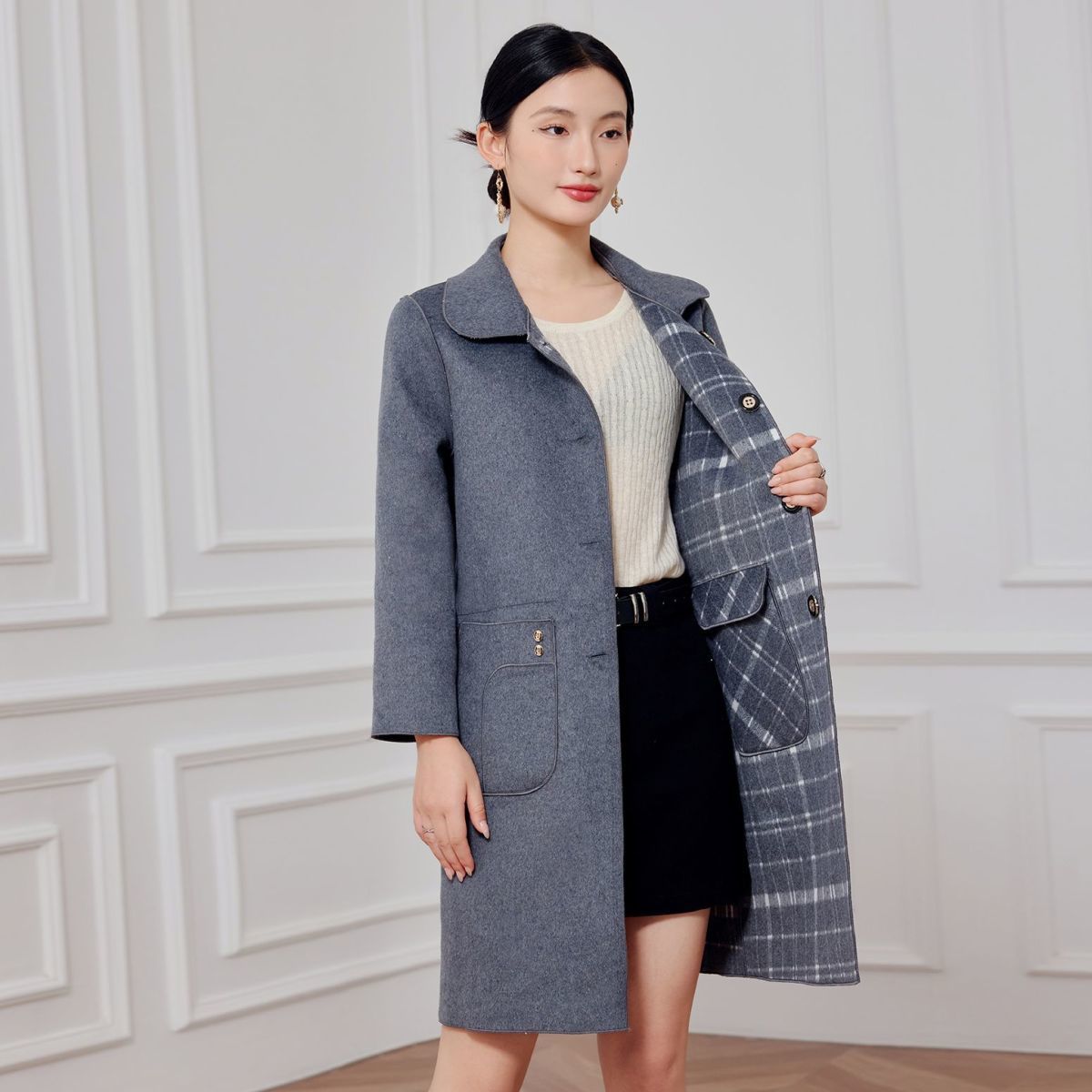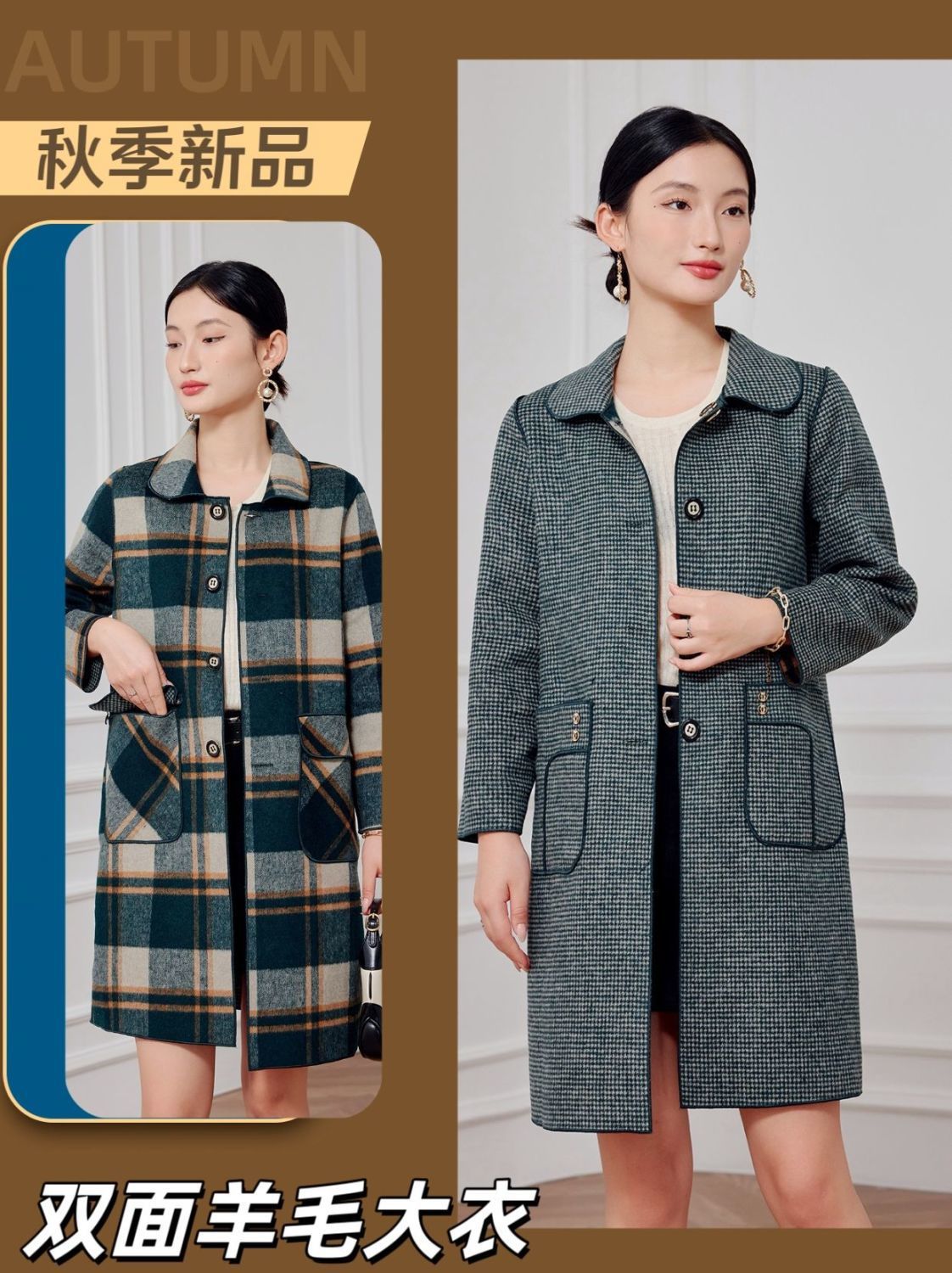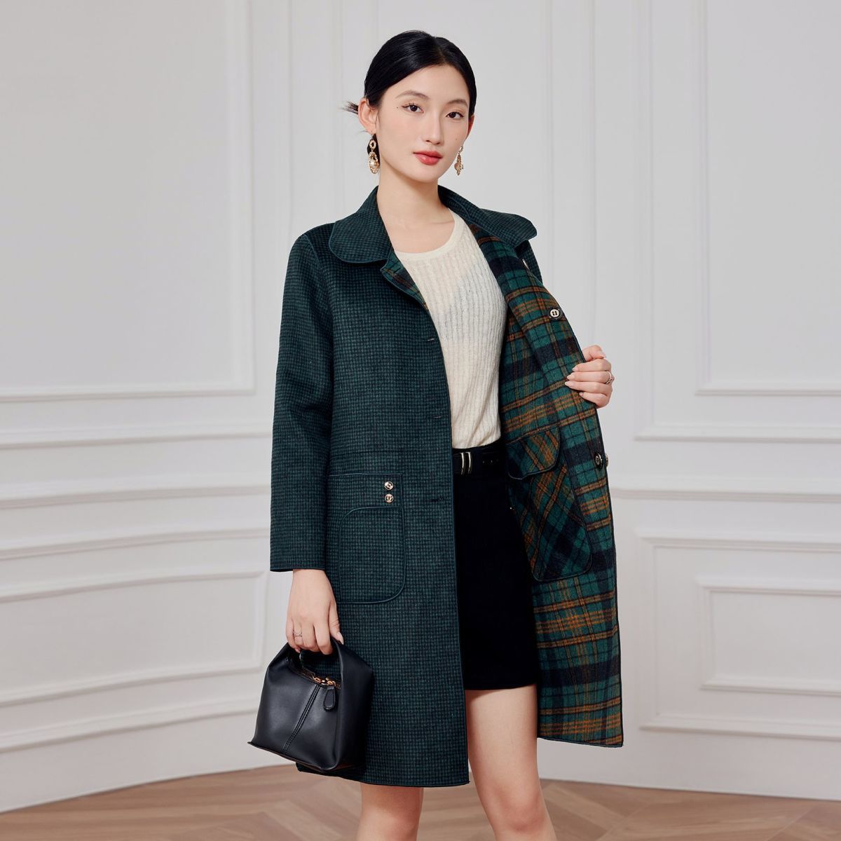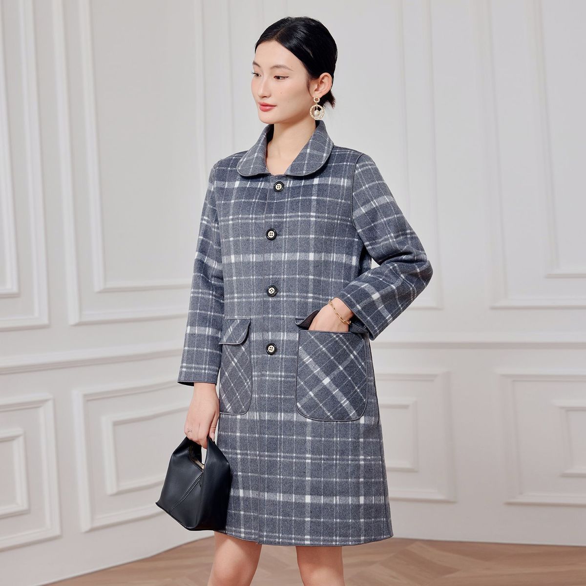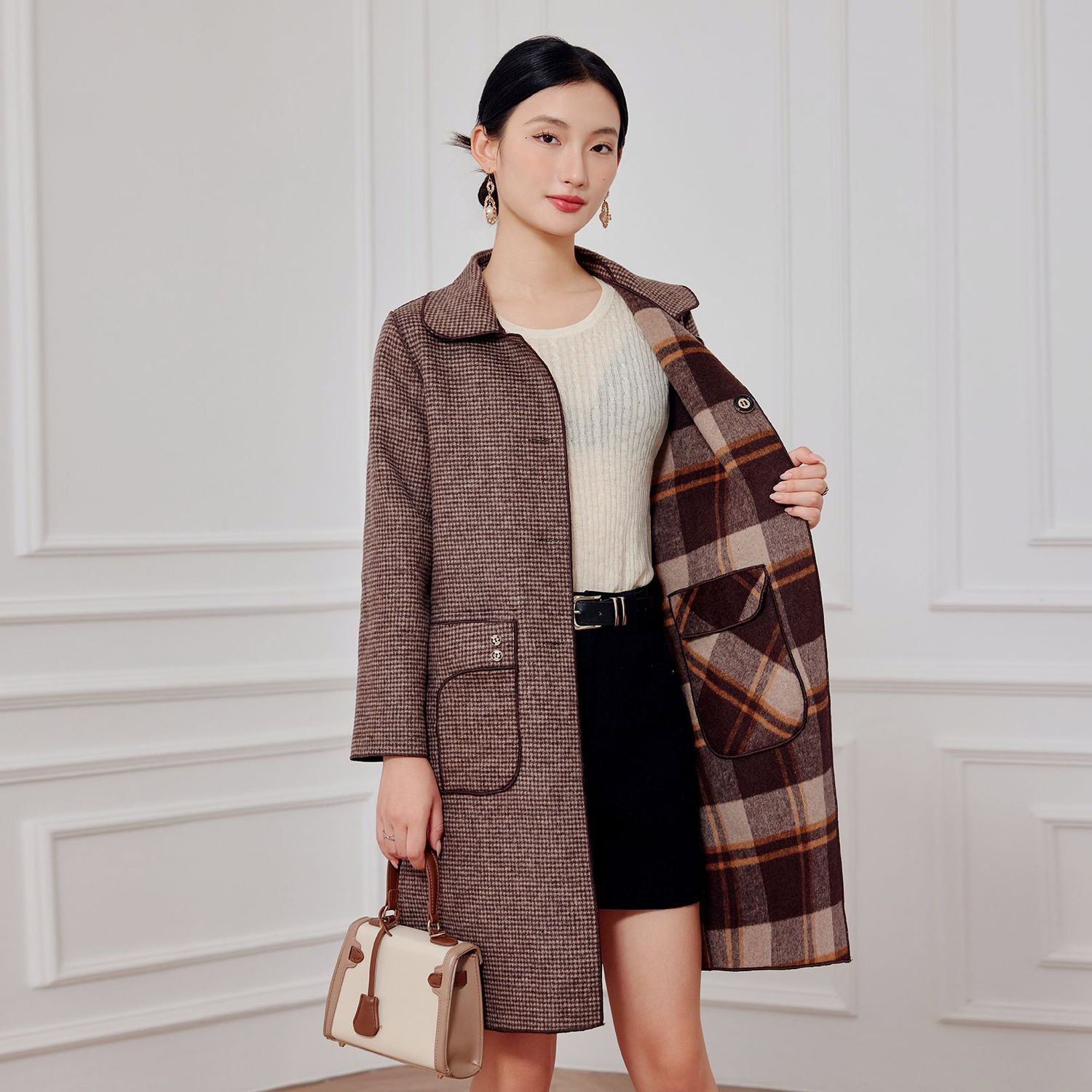 2023 клетчатое пальто, новое кашемировое пальто средней длины на осень и зиму, двустороннее шерстяное свободное пальто для мам, модное пальто в западном стиле