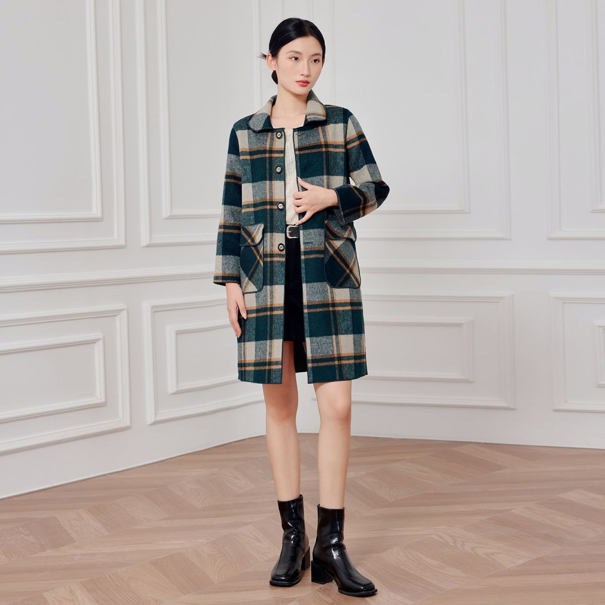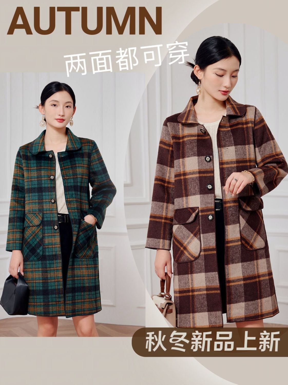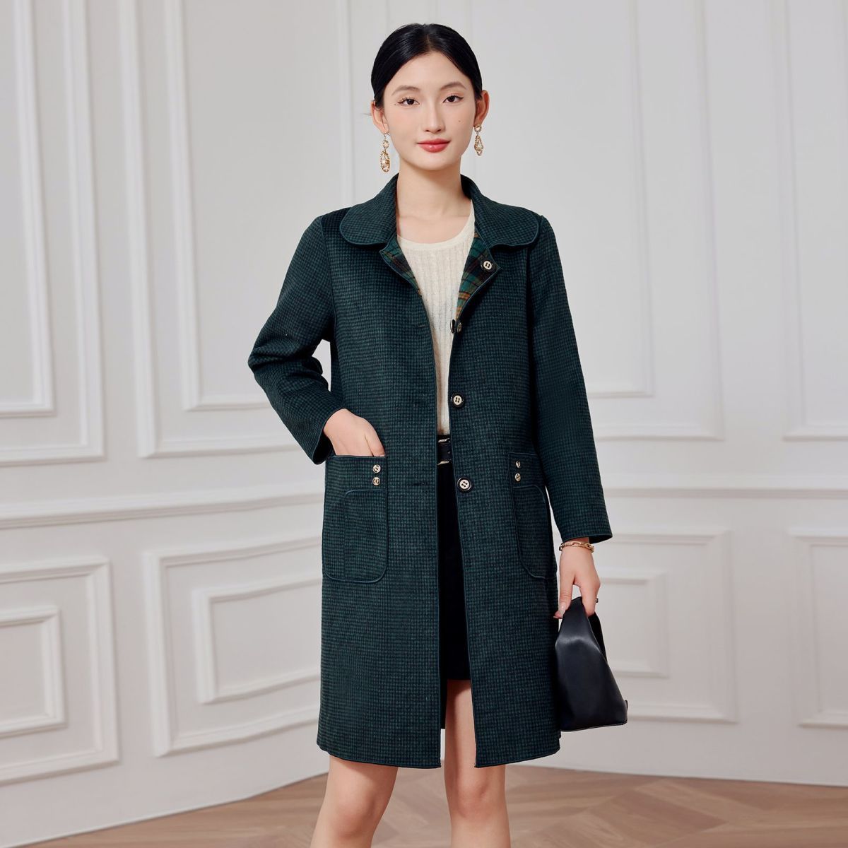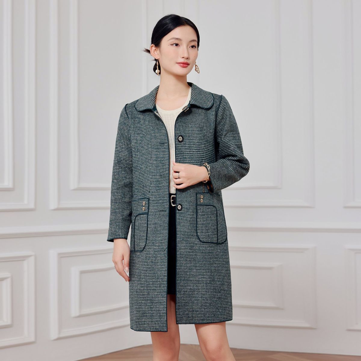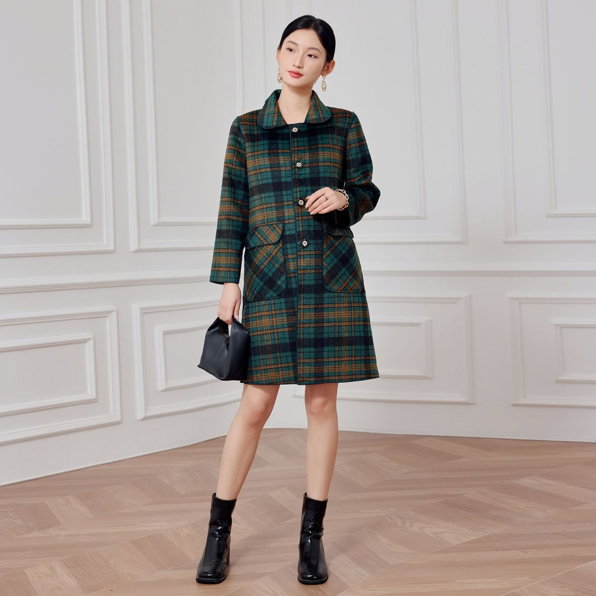 2023 клетчатое пальто, новое кашемировое пальто средней длины на осень и зиму, двустороннее шерстяное свободное пальто для мам, модное пальто в западном стиле