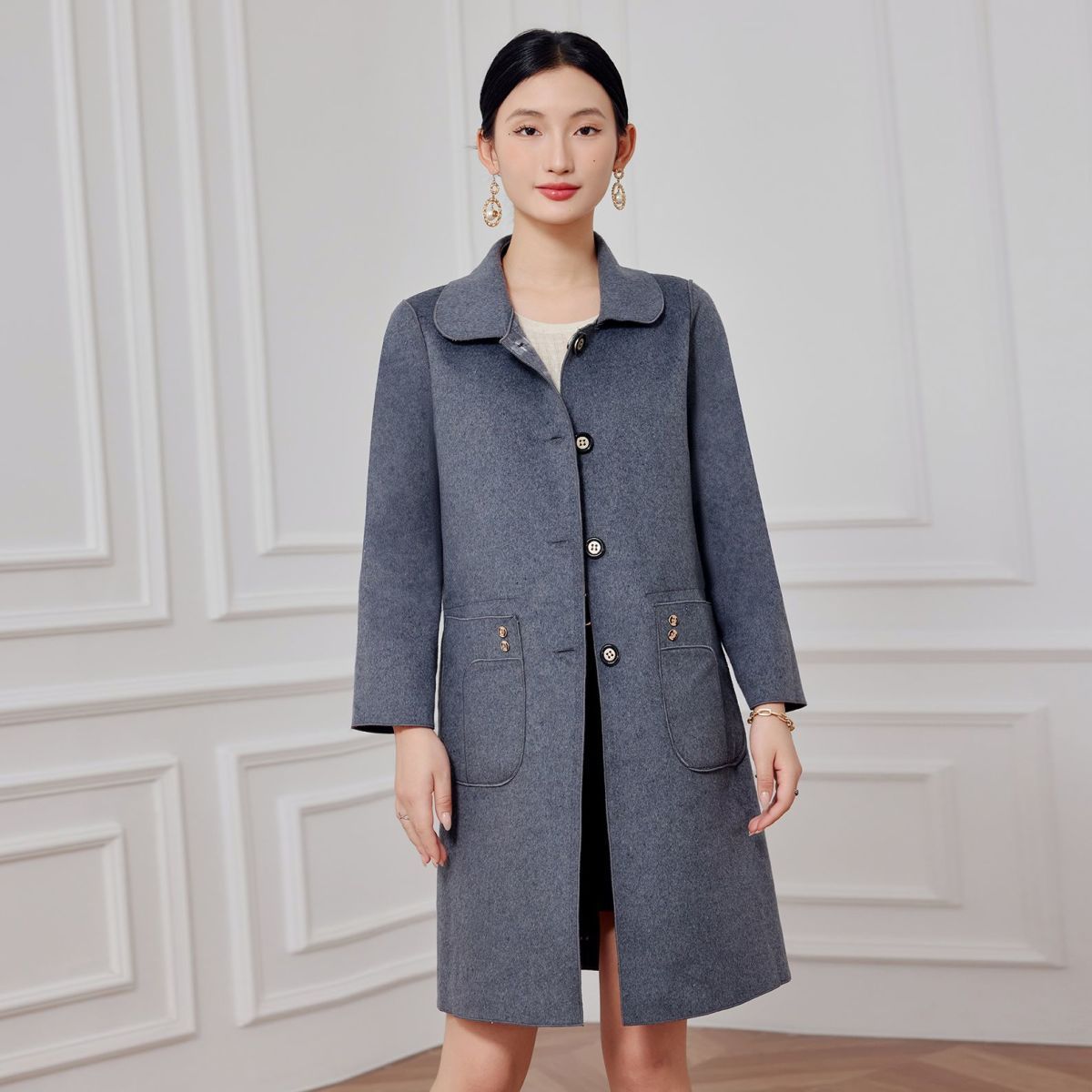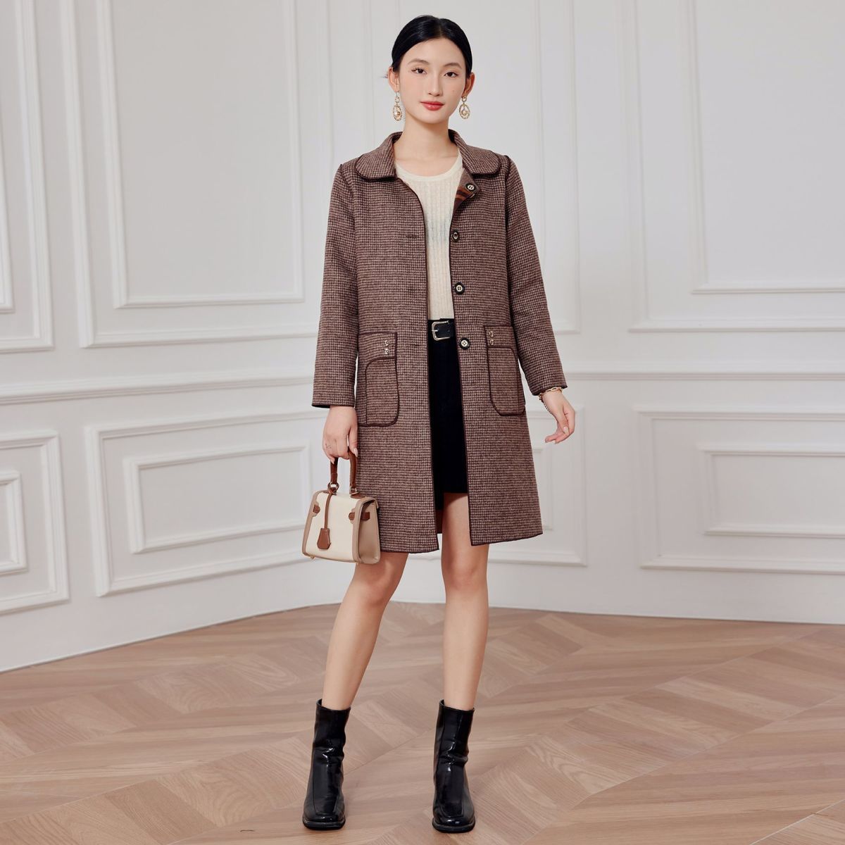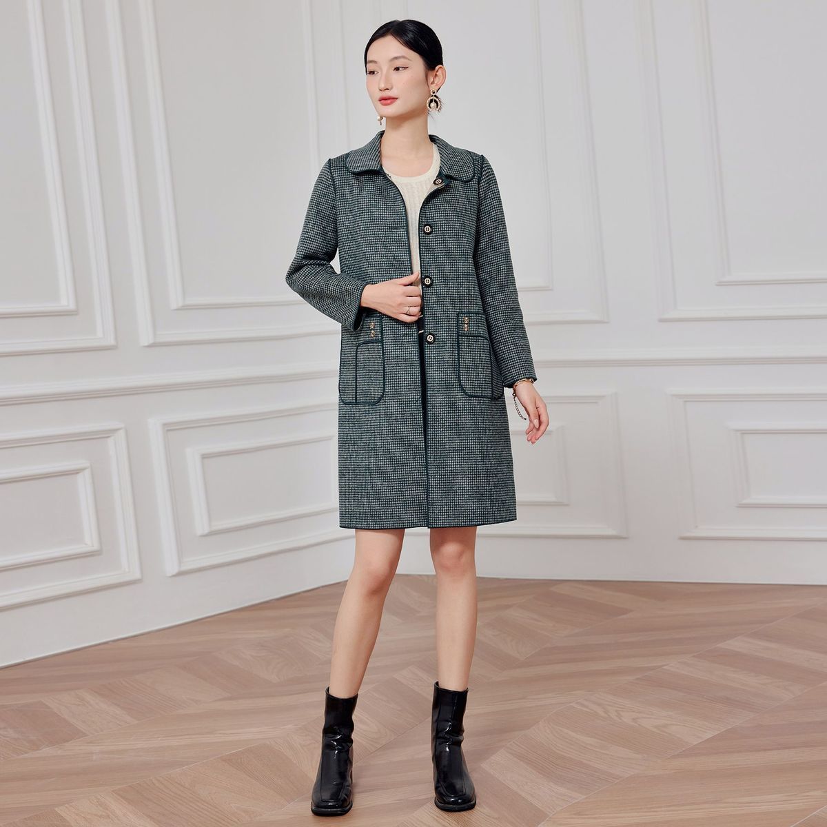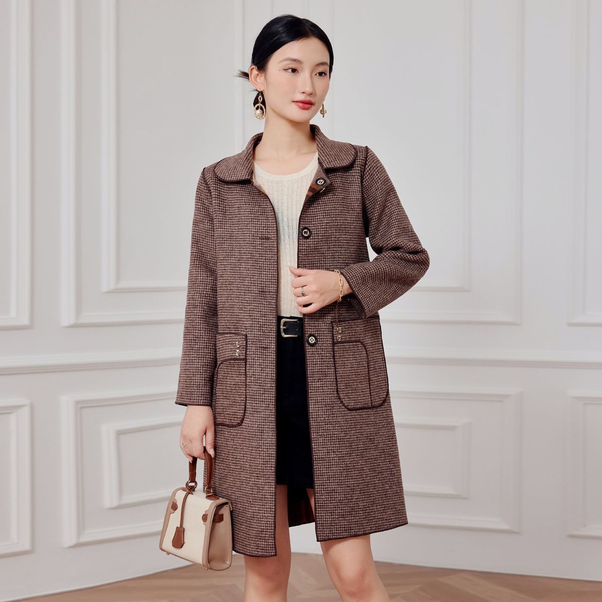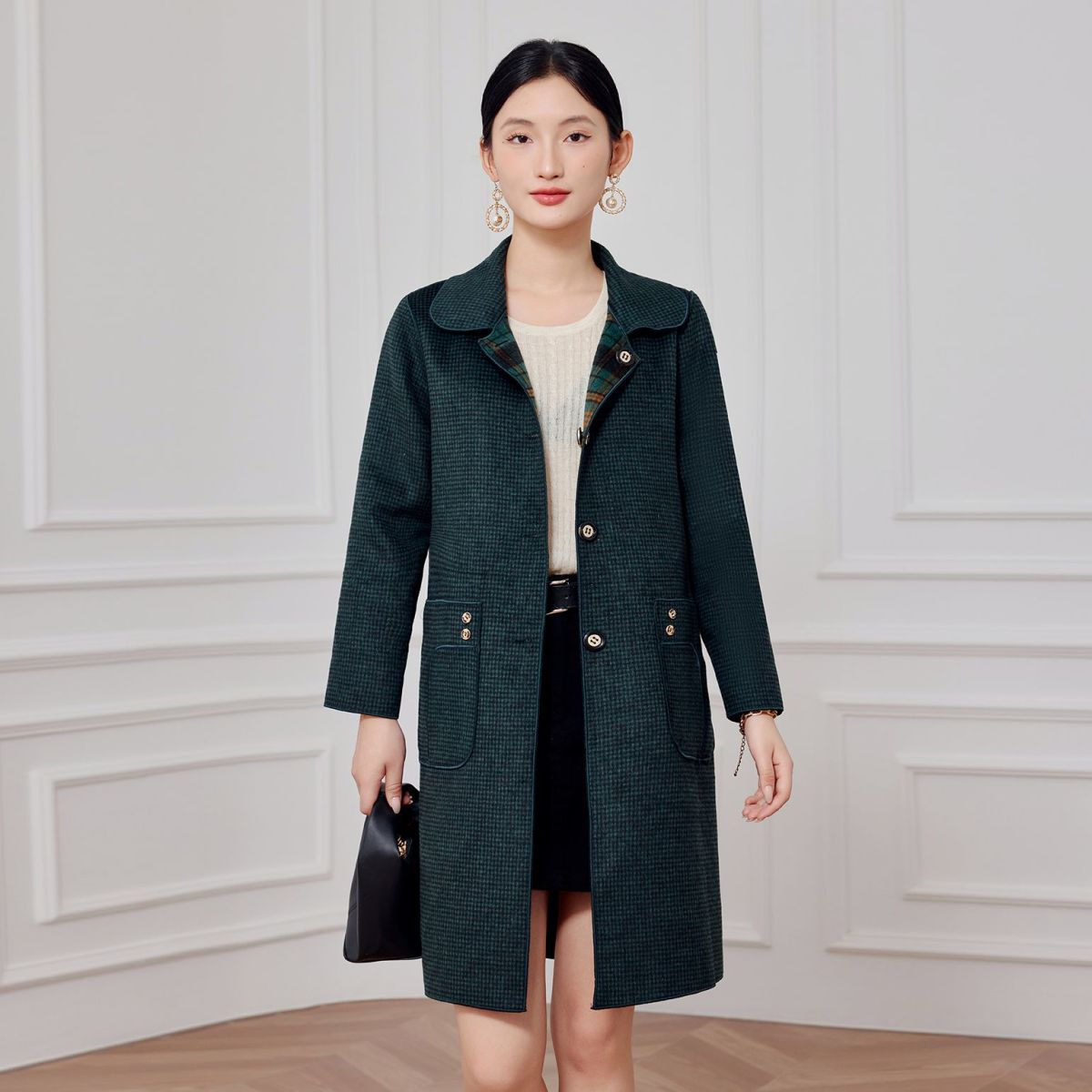 2023 клетчатое пальто, новое кашемировое пальто средней длины на осень и зиму, двустороннее шерстяное свободное пальто для мам, модное пальто в западном стиле