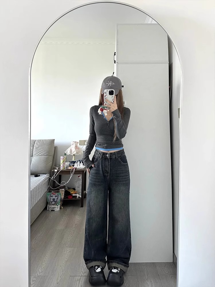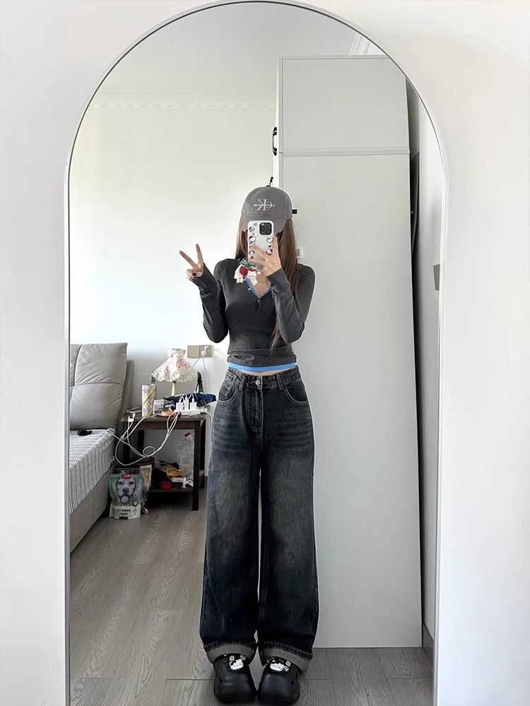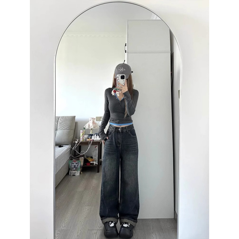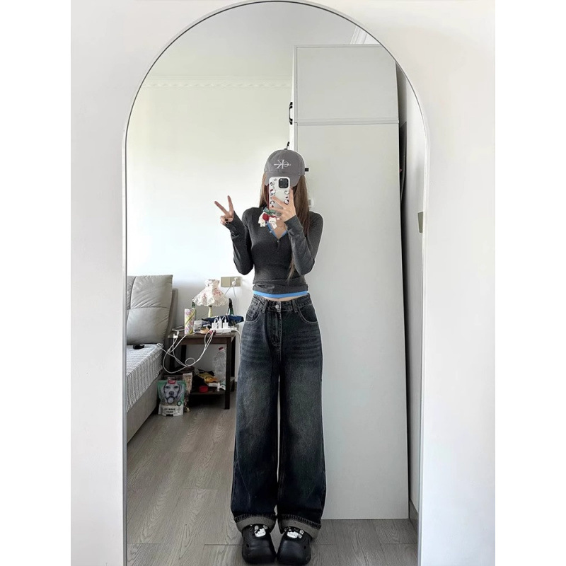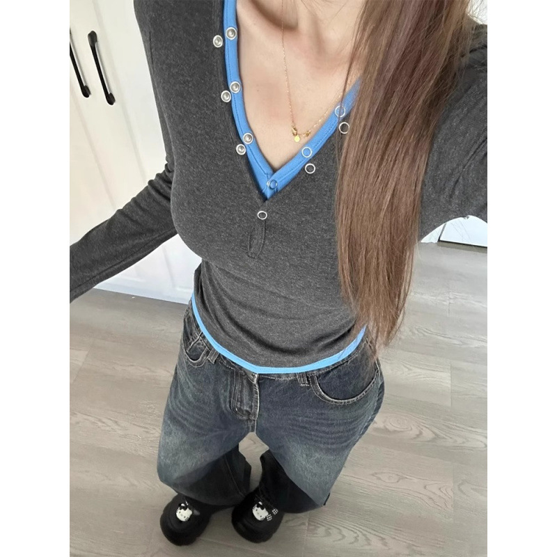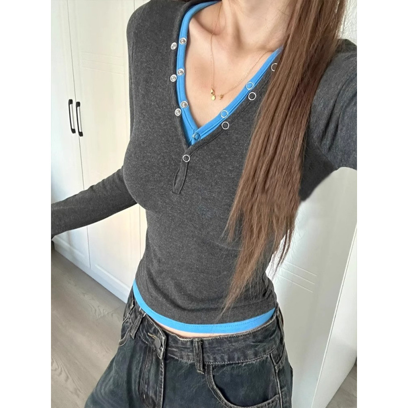[Rayon Modal 1*1, как вам нравится] Корейская серая футболка из двух частей с v-образным вырезом, женская нижняя рубашка, короткий топ