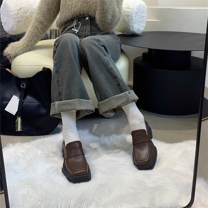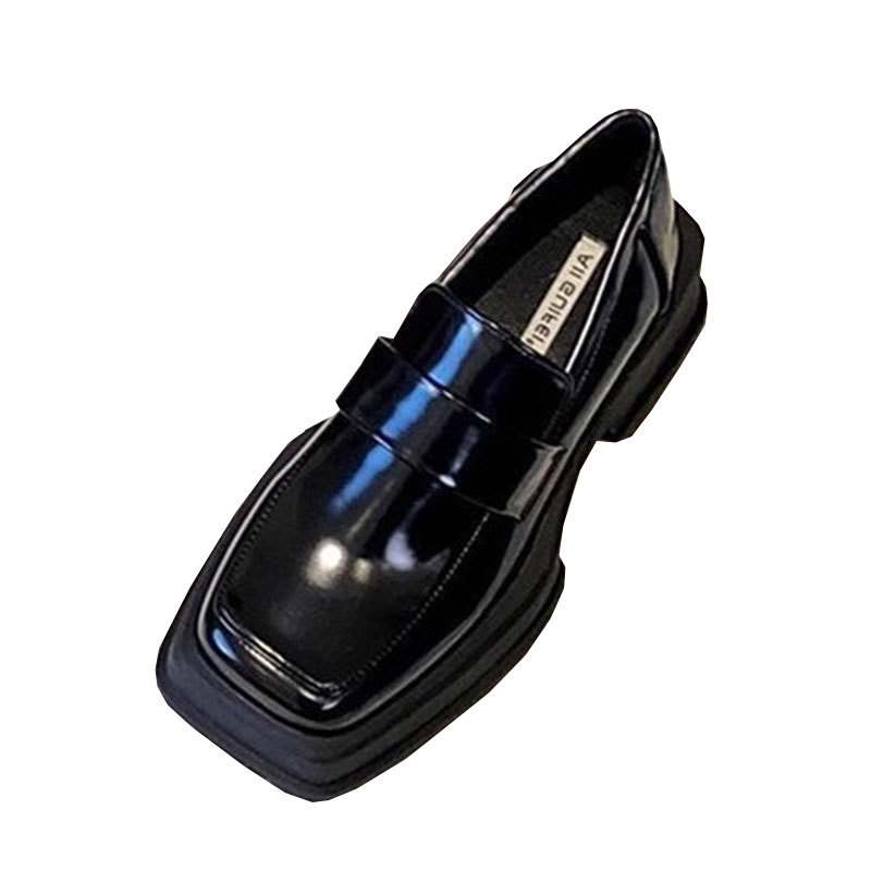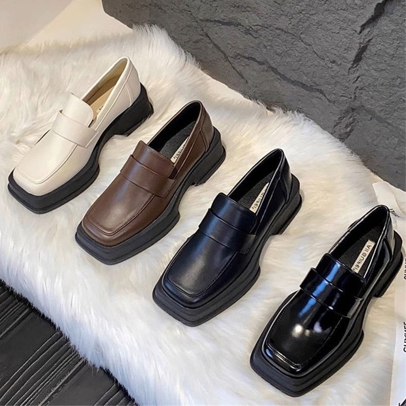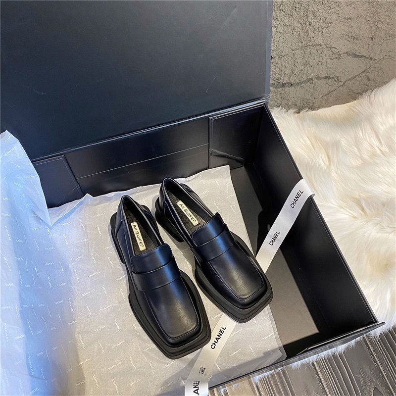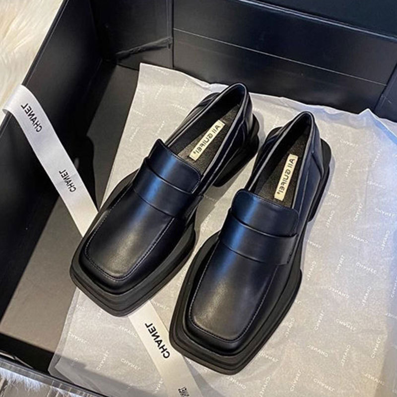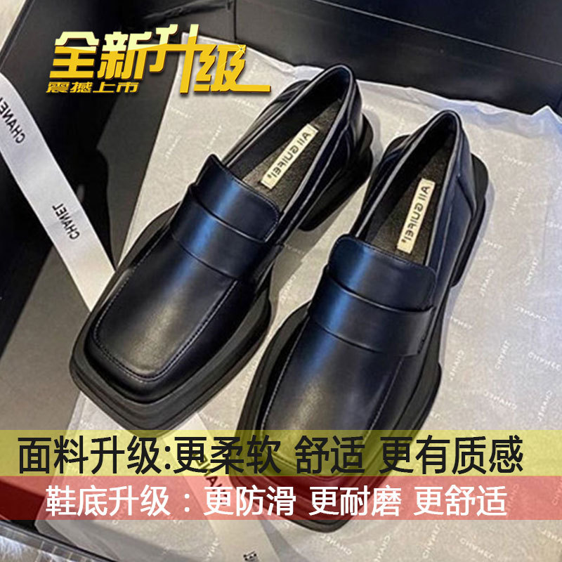 Женские туфли-лоферы на толстой подошве с квадратным носком, ретро, плоские, весна 2025, универсальные, черные, в британском стиле, маленькие кожаные туфли