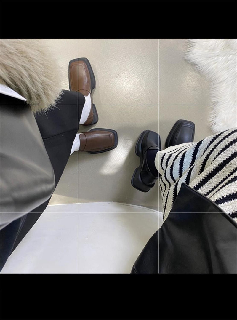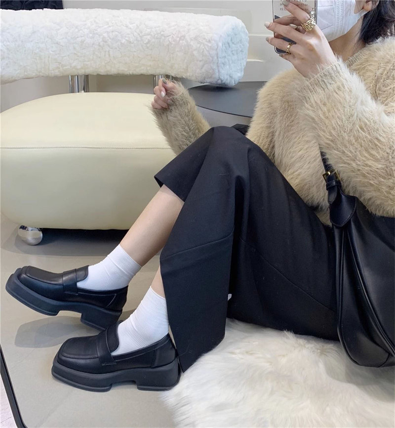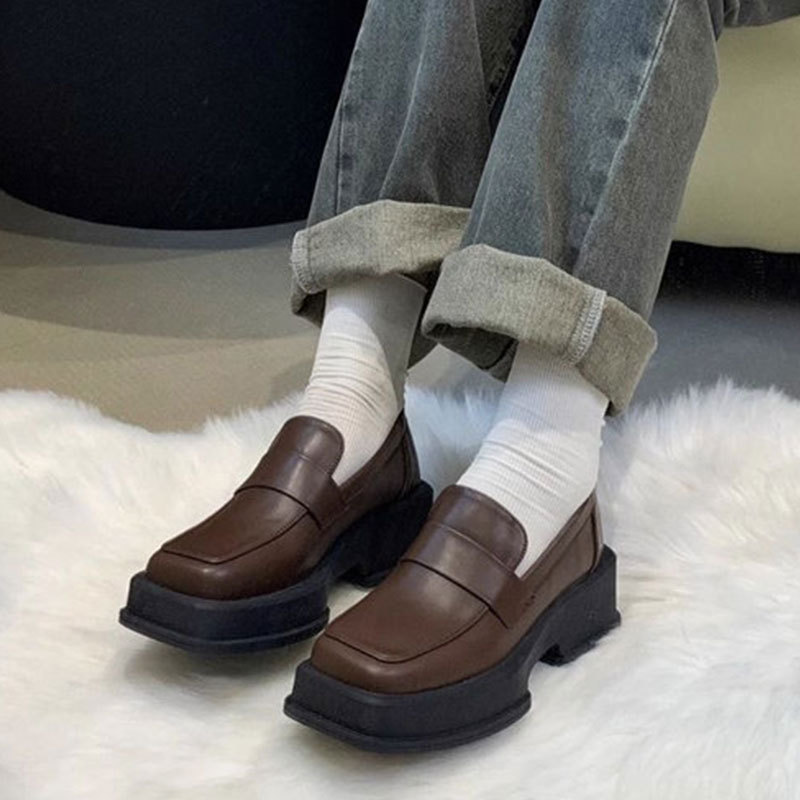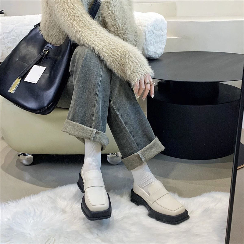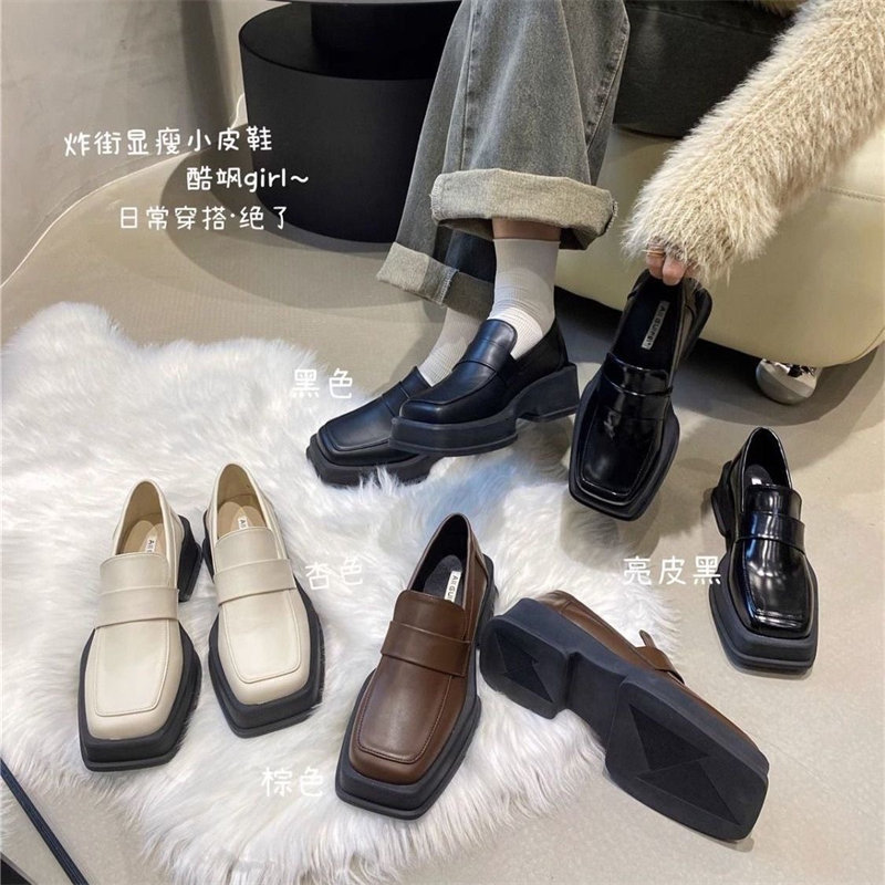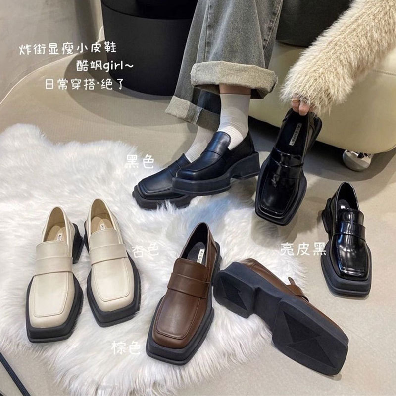 Женские туфли-лоферы на толстой подошве с квадратным носком, ретро, плоские, весна 2025, универсальные, черные, в британском стиле, маленькие кожаные туфли