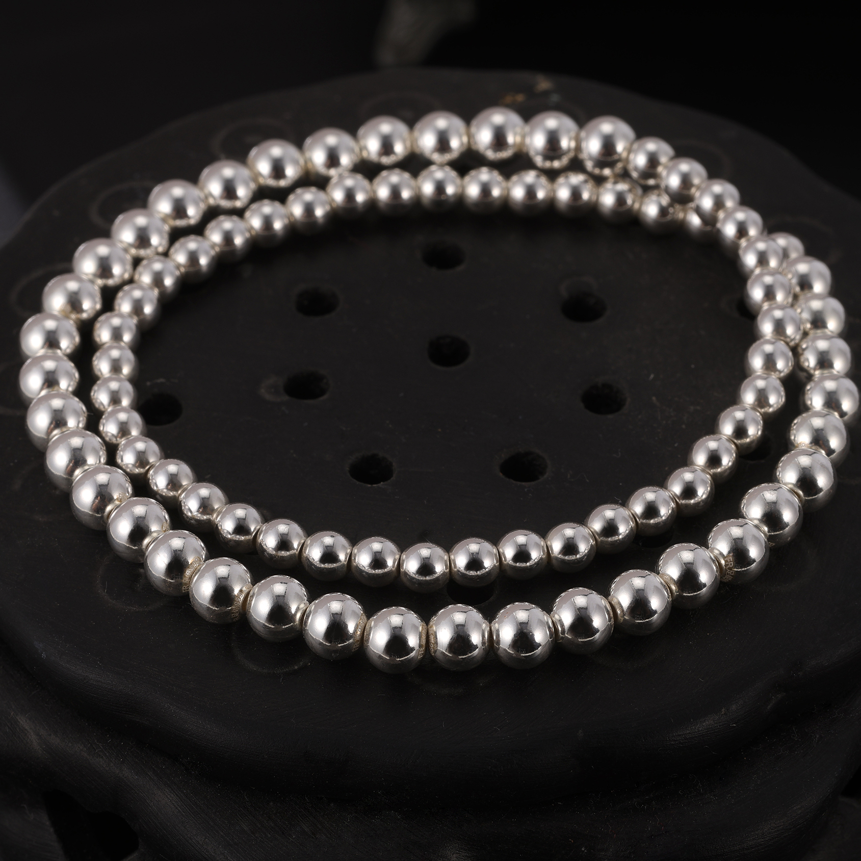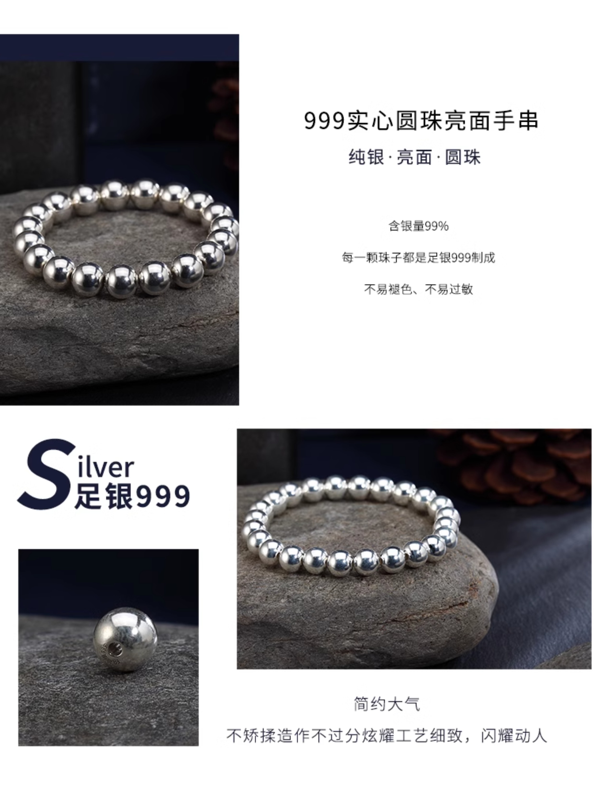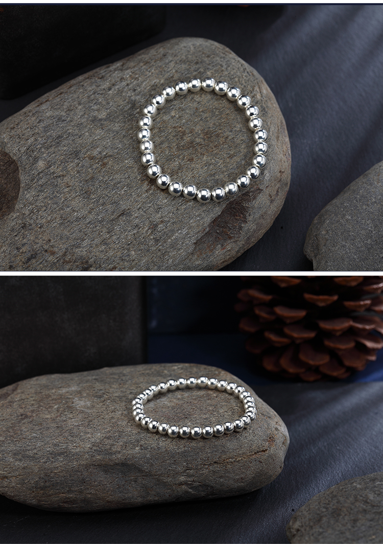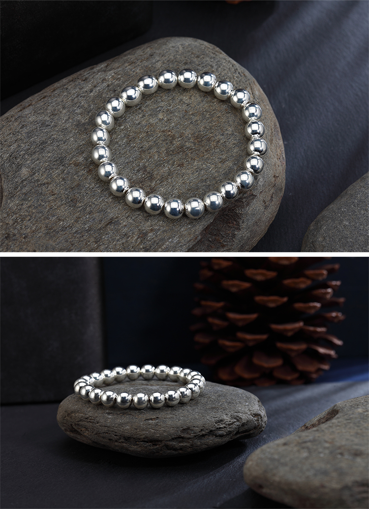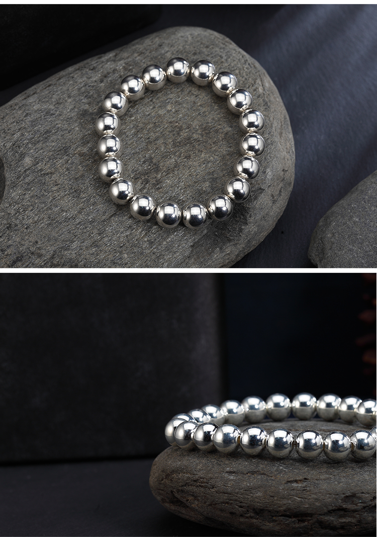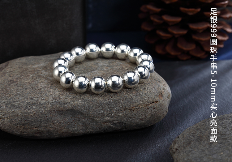 Браслет из чистого серебра 999 пробы с круглыми бусинами из цельного серебра, глянцевый стиль