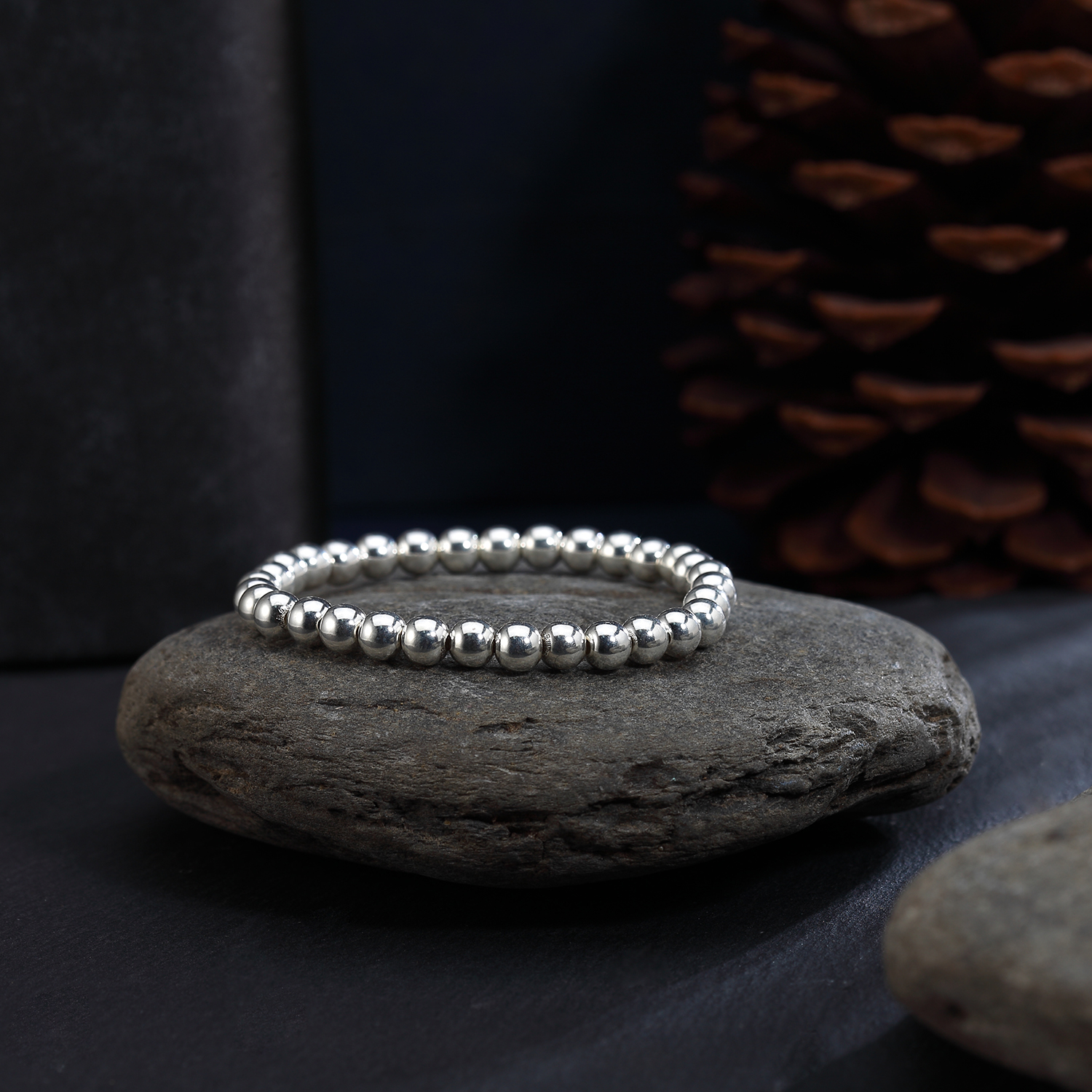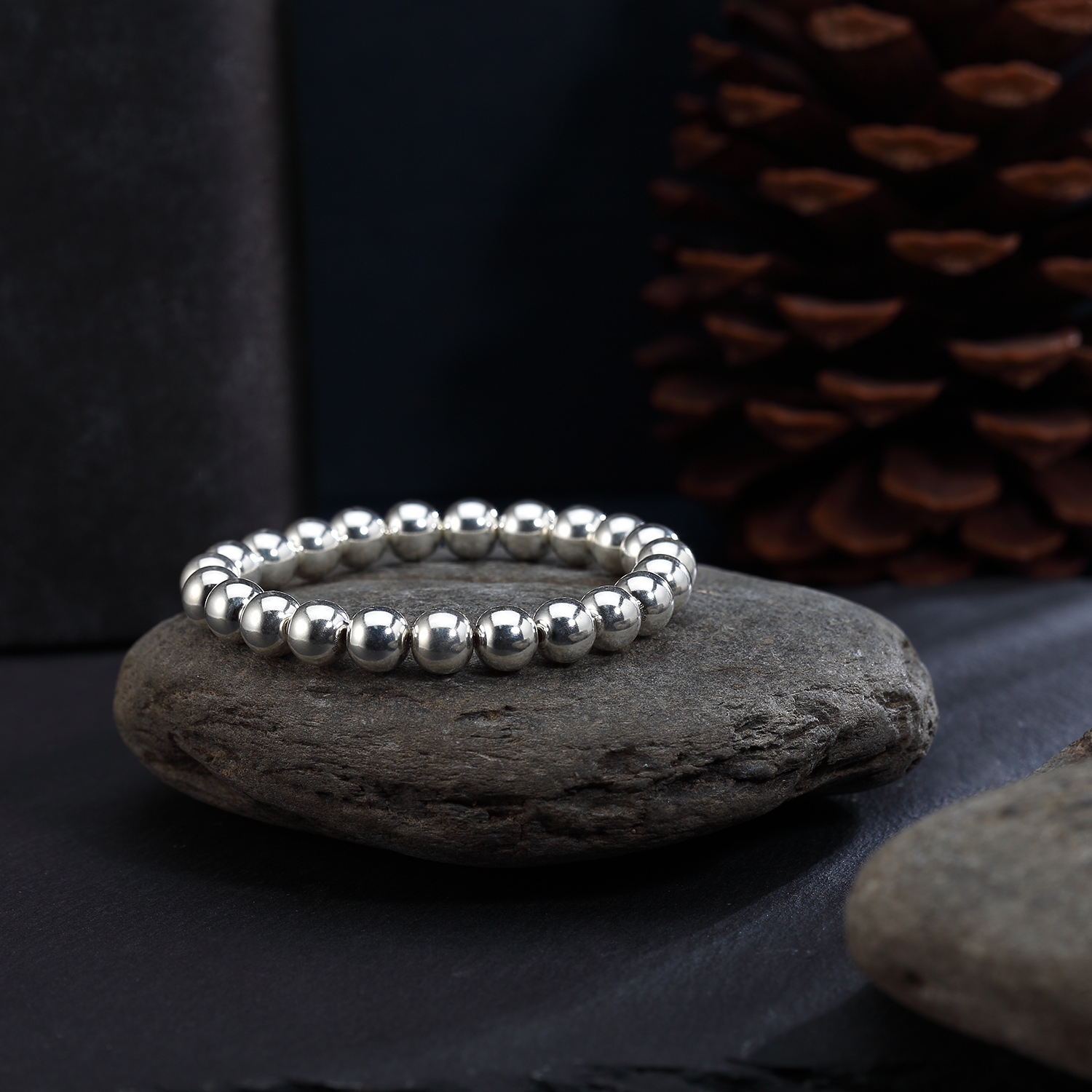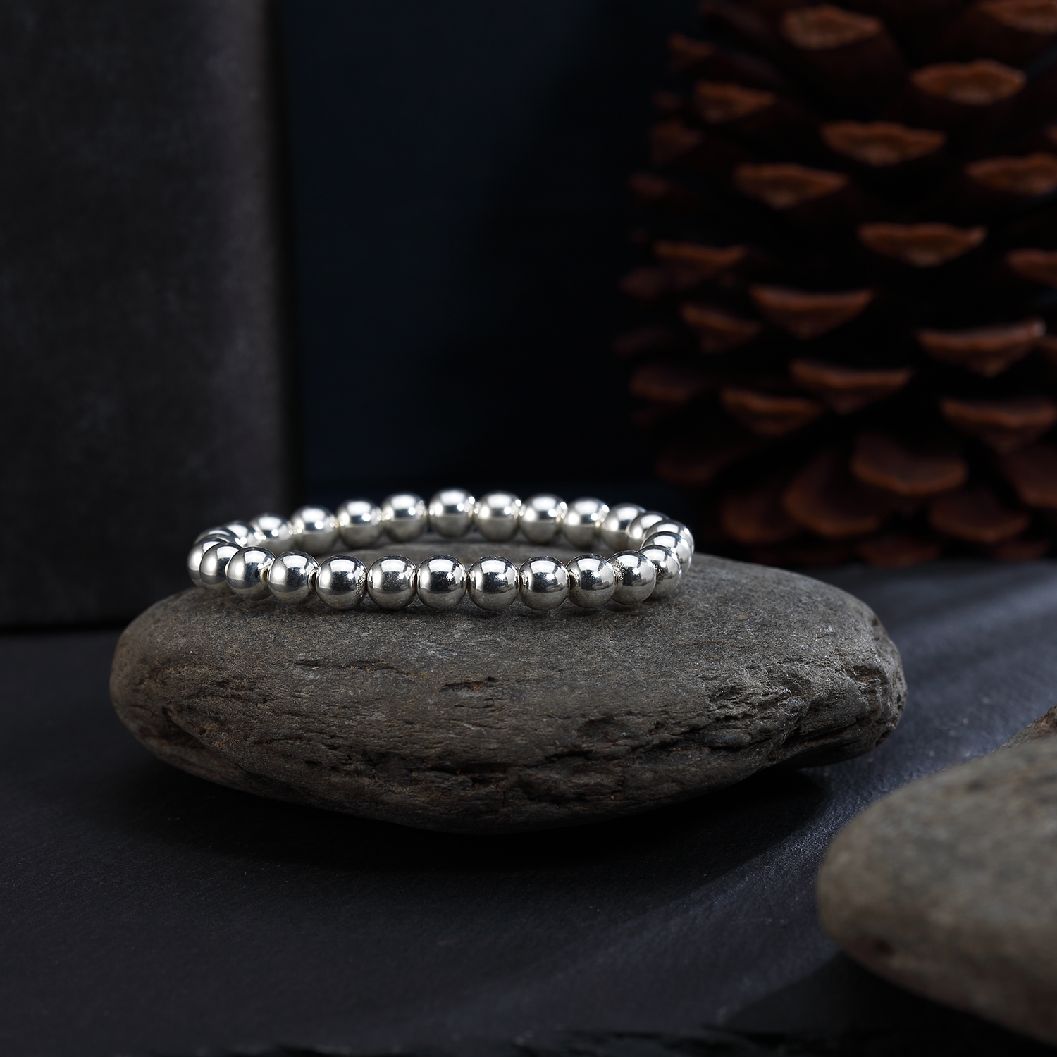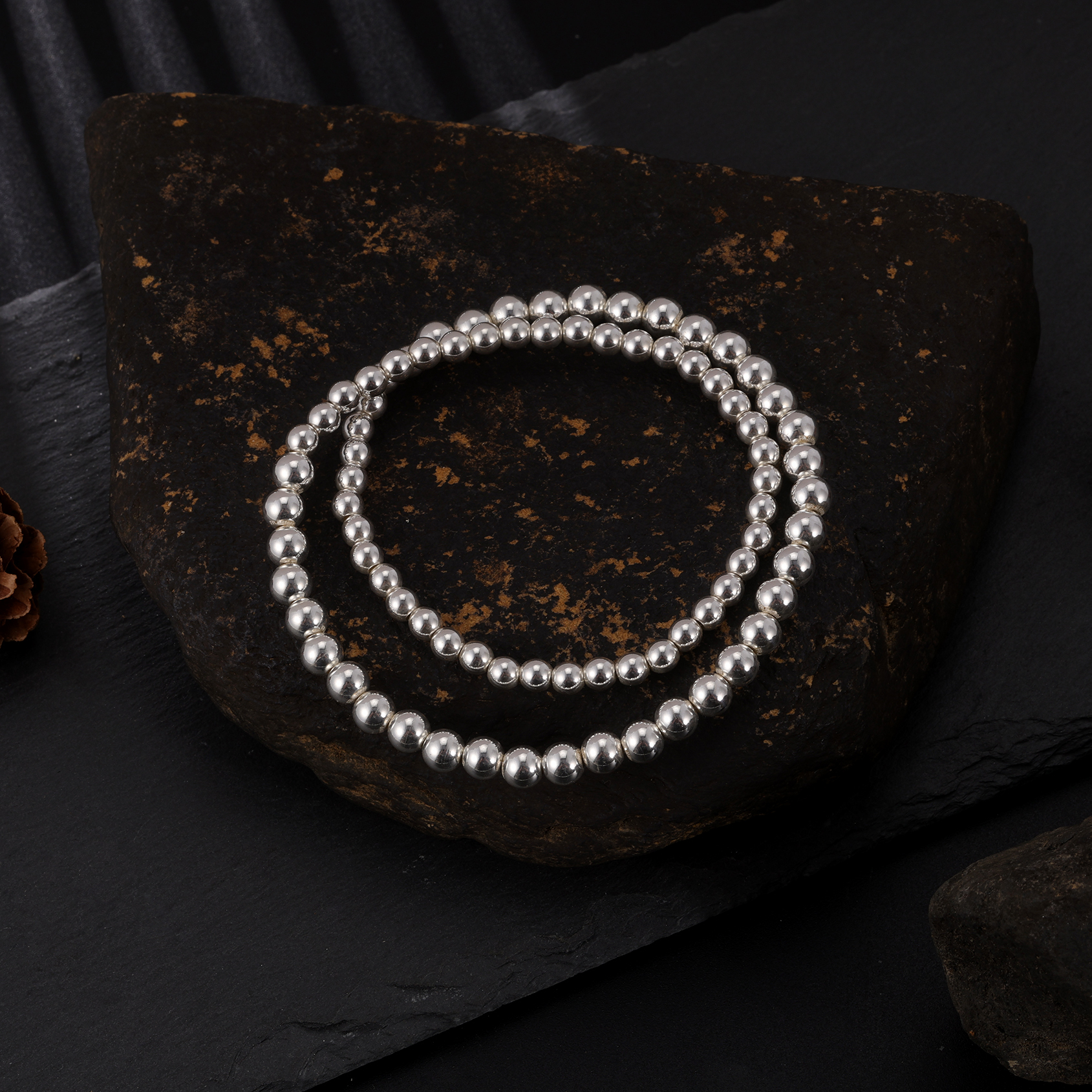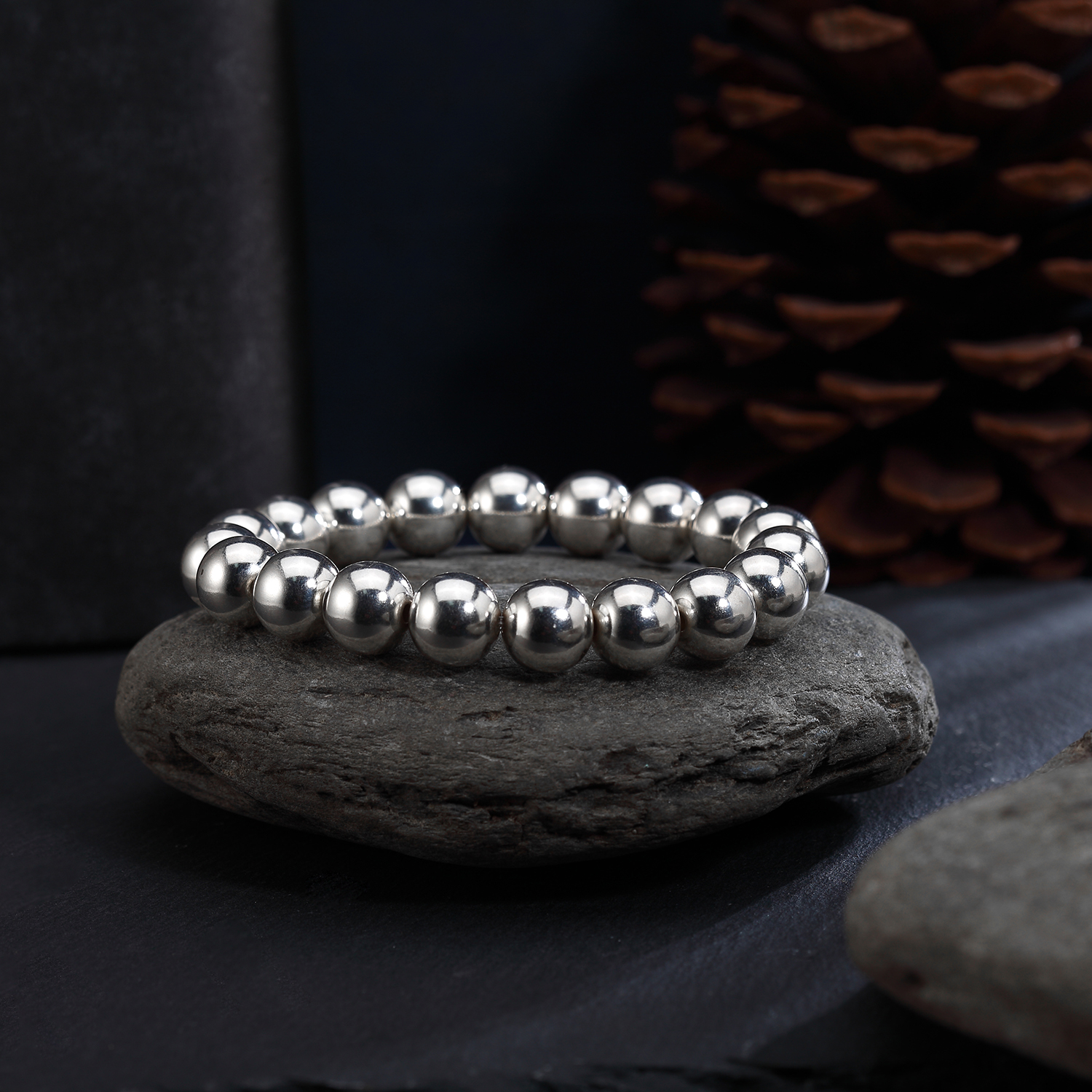 Браслет из чистого серебра 999 пробы с круглыми бусинами из цельного серебра, глянцевый стиль