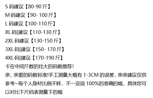 S [Рекомендация 40-45kg ]; М【Рекомендация 45-50kg】; L【Рекомендация 50-55kg】; XL [рекомендуется 55-65kg ]; 2XL [рекомендуется 65-75kg ]; 3XL [рекомендуется 75-85kg ]