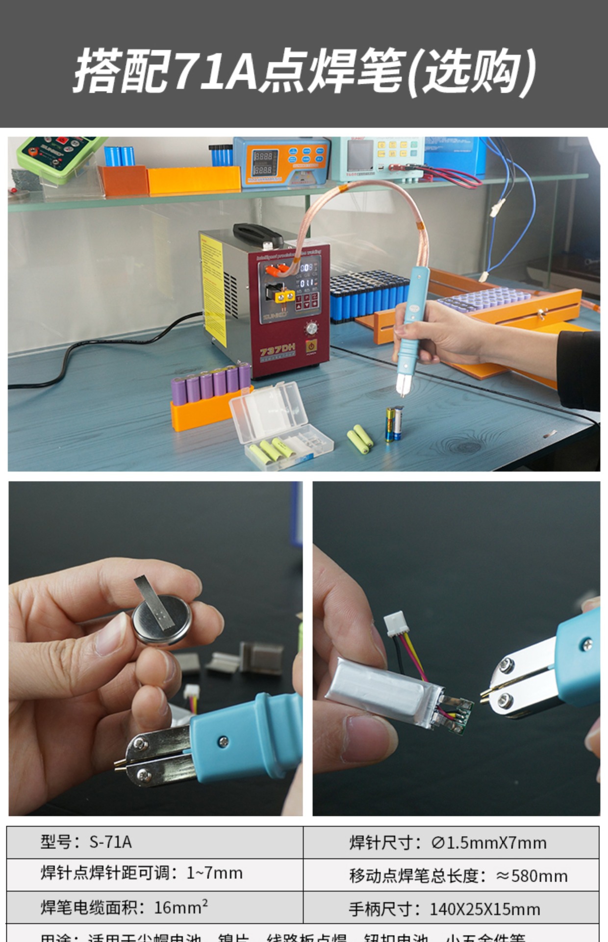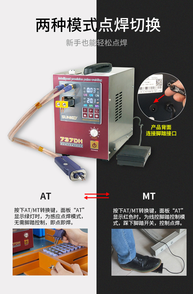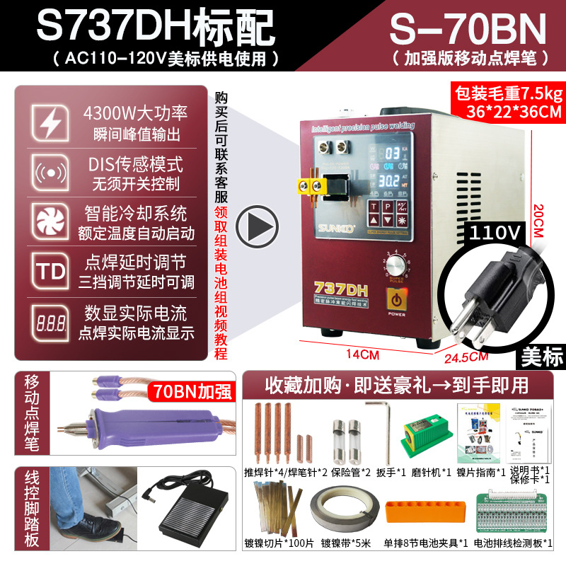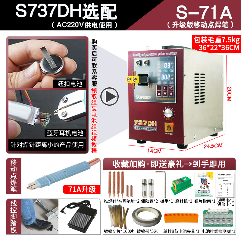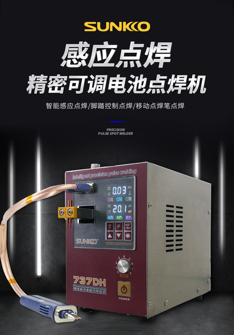 Аппарат для точечной сварки SUNKKO 737DH цилиндрический 18650 ручной малый заводской высокомощный аппарат для точечной сварки
