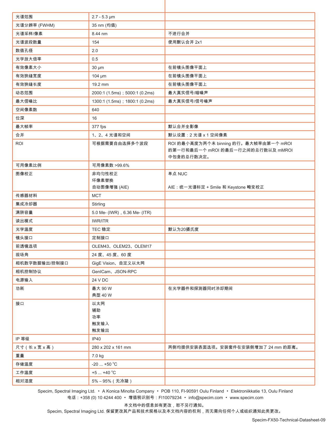 Высокоскоростная среднекрасная спектральная камера Specim FX50 для промышленной среды с высоким уровнем загрязнения 2,7-5,3 мкм