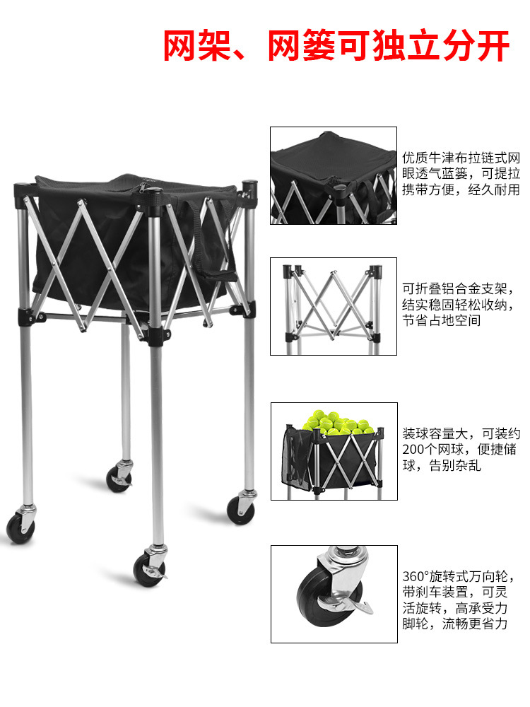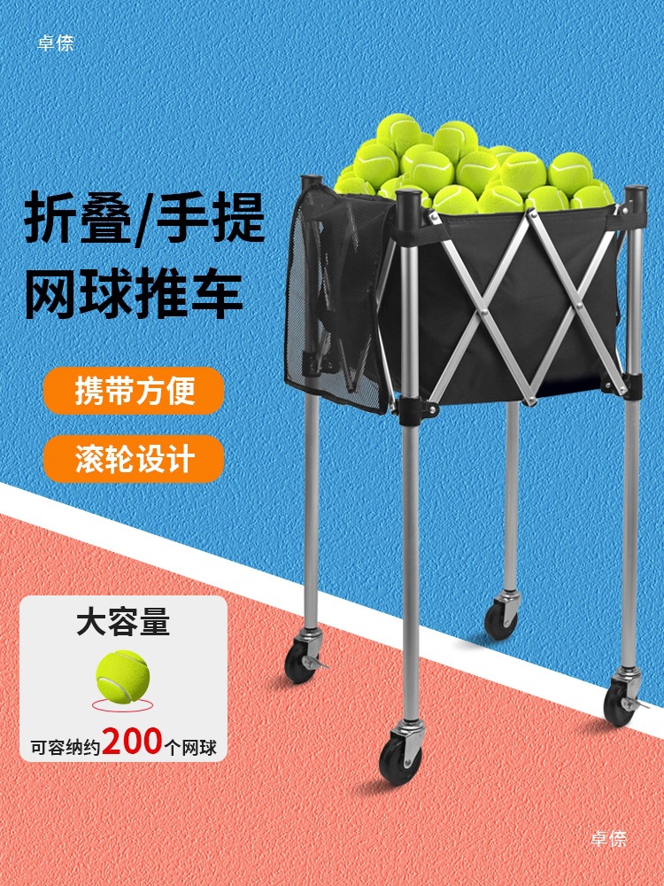 Портативная тележка для баскетбольных мячей с большой вместимостью, легкая тележка для теннисных мячей с колесами, рамка для тенниса, тележка для теннисного тренера.