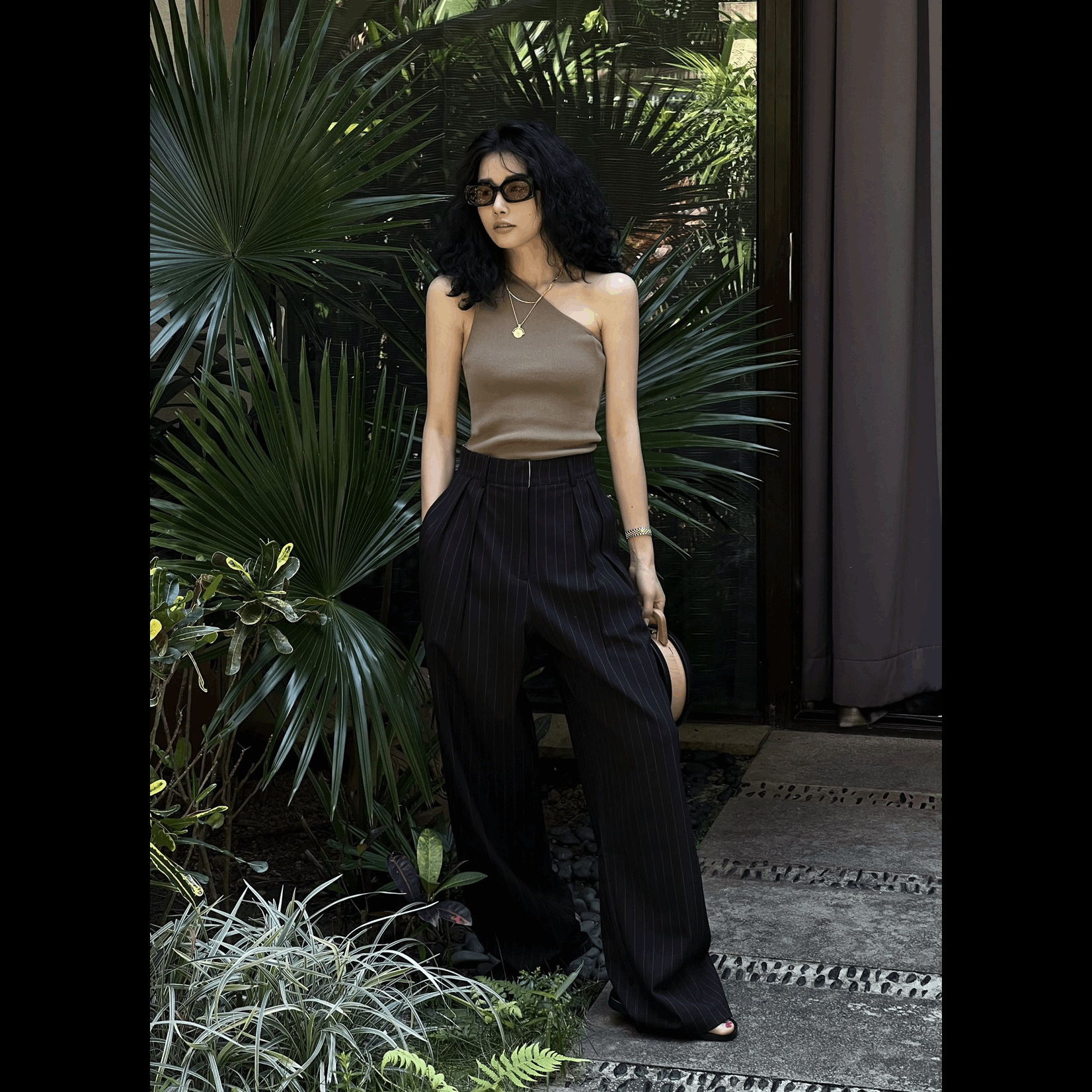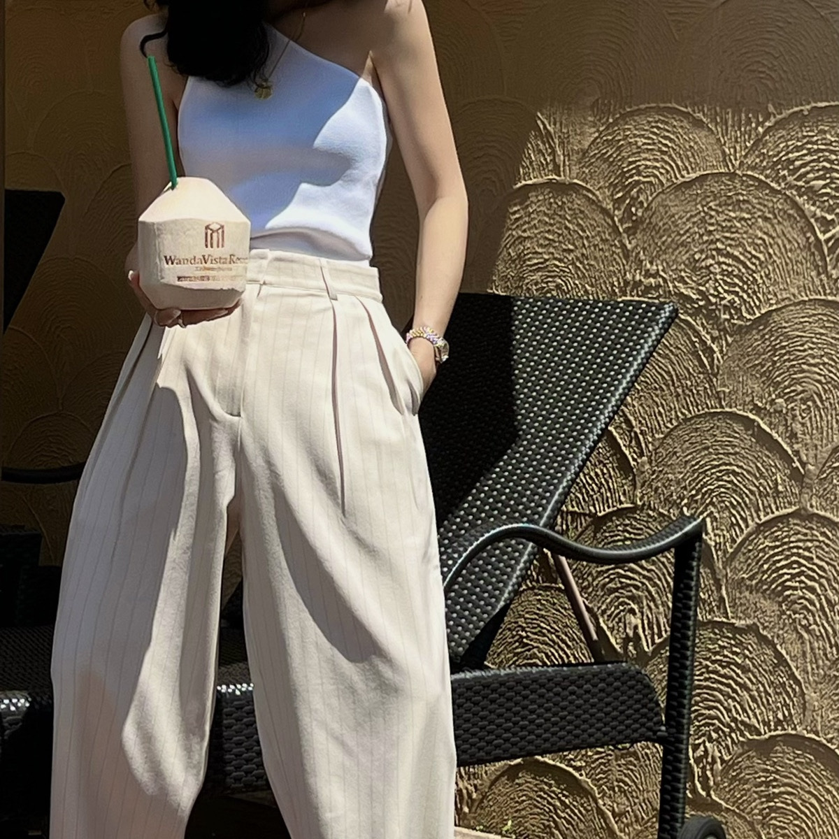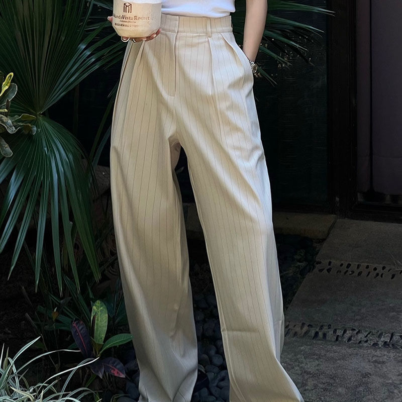 2025 Весна-Осень Новые Простые Удобные Широкие Брюки с Вертикальными Полосками Женские Минималистичные Повседневные Брюки в Пол