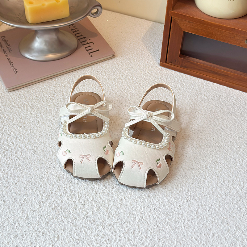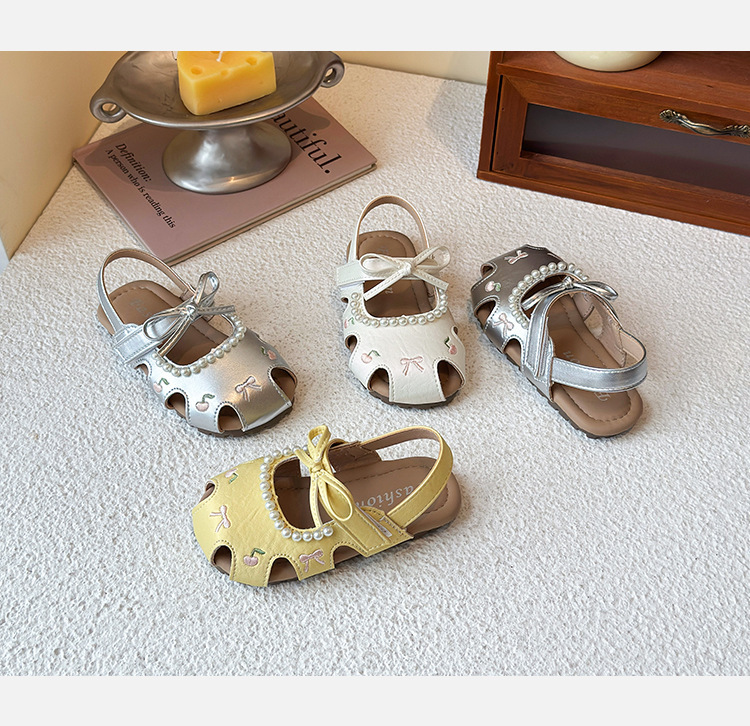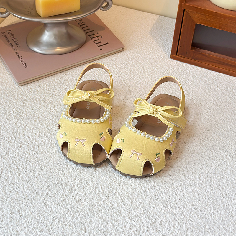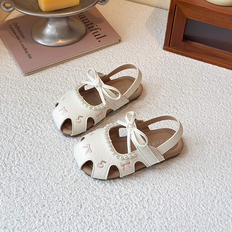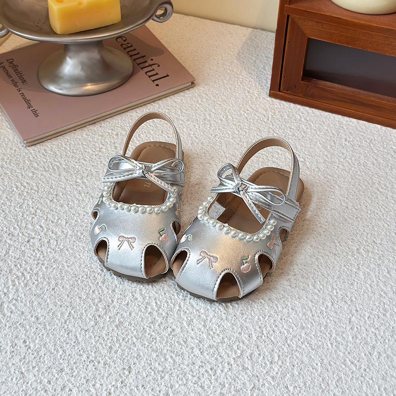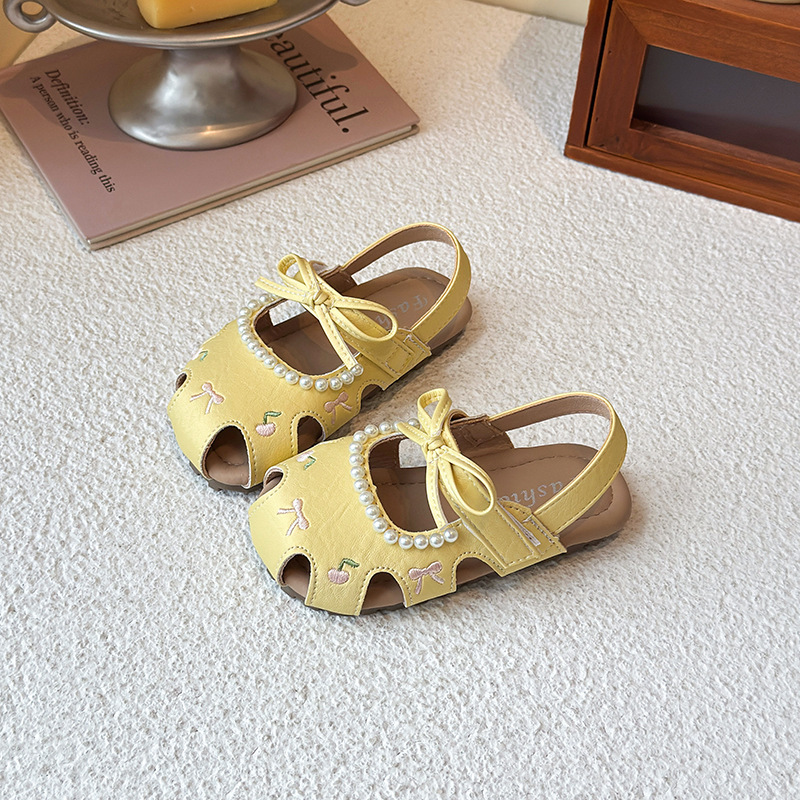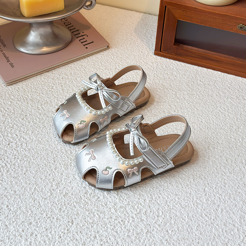Детские летние босоножки 2025 года в корейском стиле, закрытые, мягкая подошва, модные, универсальные, дышащие, с перфорацией.
