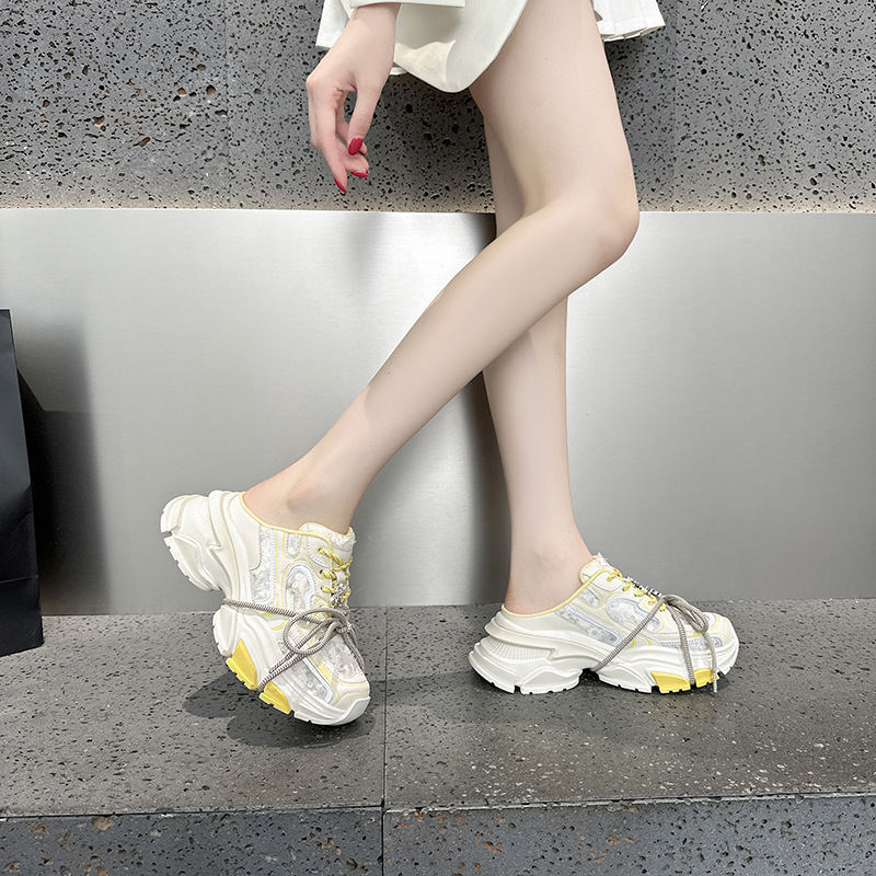 Летний тренд 2025 года в стиле Лин Юнь: электронная музыка будущего, женские повседневные полусабо на толстой подошве в стиле «папины тапочки»