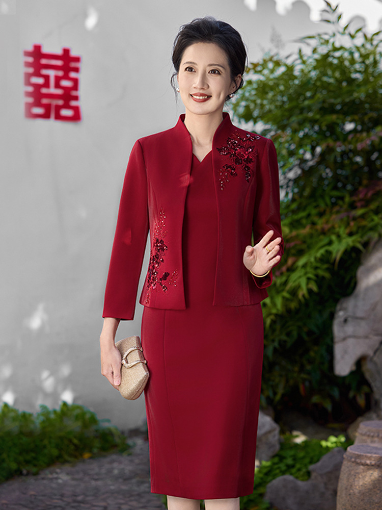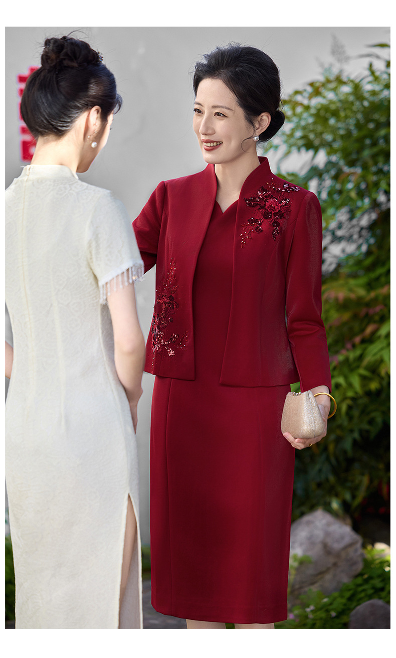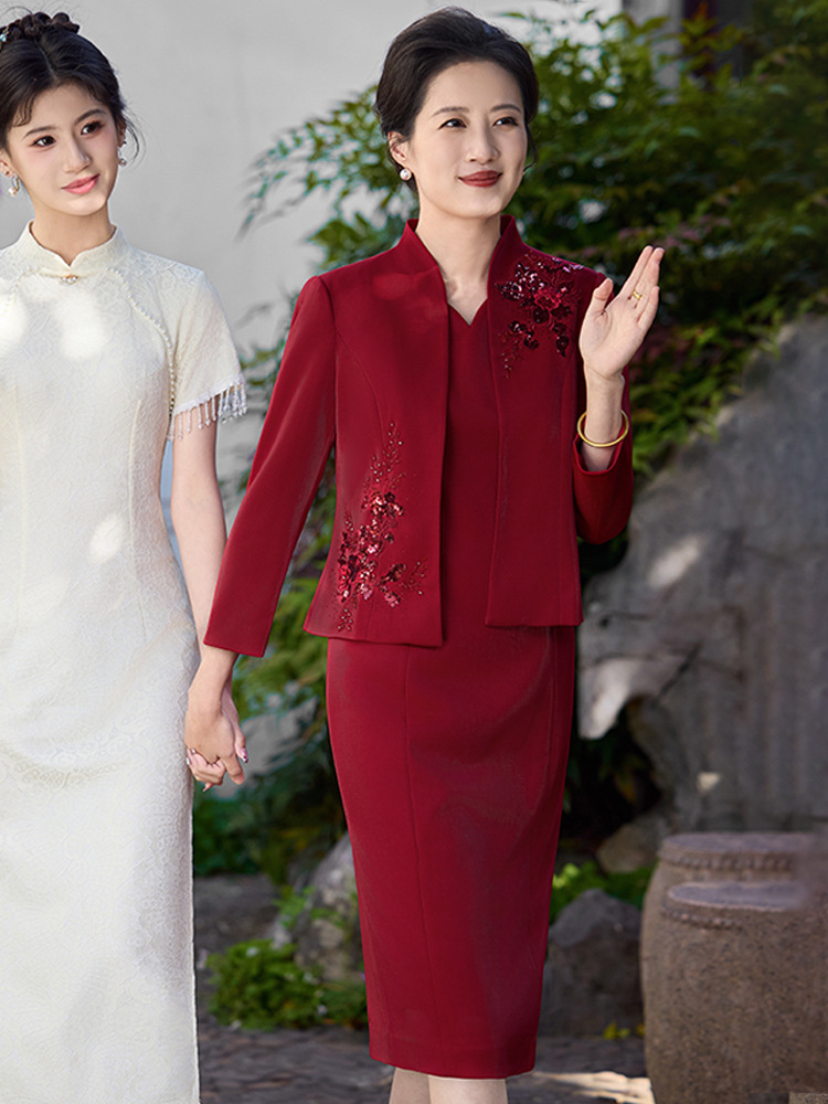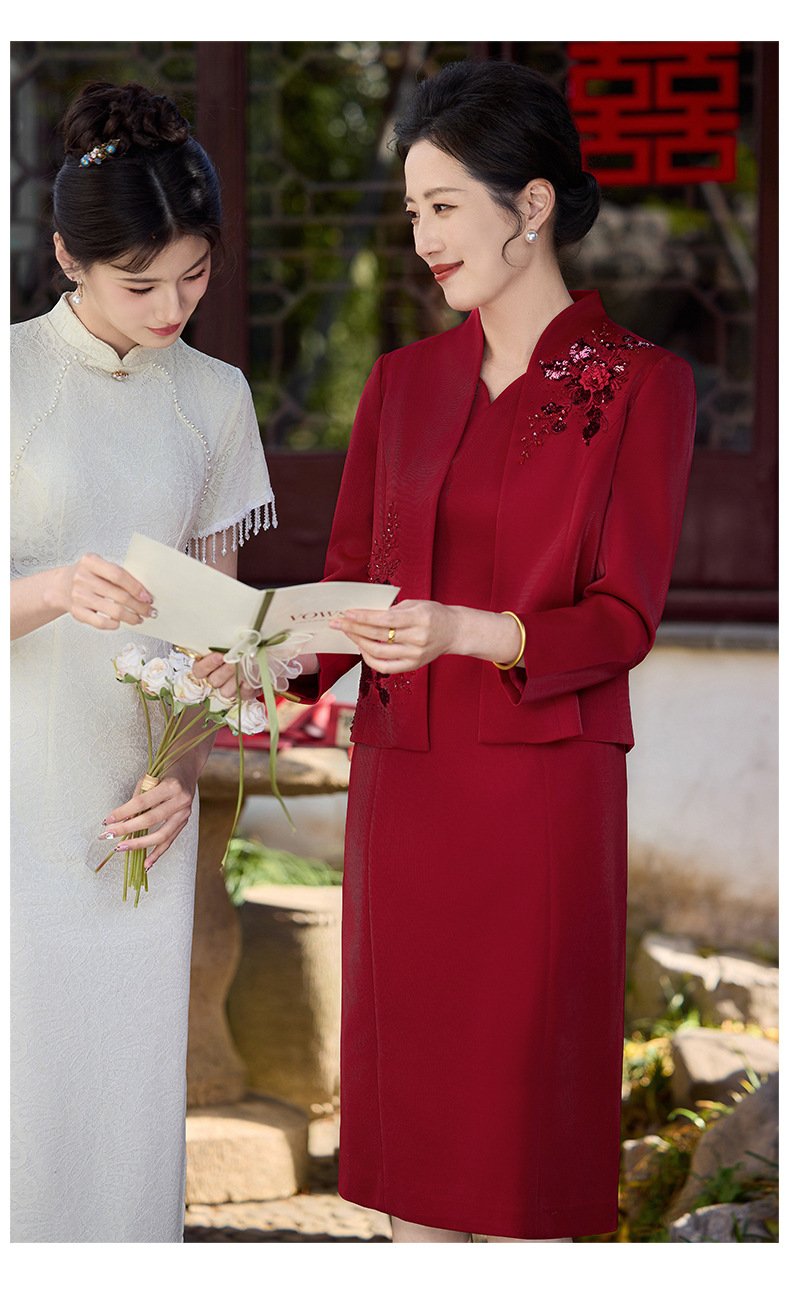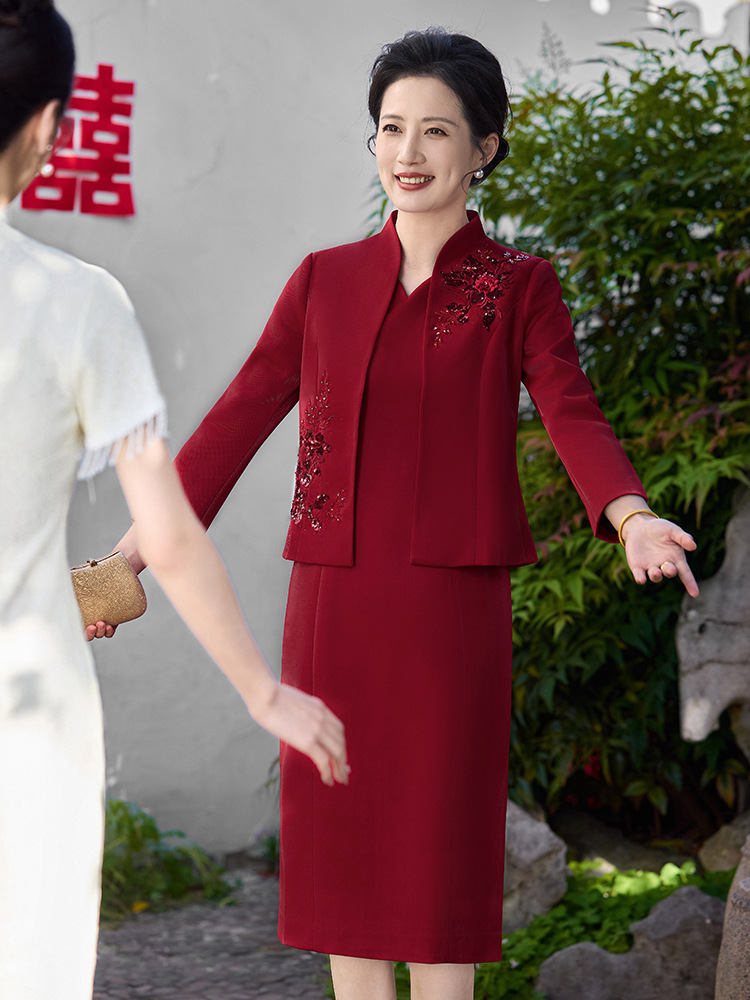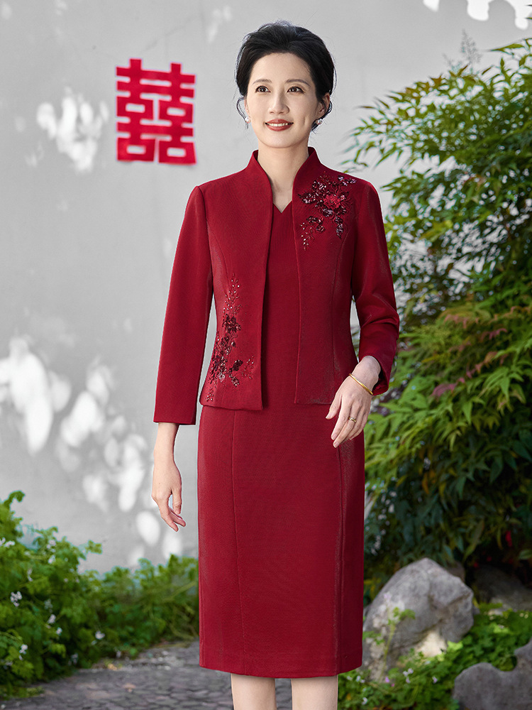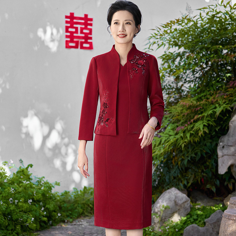 Весенне-осеннее свадебное банкетное платье для мамы, красное свадебное банкетное платье для счастливой свекрови, большой размер, элитный костюм, оптовая продажа