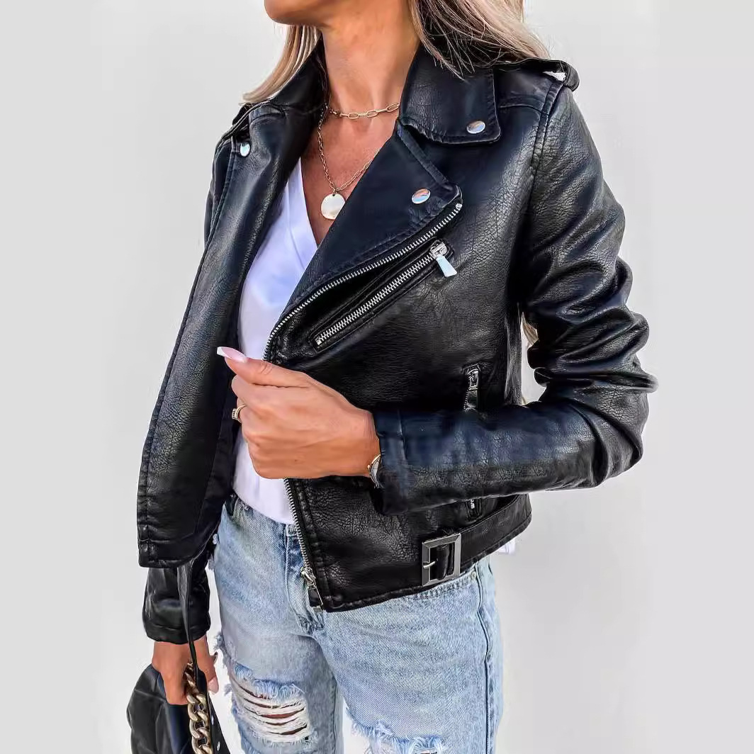 Трансграничная европейская и американская женская новая осенне-зимняя куртка 2024 года, топы, куртка из искусственной кожи, мотоциклетная короткая молния