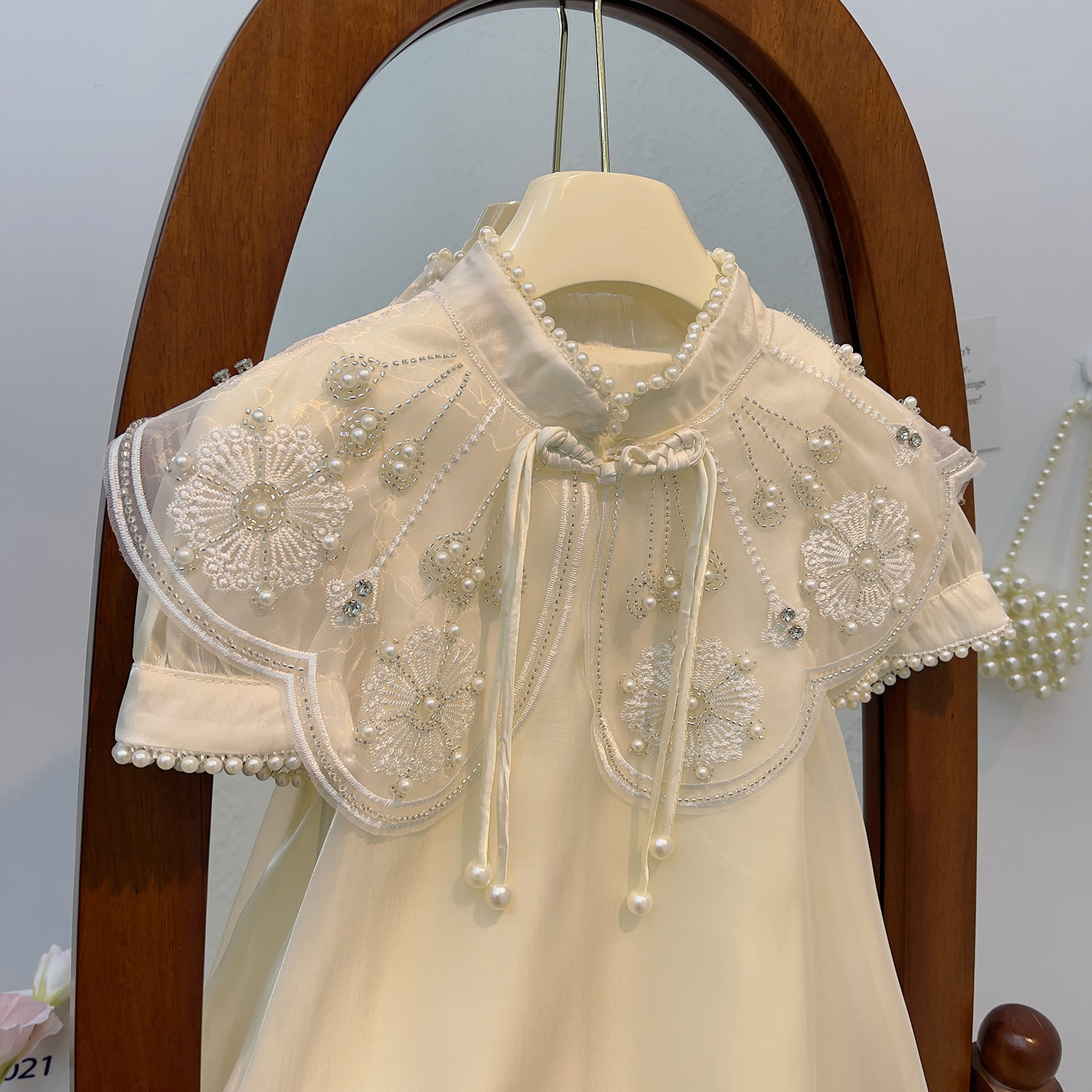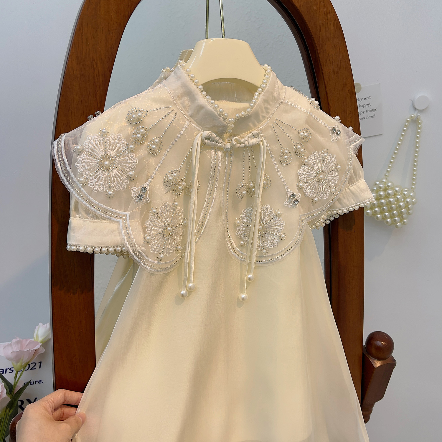 Платье для девочек, летнее детское платье принцессы Cheongsam, новинка 2023 года, стильная юбка с облачными плечами для маленькой девочки 22039