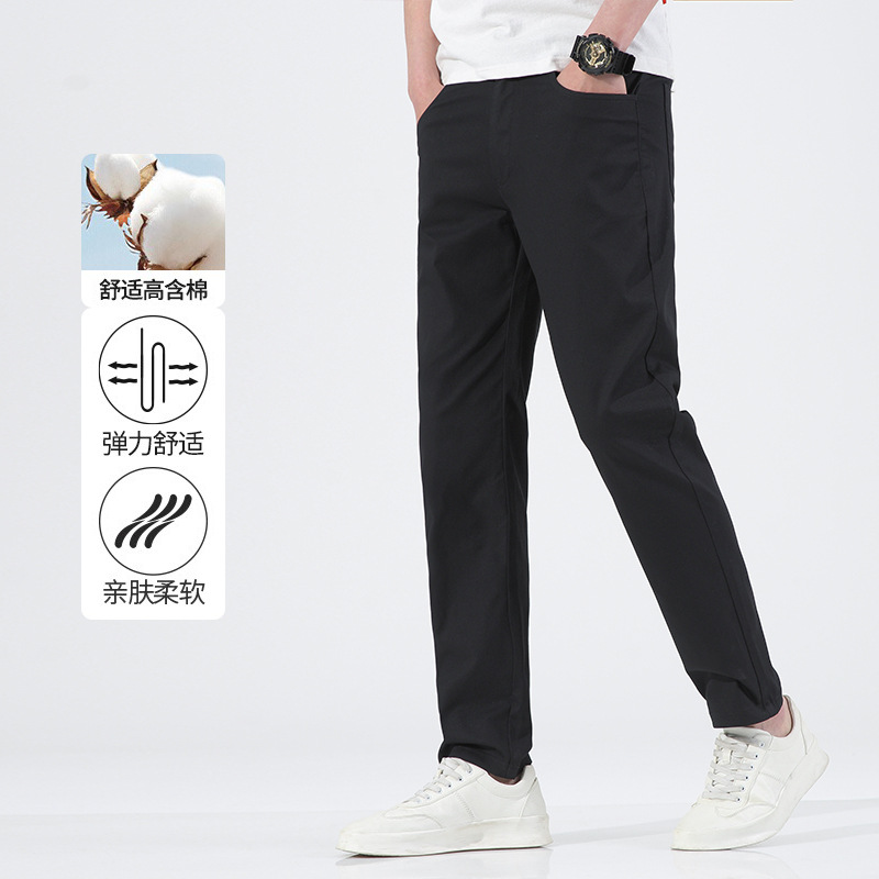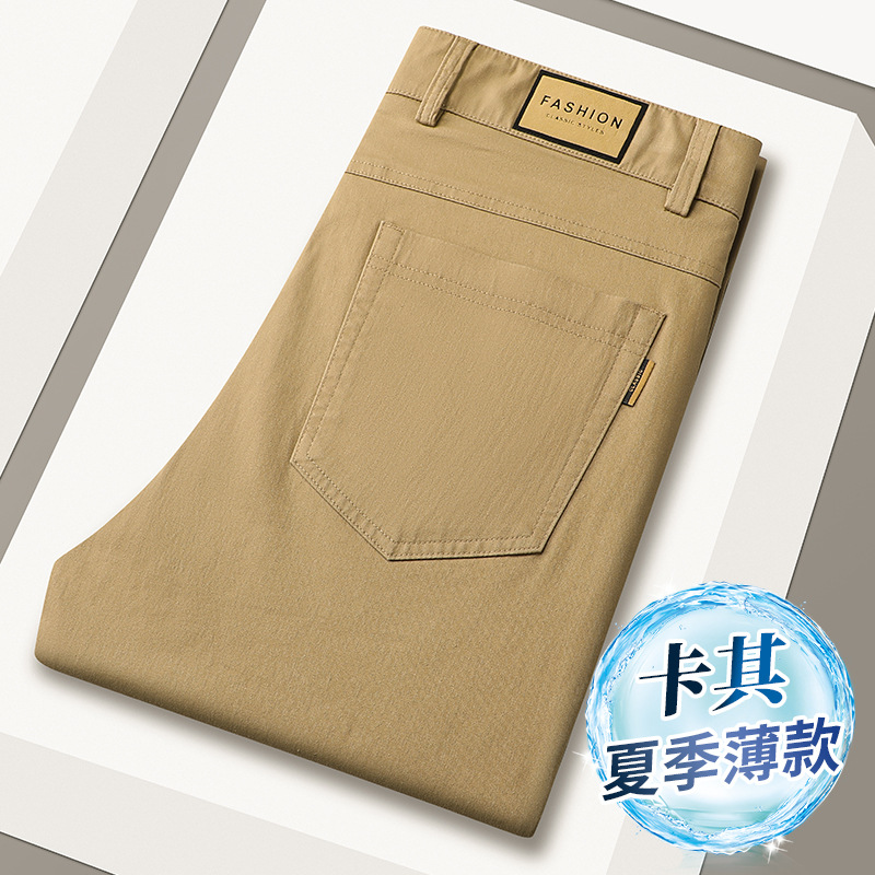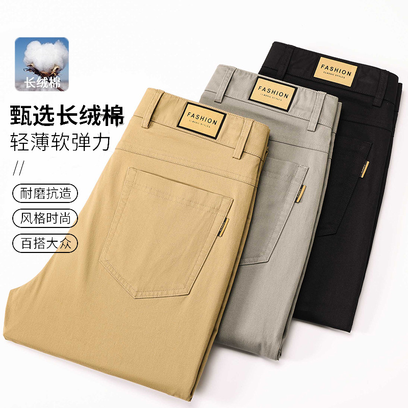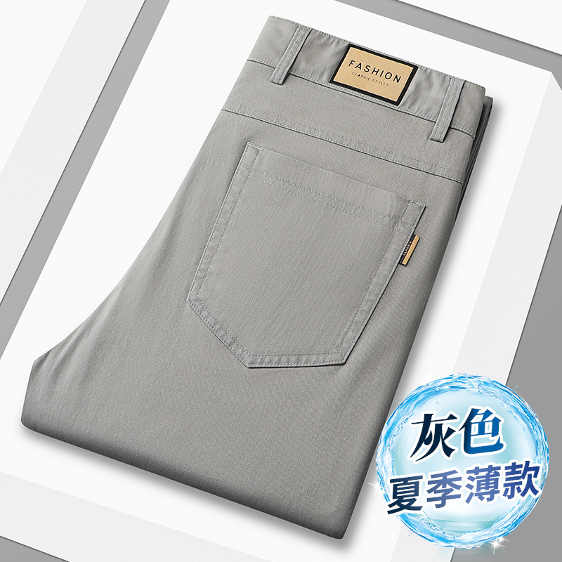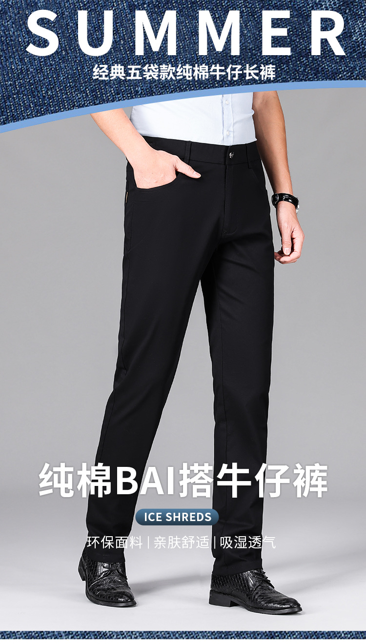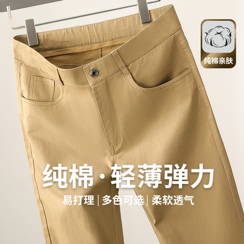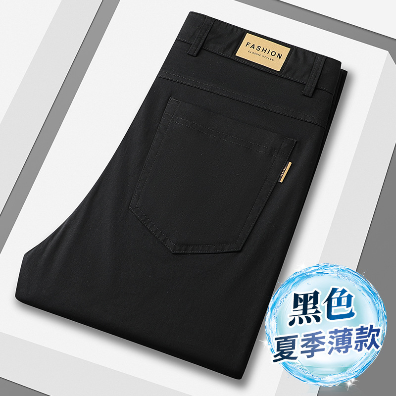 2023 хлопковые мужские повседневные брюки, летние тонкие прямые эластичные джинсы среднего возраста, однотонные дышащие брюки