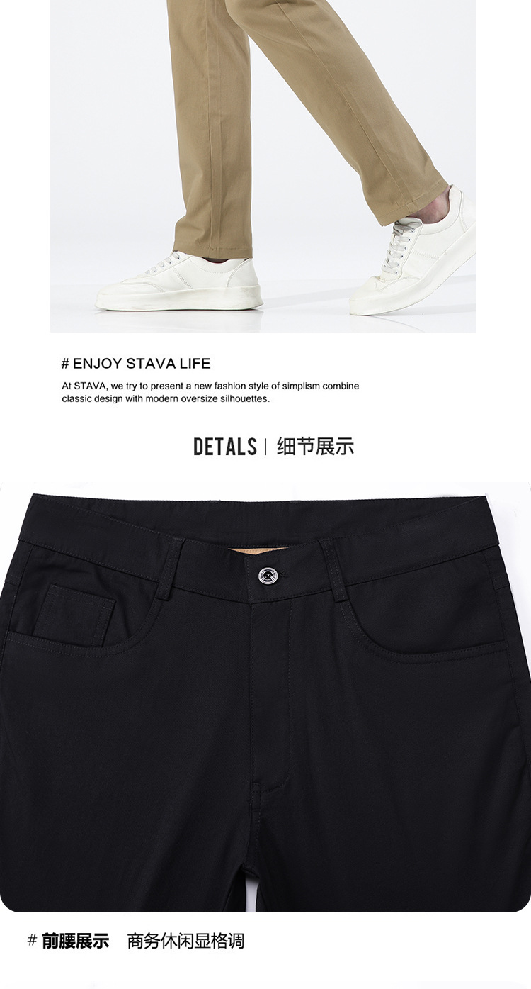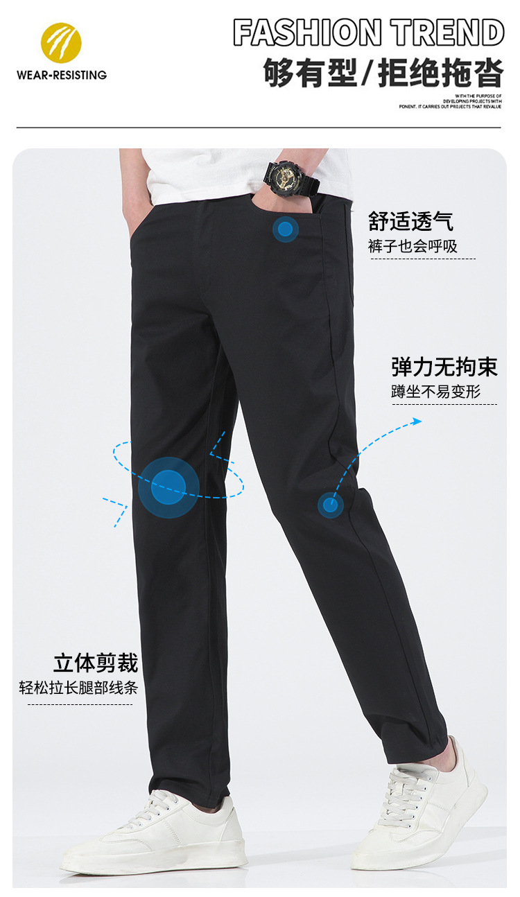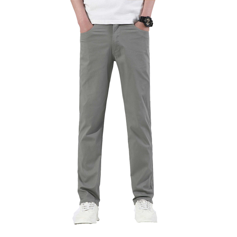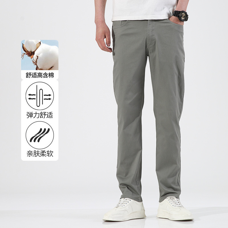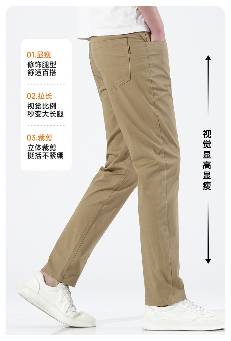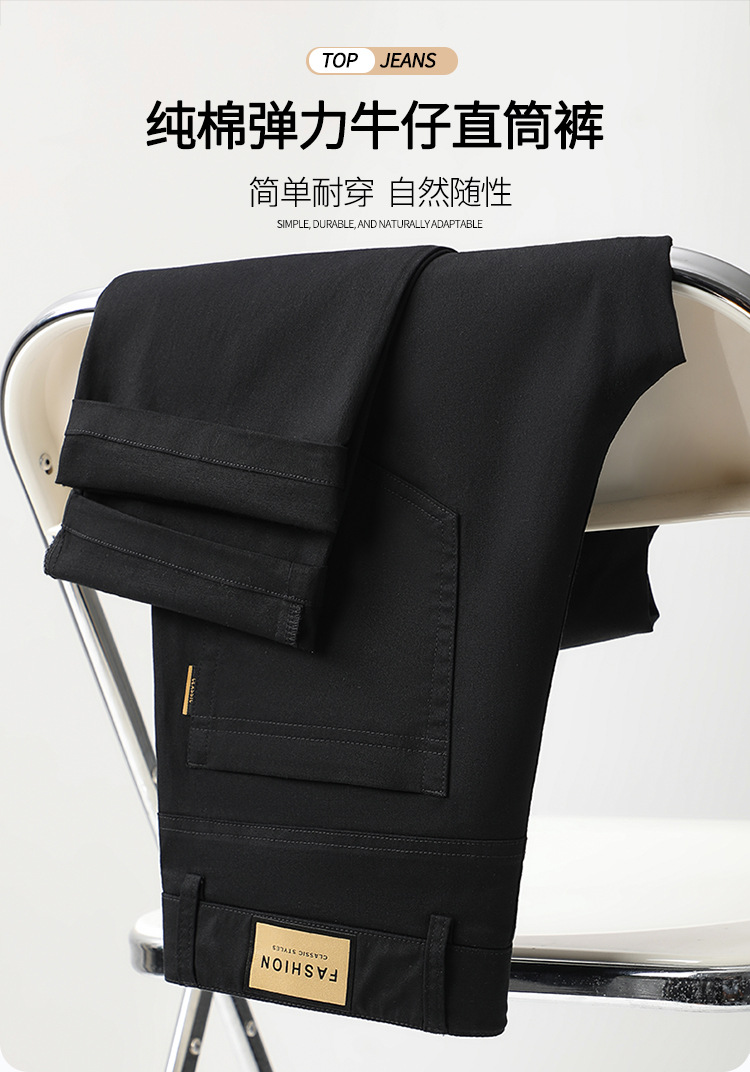 2023 хлопковые мужские повседневные брюки, летние тонкие прямые эластичные джинсы среднего возраста, однотонные дышащие брюки