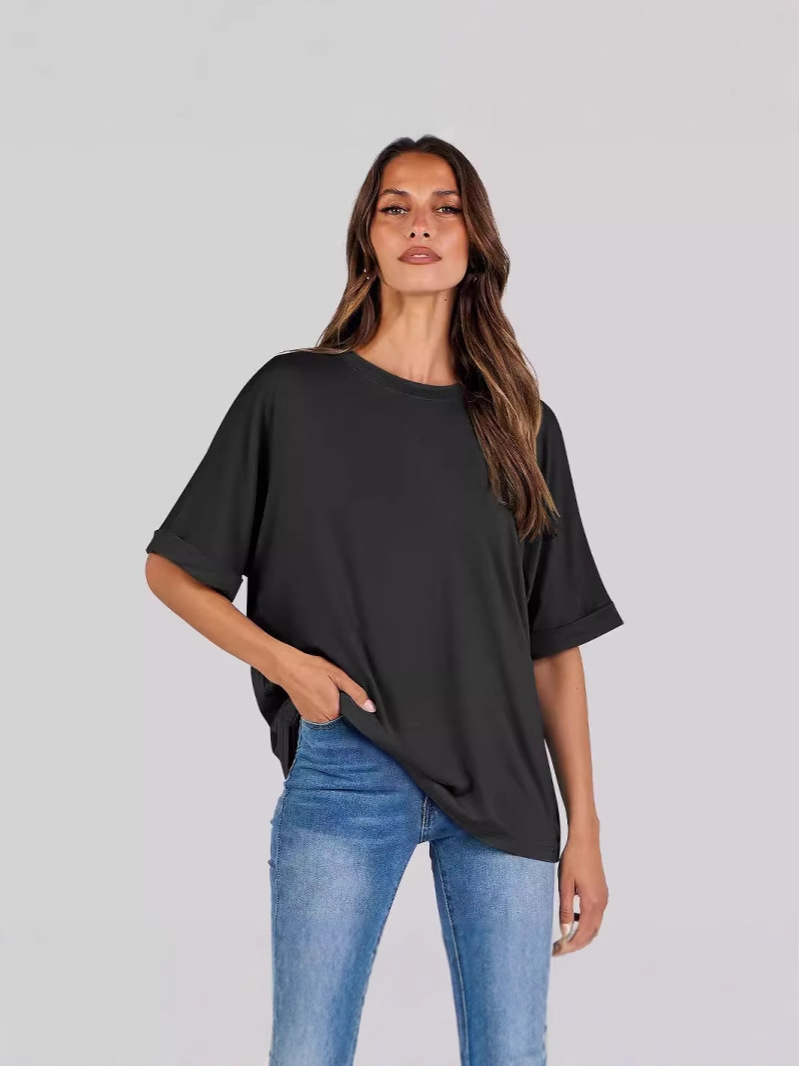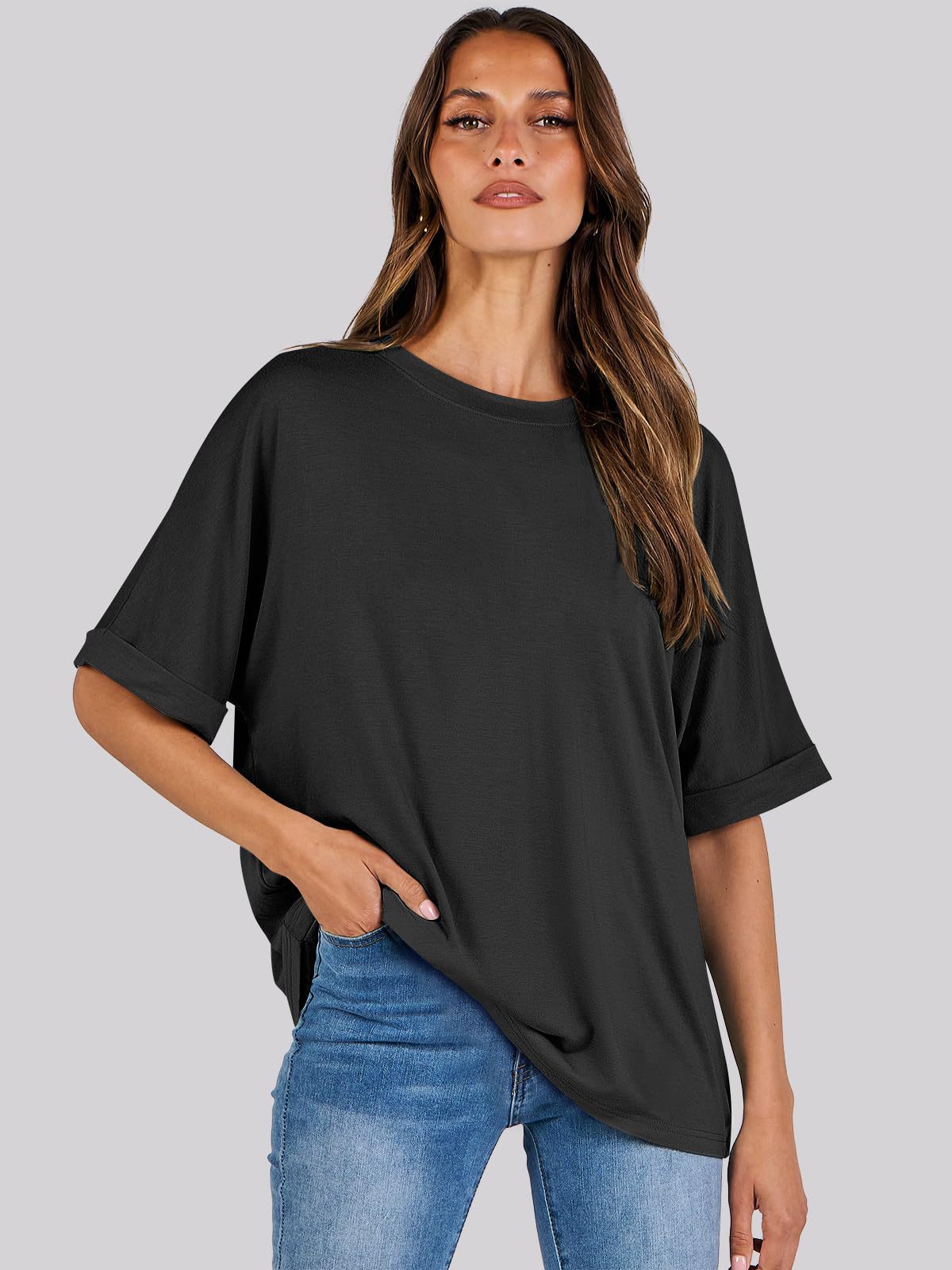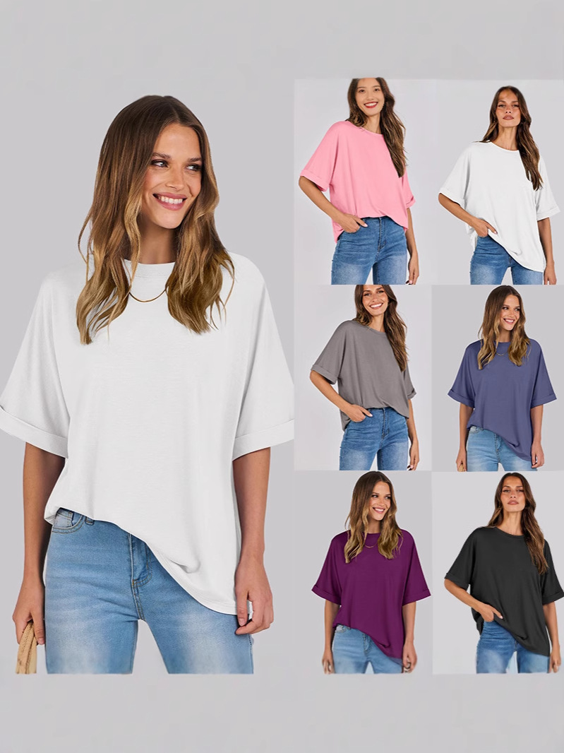 2024 Amazon, летние новые европейские и американские трансграничные женские топы, однотонные свободные женские топы с короткими рукавами для поездок на работу