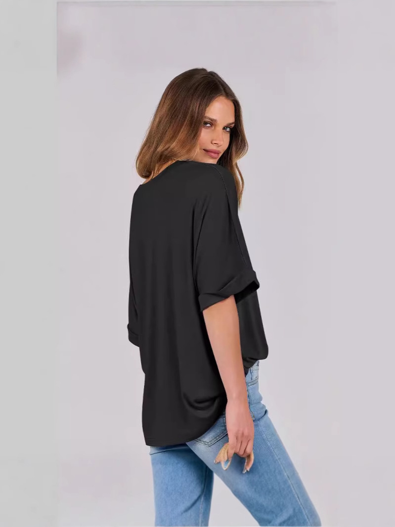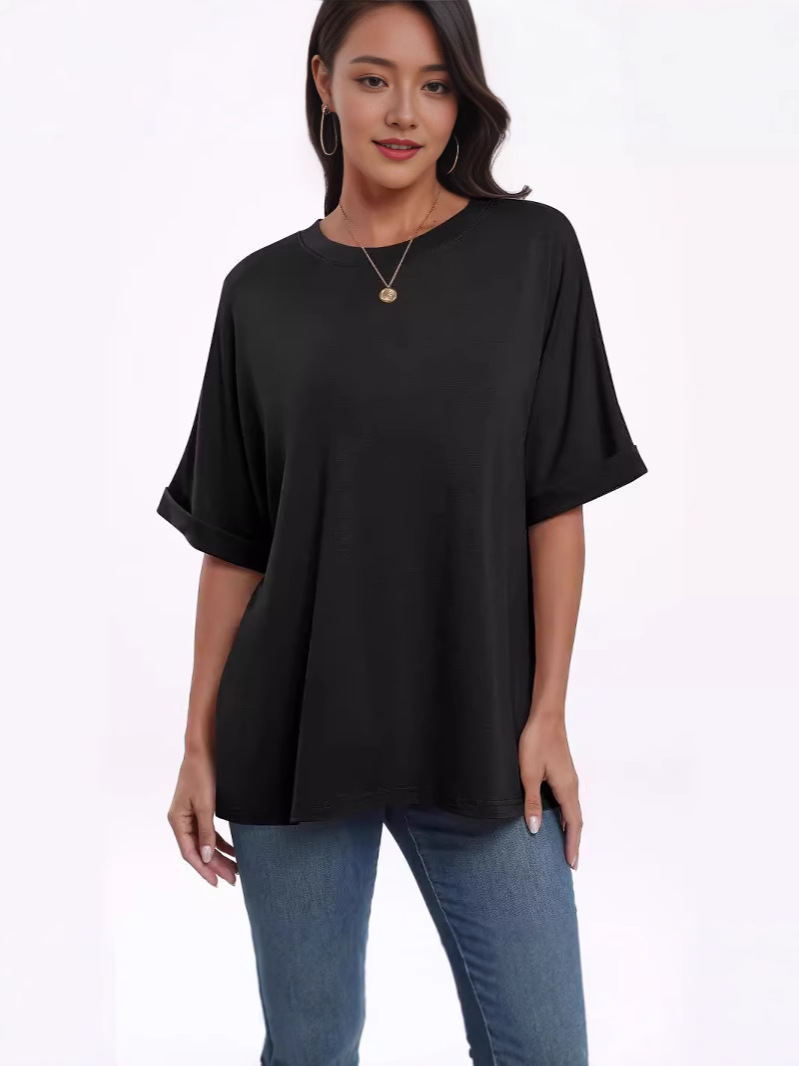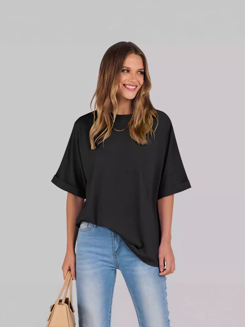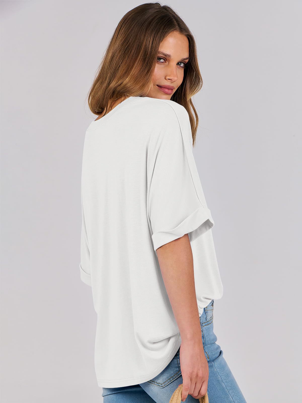 2024 Amazon, летние новые европейские и американские трансграничные женские топы, однотонные свободные женские топы с короткими рукавами для поездок на работу