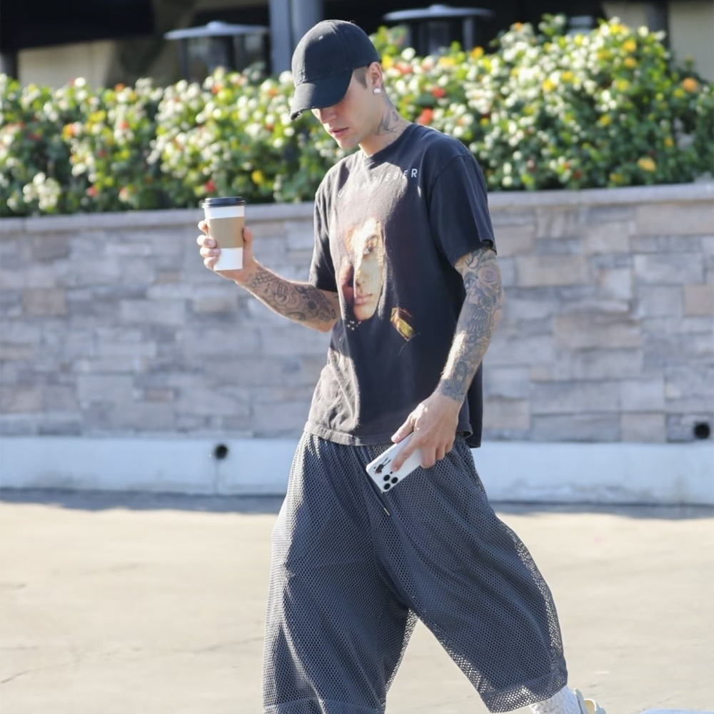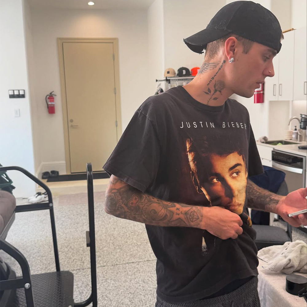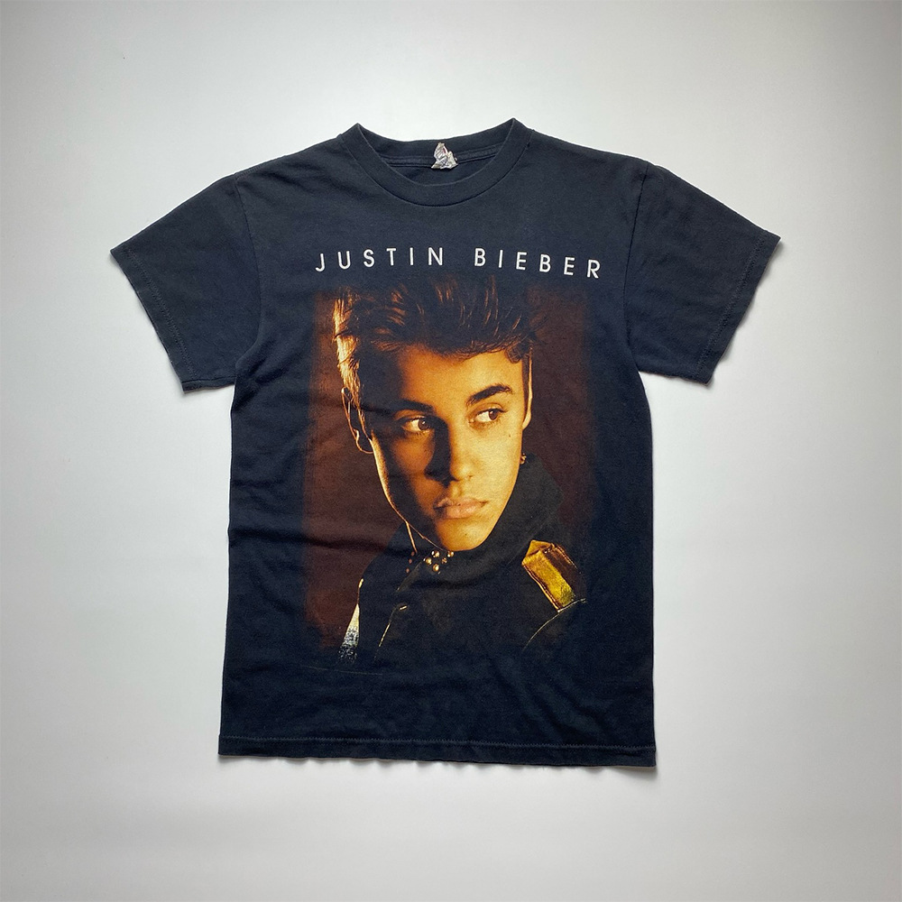Футболка с коротким рукавом с принтом в стиле английского аватара, потертая и состаренная, в стиле концертной одежды Джастина Бибера и Хейли Бибера.