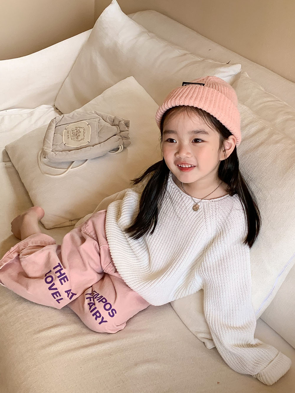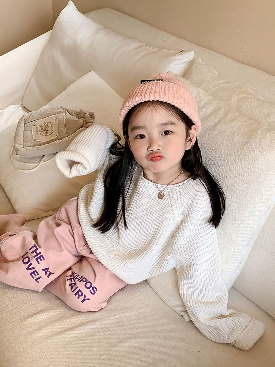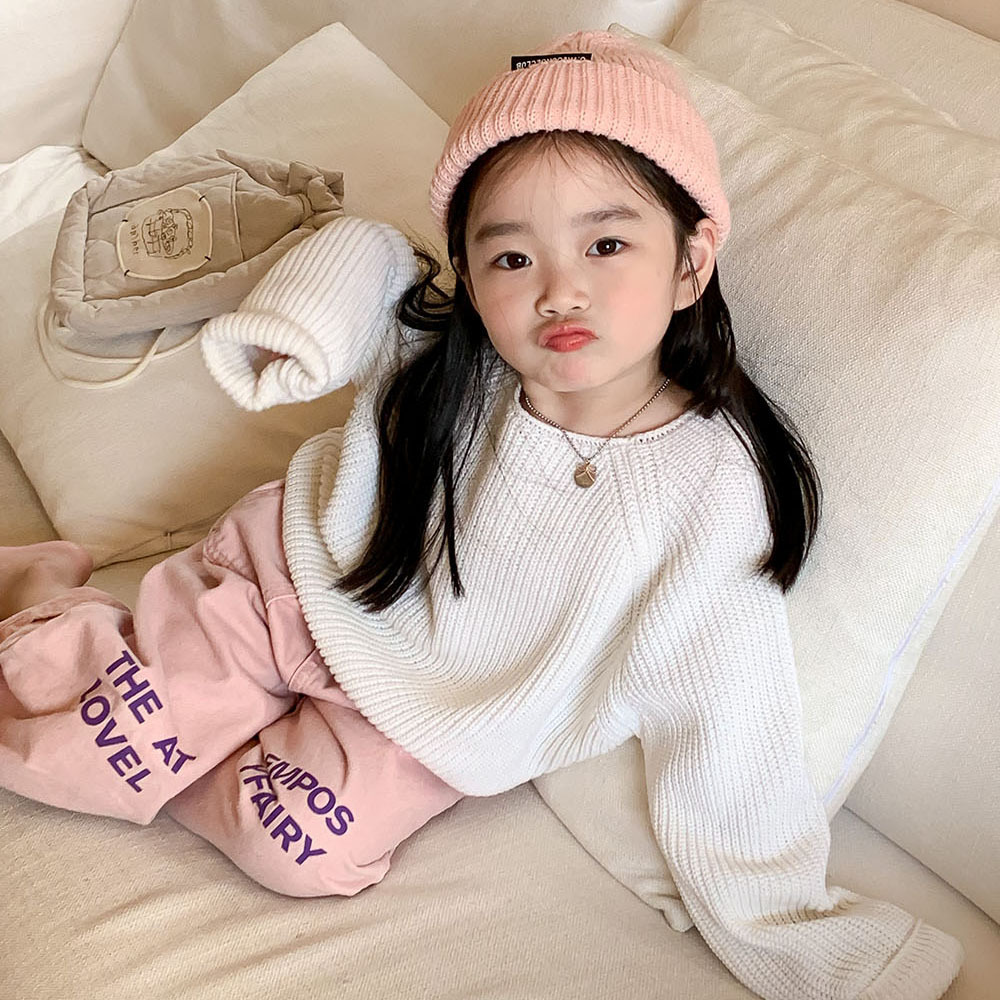 Новинка 2023 года, осенняя одежда, корейская детская одежда, белый свитер для девочек, модный пуловер для маленьких девочек, свитер с длинными рукавами 3256