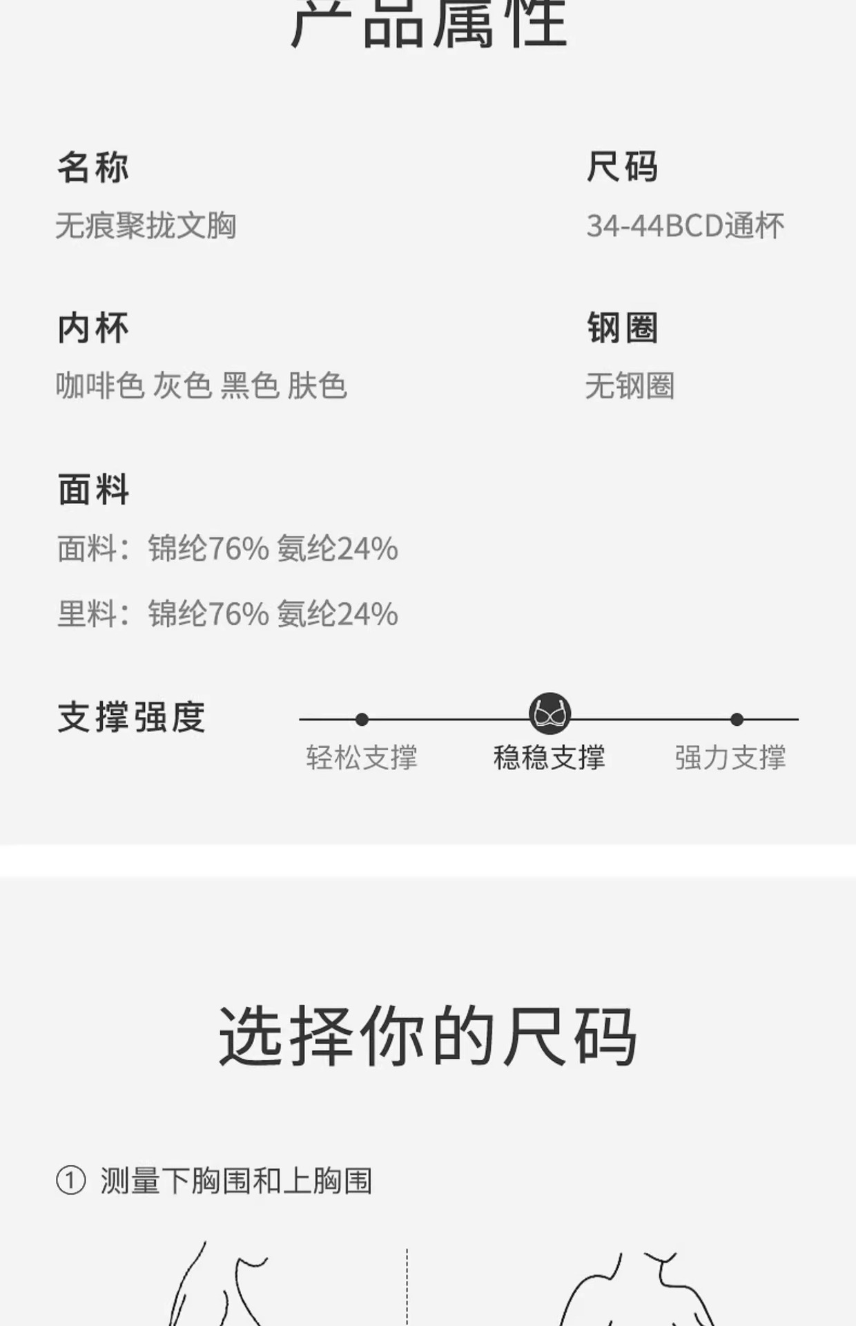 собрать; Бесследный; подталкивать вверх; Красивая спина; Регулируемый тип; удобный; Боковой сбор; Закройте вторичные груди; Большая грудь кажется маленькой